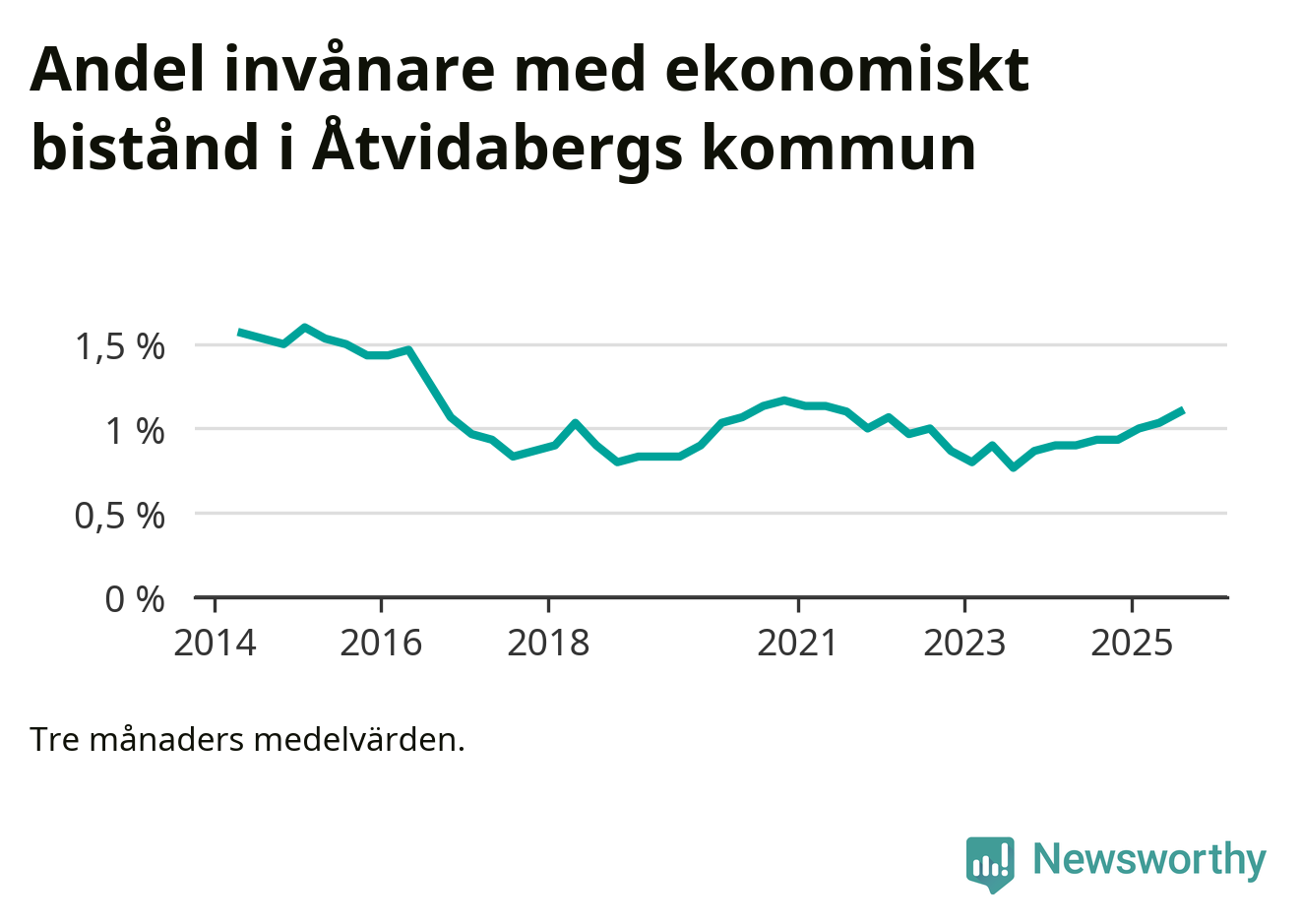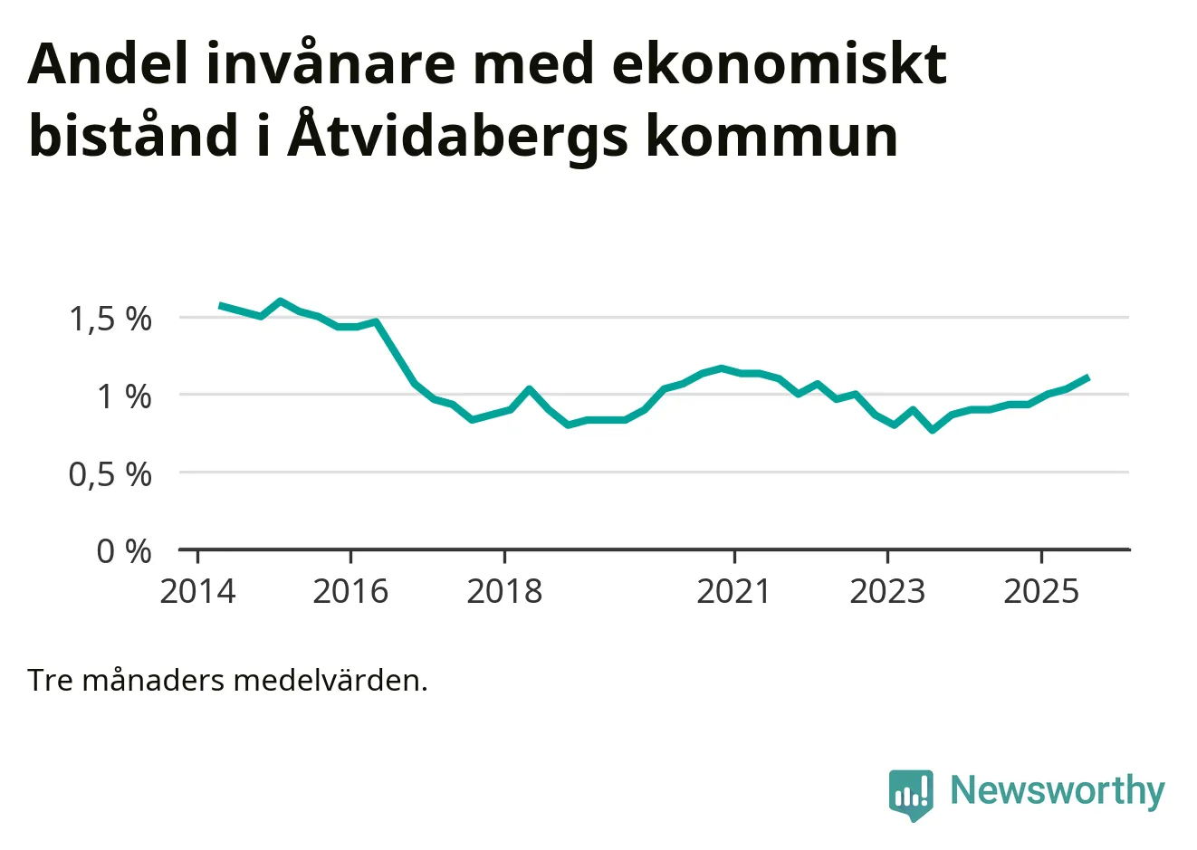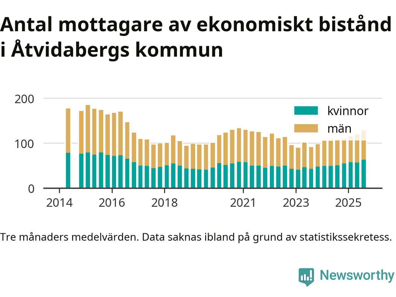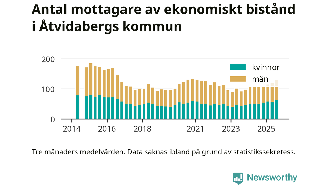 I genomsnitt 128 personer per månad fick ekonomiskt bistånd i Åtvidabergs kommun