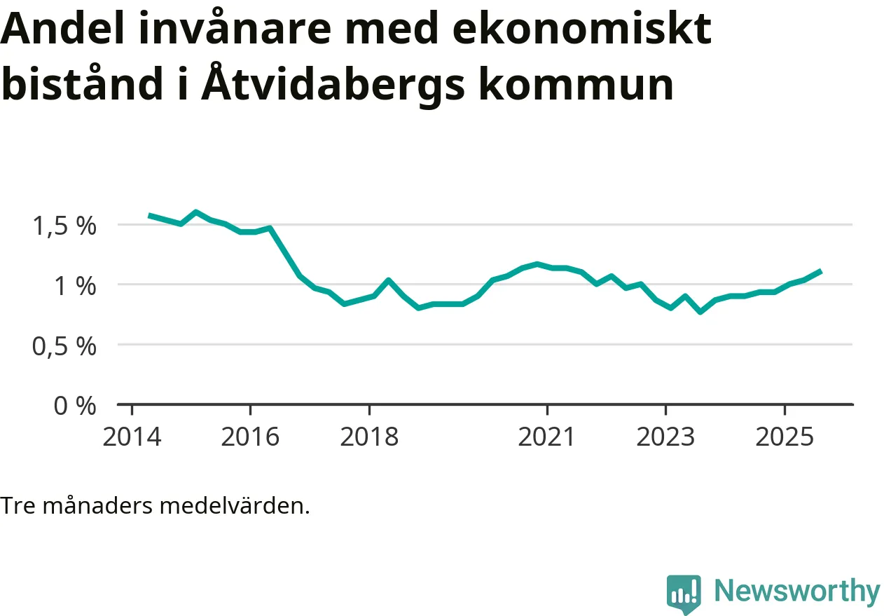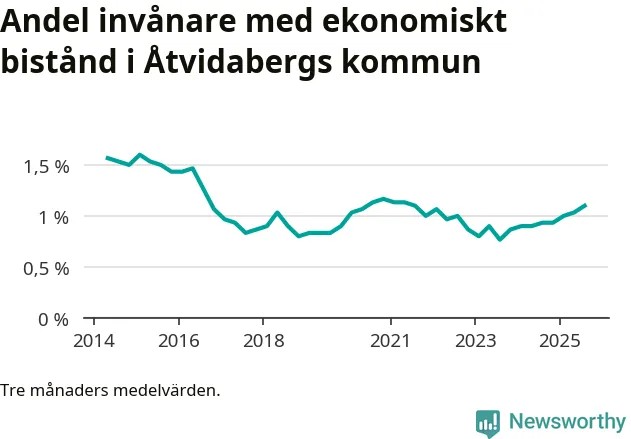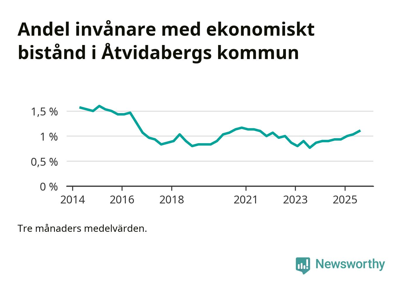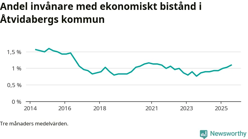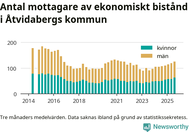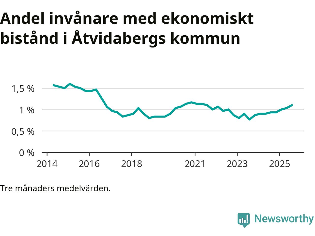I genomsnitt 128 personer per månad fick ekonomiskt bistånd i Åtvidabergs kommun