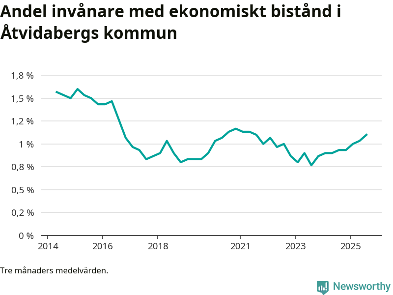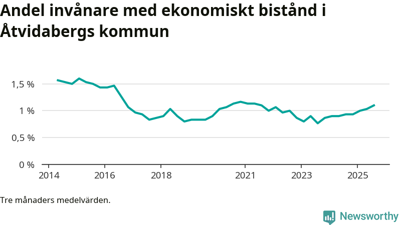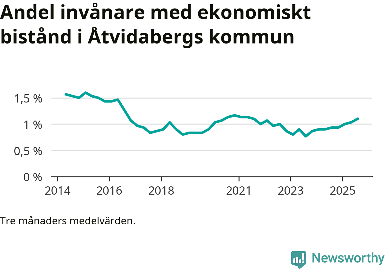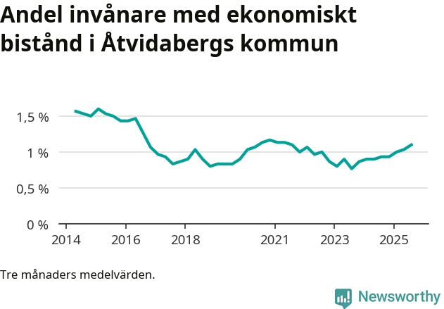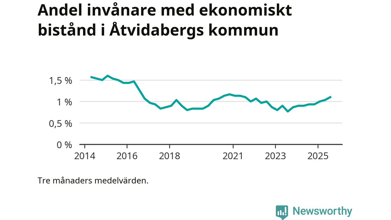 Andelen invånare med ekonomiskt bistånd i Åtvidabergs kommun