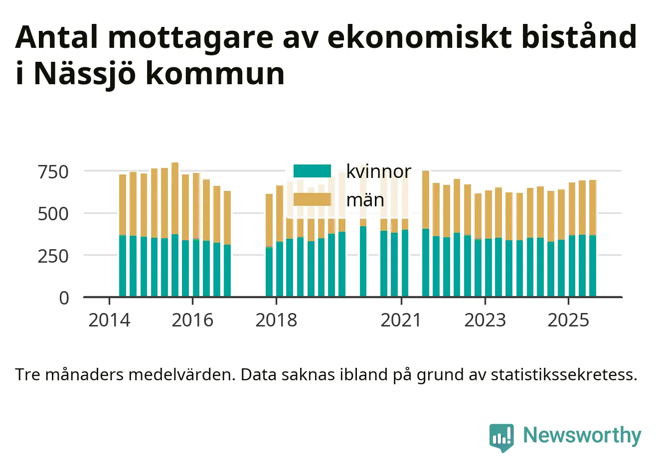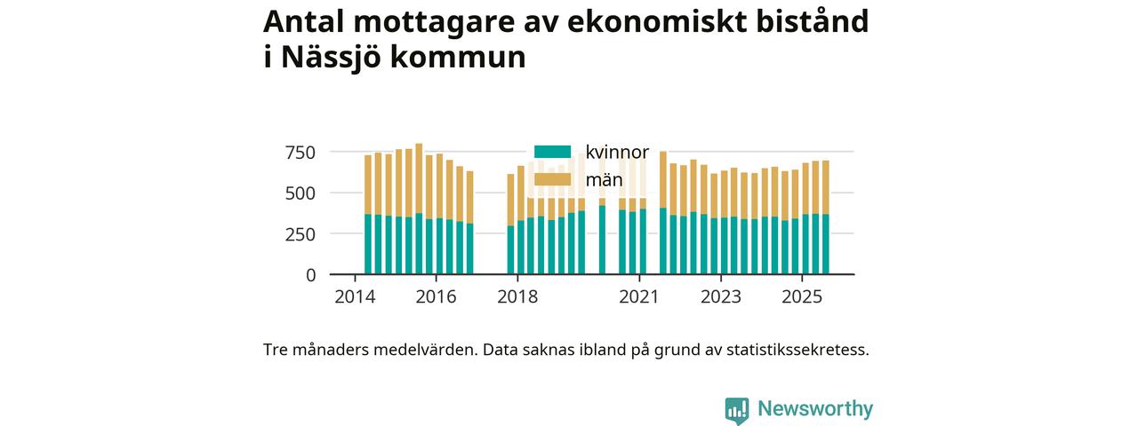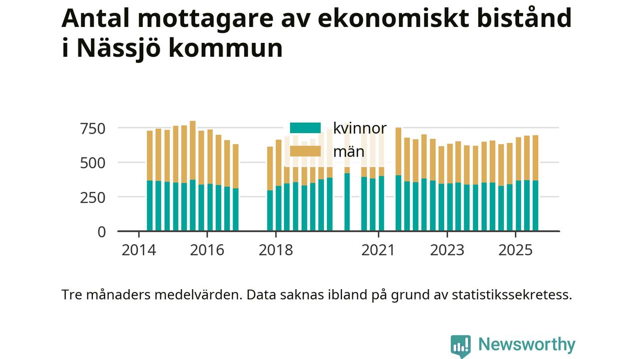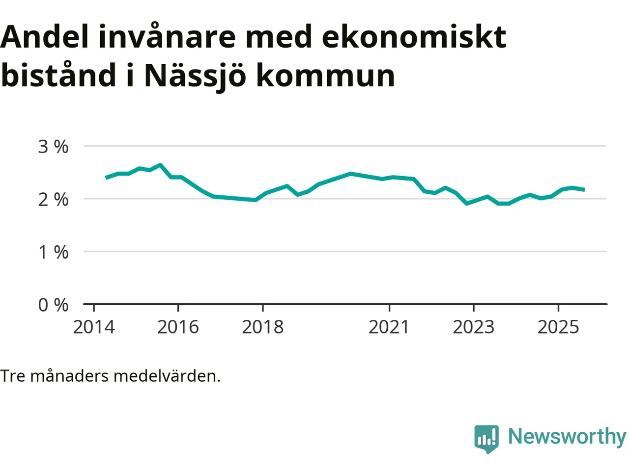 Andelen invånare med ekonomiskt bistånd i Nässjö kommun var högre under sommaren jämfört med motsvarande period året innan. Det visar den senaste, preliminära statistiken från Socialstyrelsen.