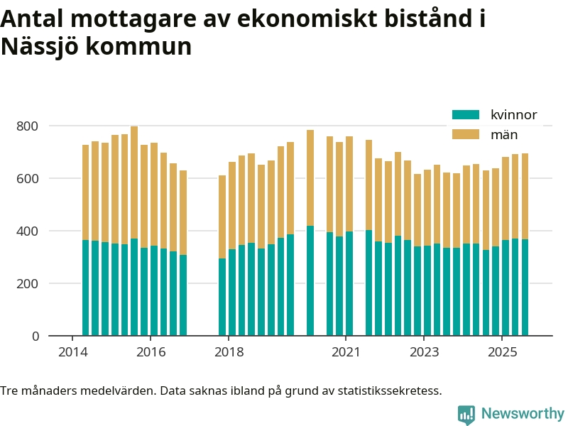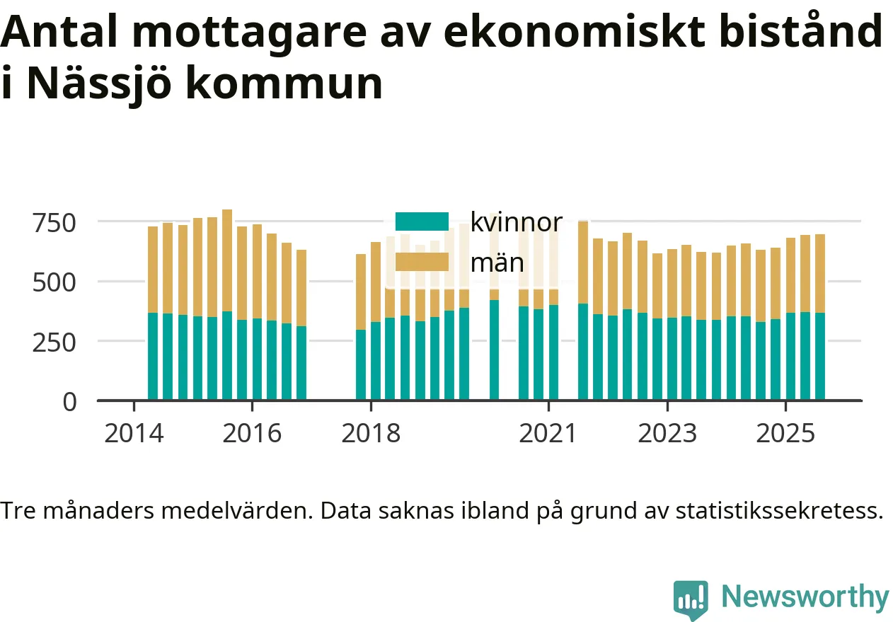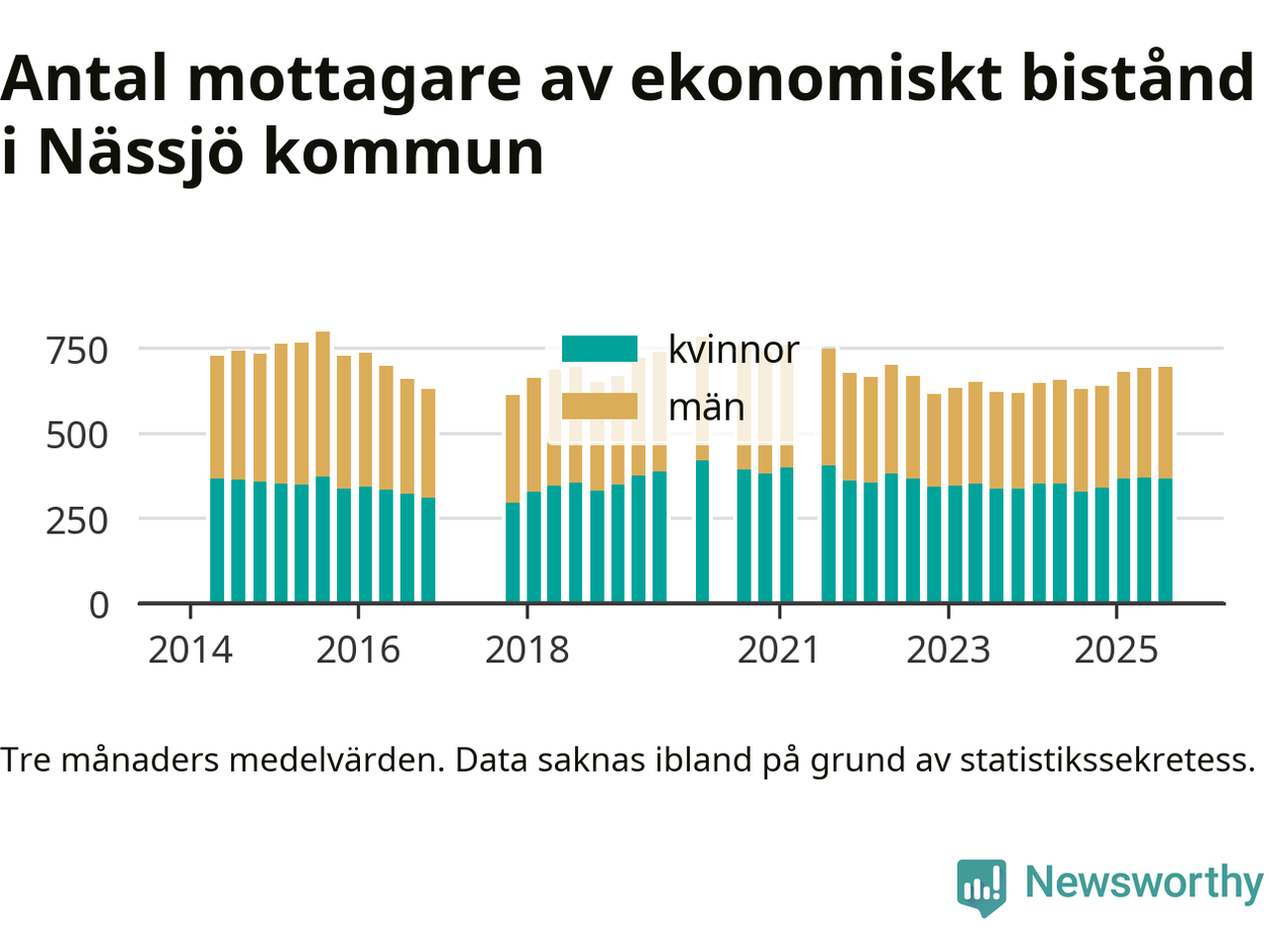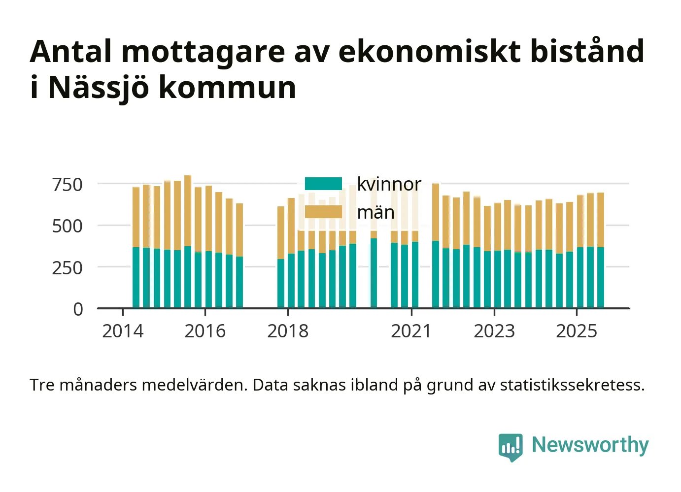 Andelen invånare med ekonomiskt bistånd i Nässjö kommun var högre under sommaren jämfört med motsvarande period året innan. Det visar den senaste, preliminära statistiken från Socialstyrelsen.
