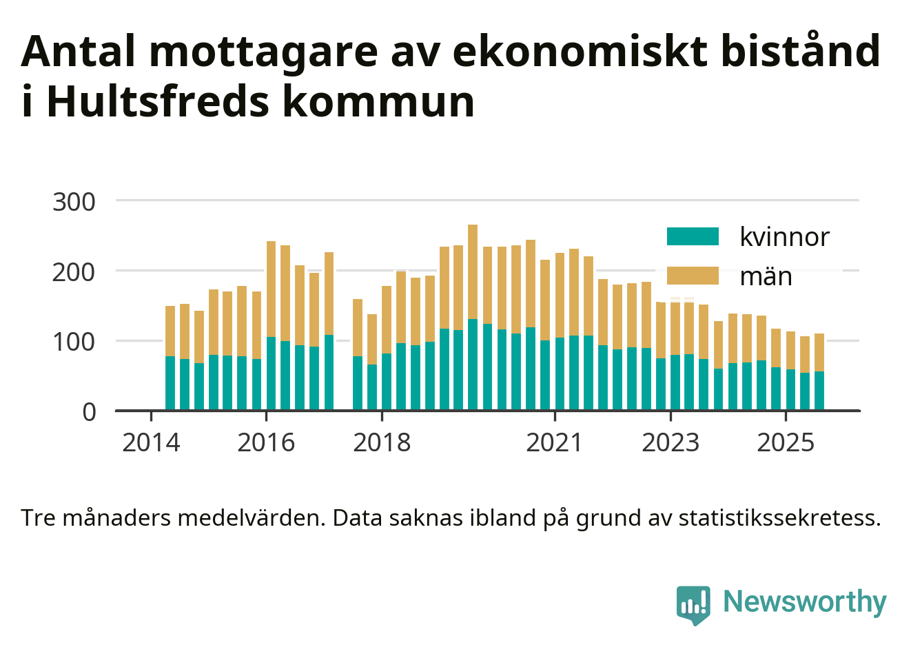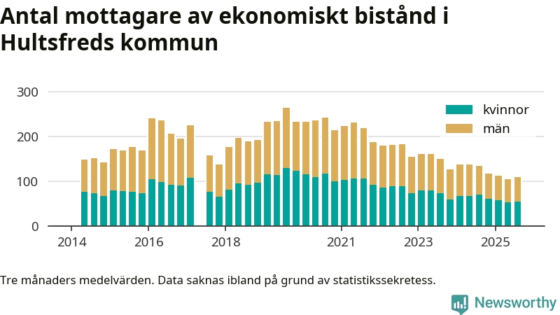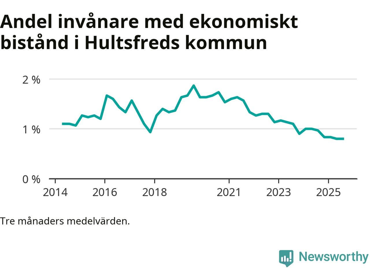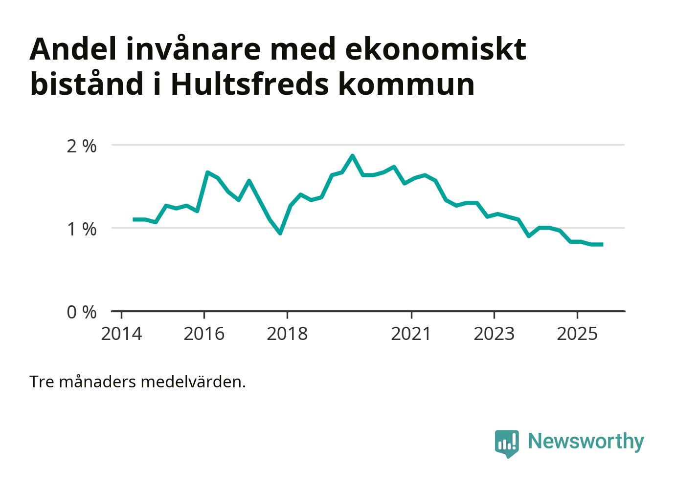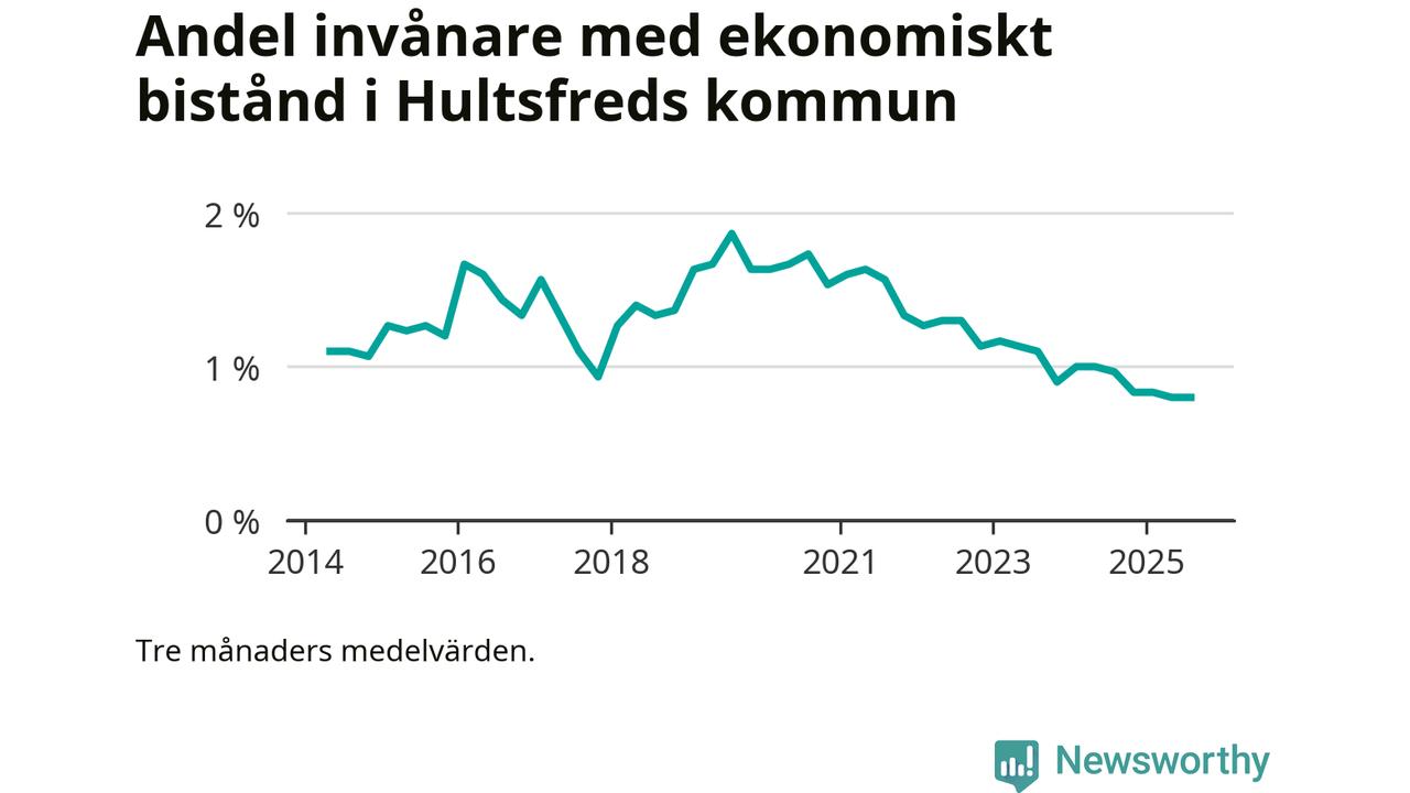 Andelen invånare med ekonomiskt bistånd i Hultsfreds kommun var lägre under sommaren jämfört med motsvarande period året innan. Det visar den senaste, preliminära statistiken från Socialstyrelsen.