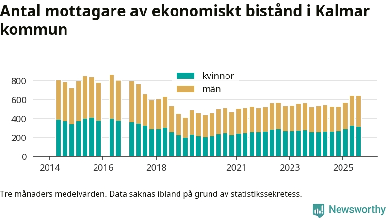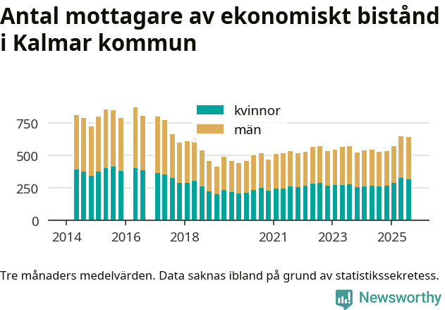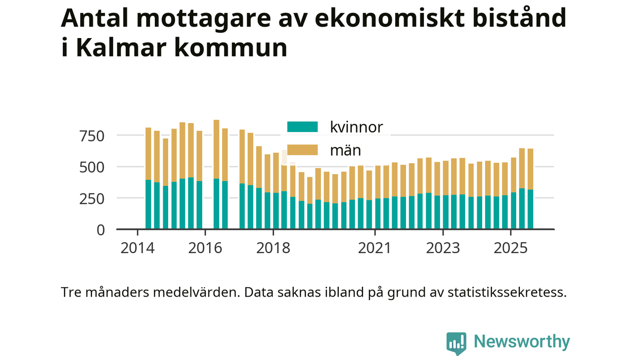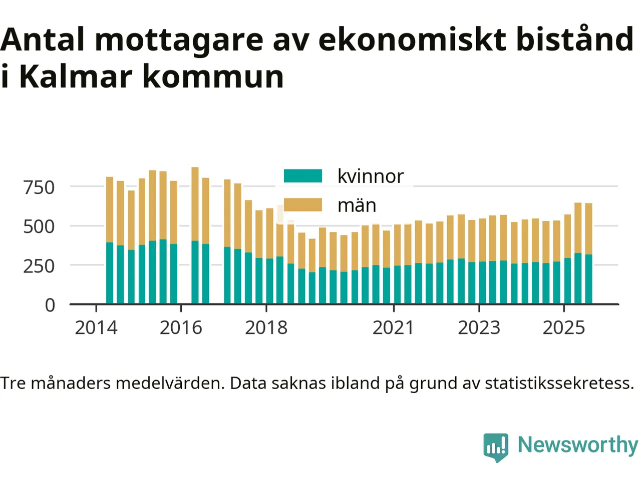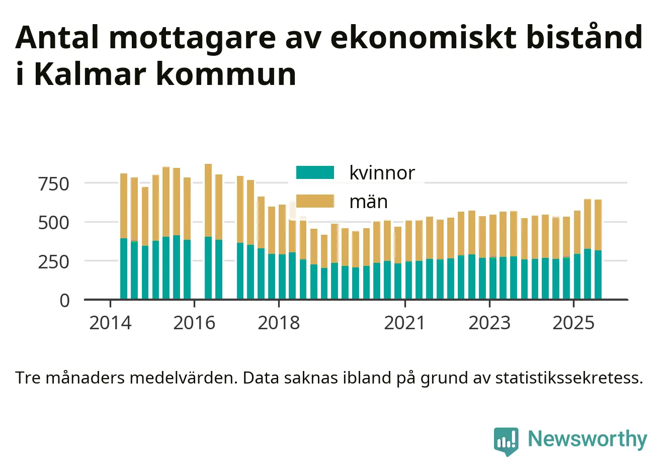 I genomsnitt 642 personer per månad fick ekonomiskt bistånd i Kalmar kommun