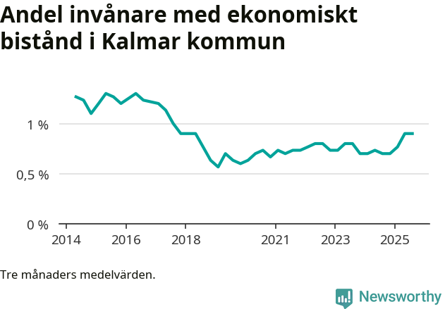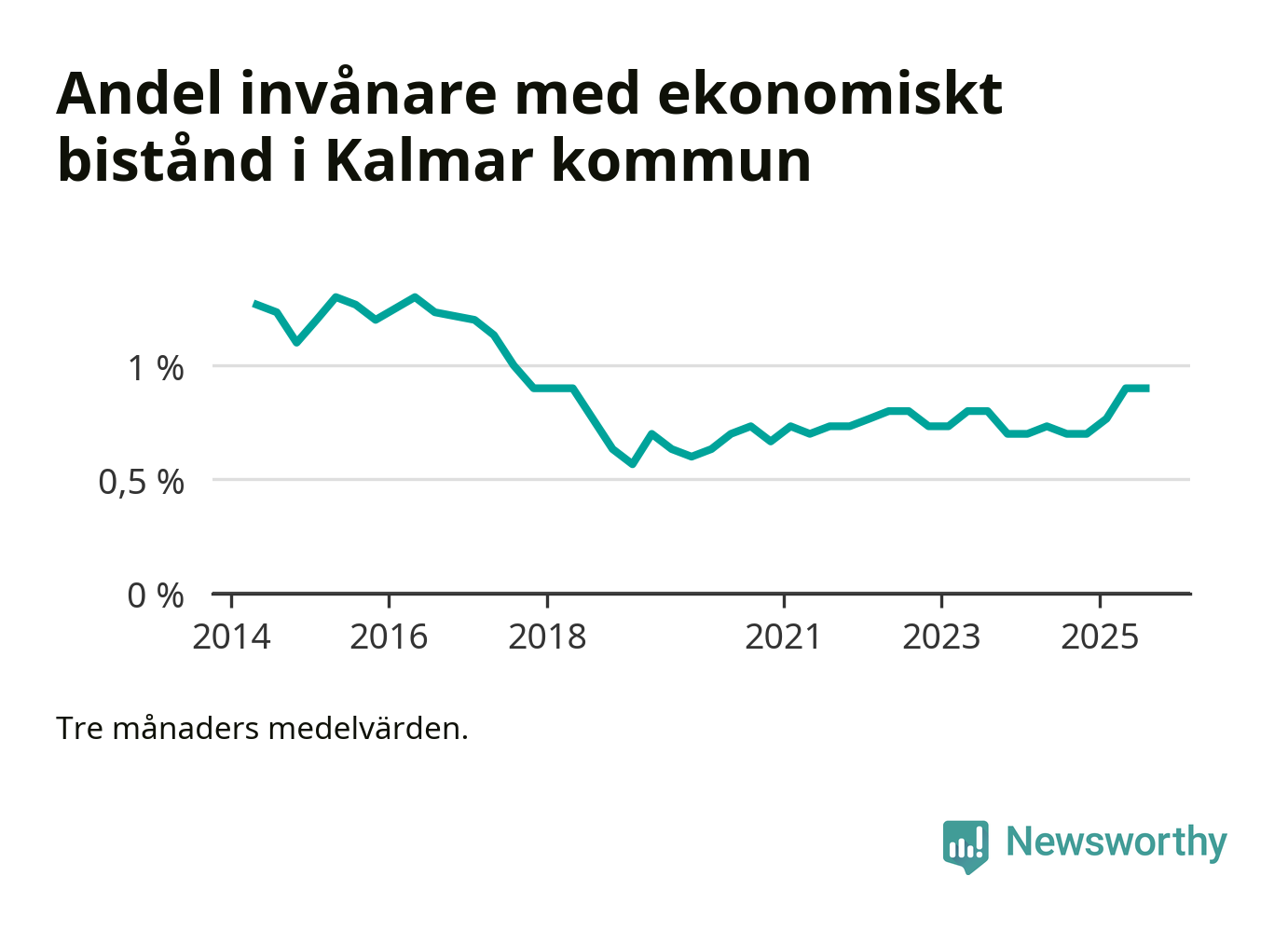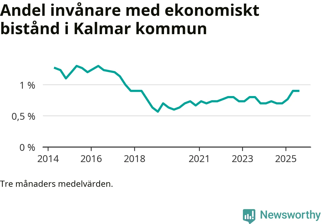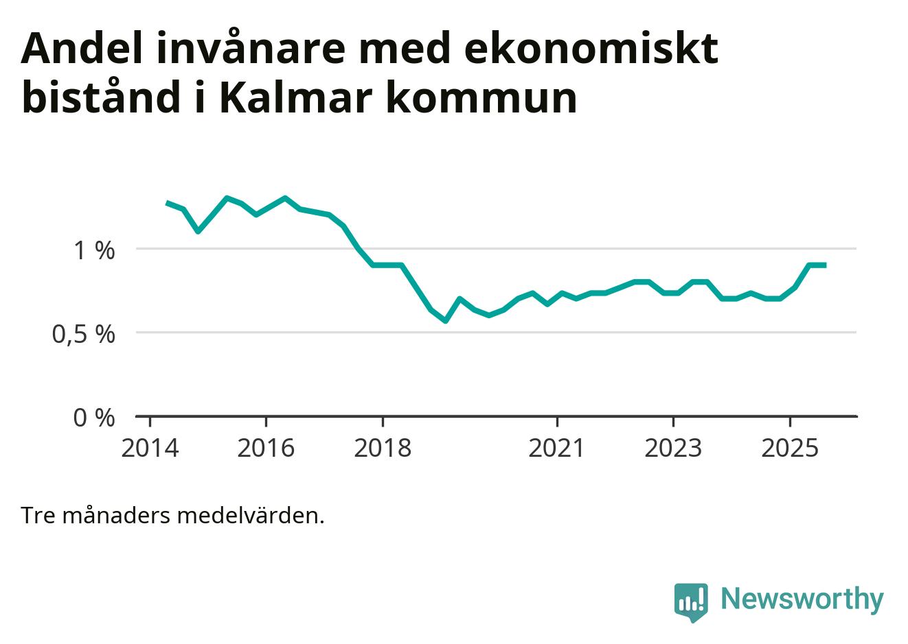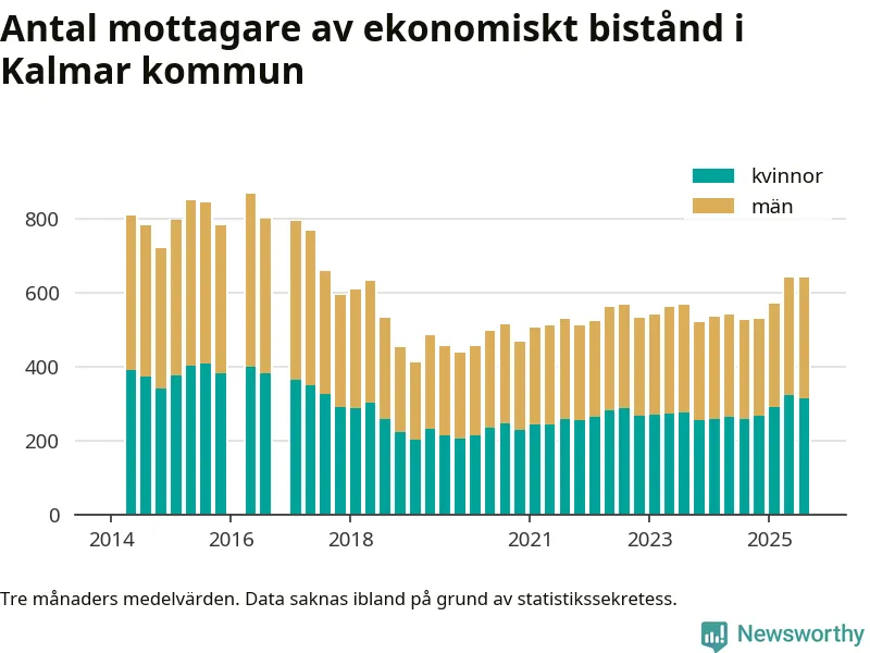 I genomsnitt 642 personer per månad fick ekonomiskt bistånd i Kalmar kommun