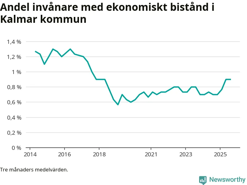 Andelen invånare med ekonomiskt bistånd i Kalmar kommun