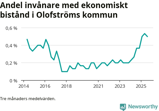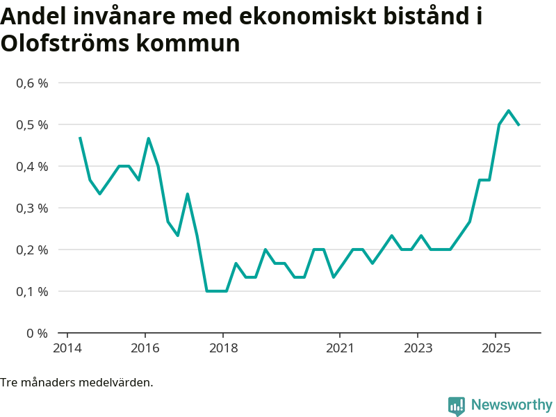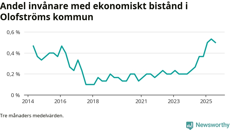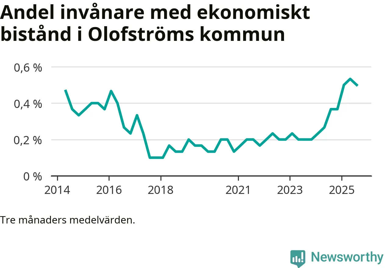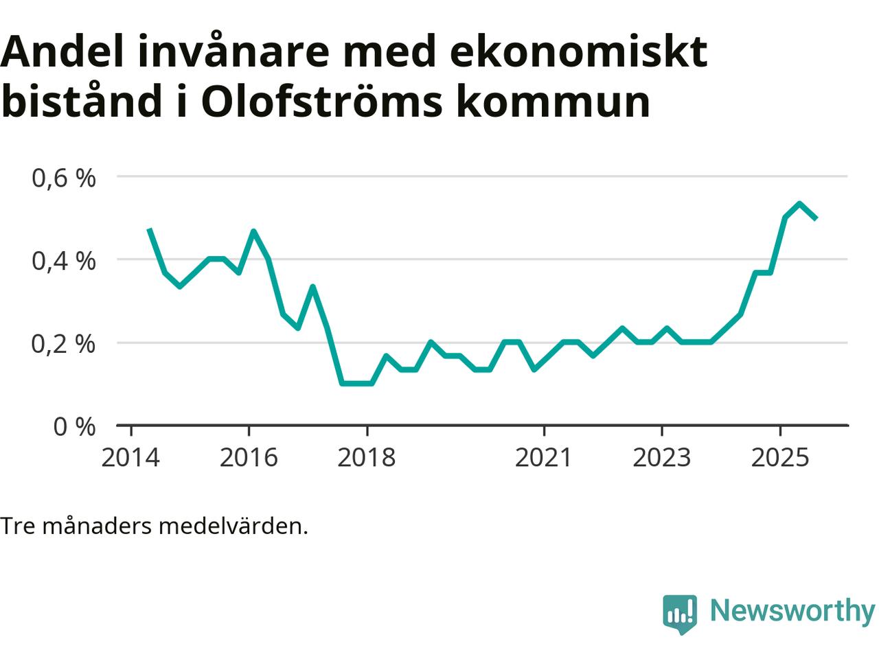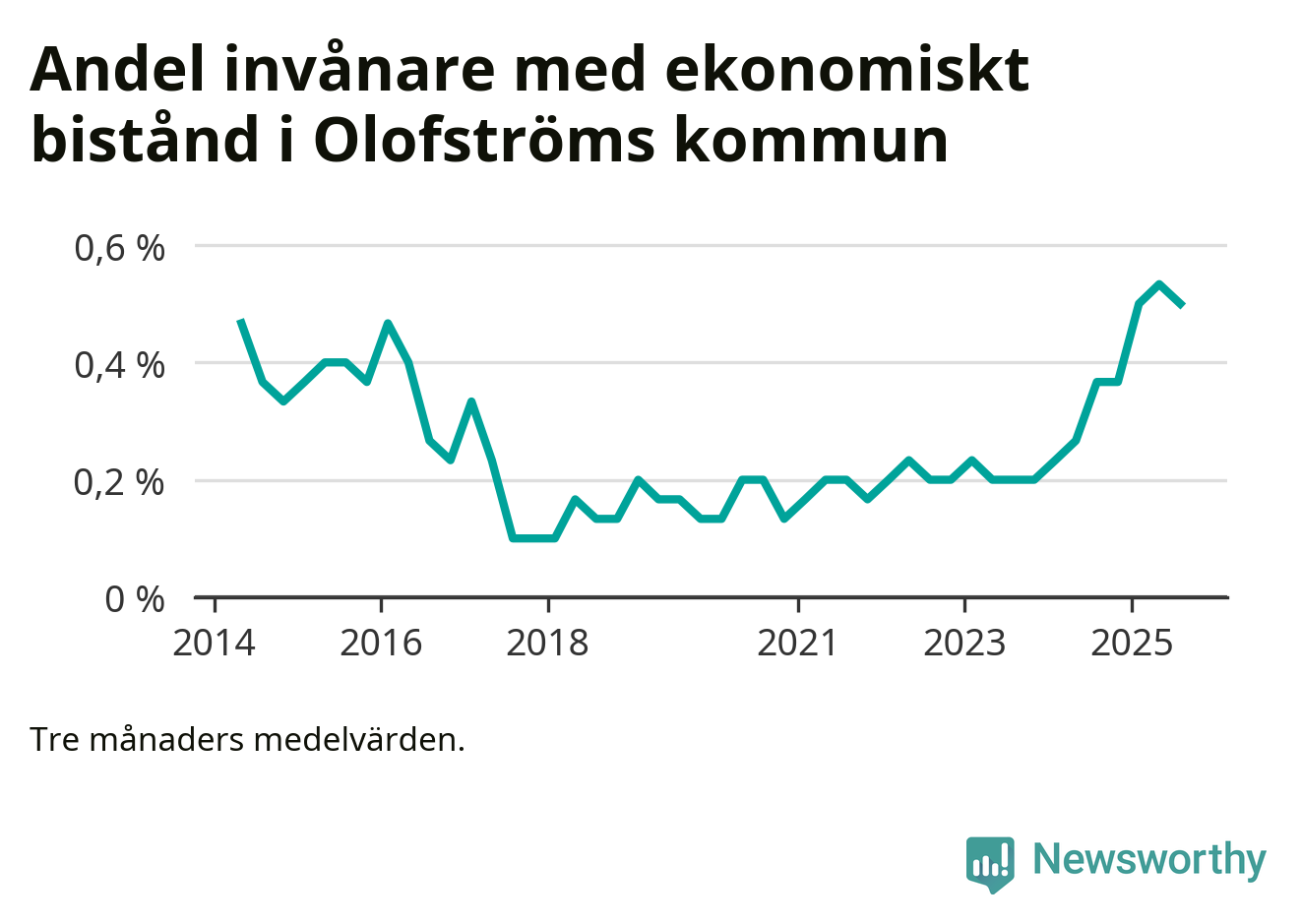 Andelen invånare med ekonomiskt bistånd i Olofströms kommun