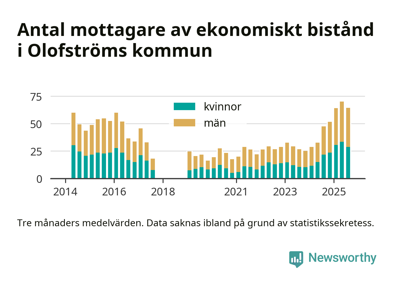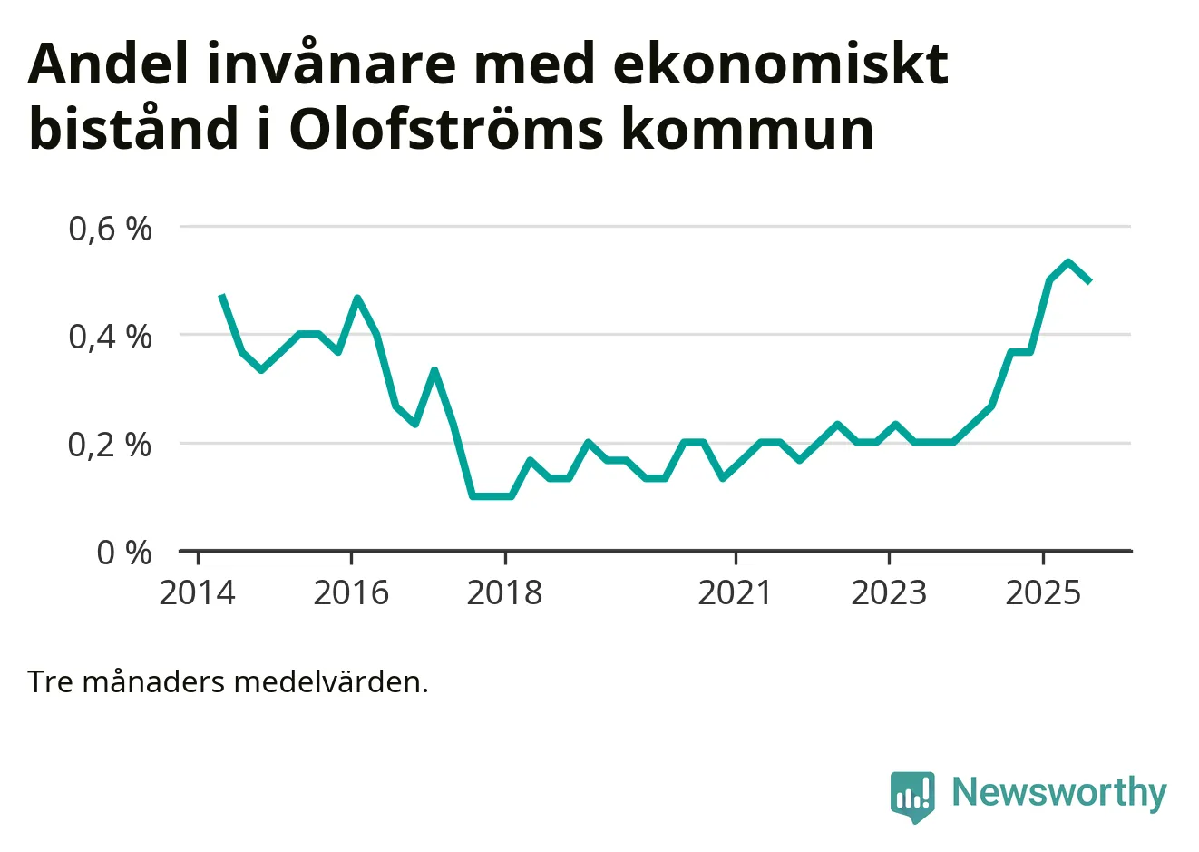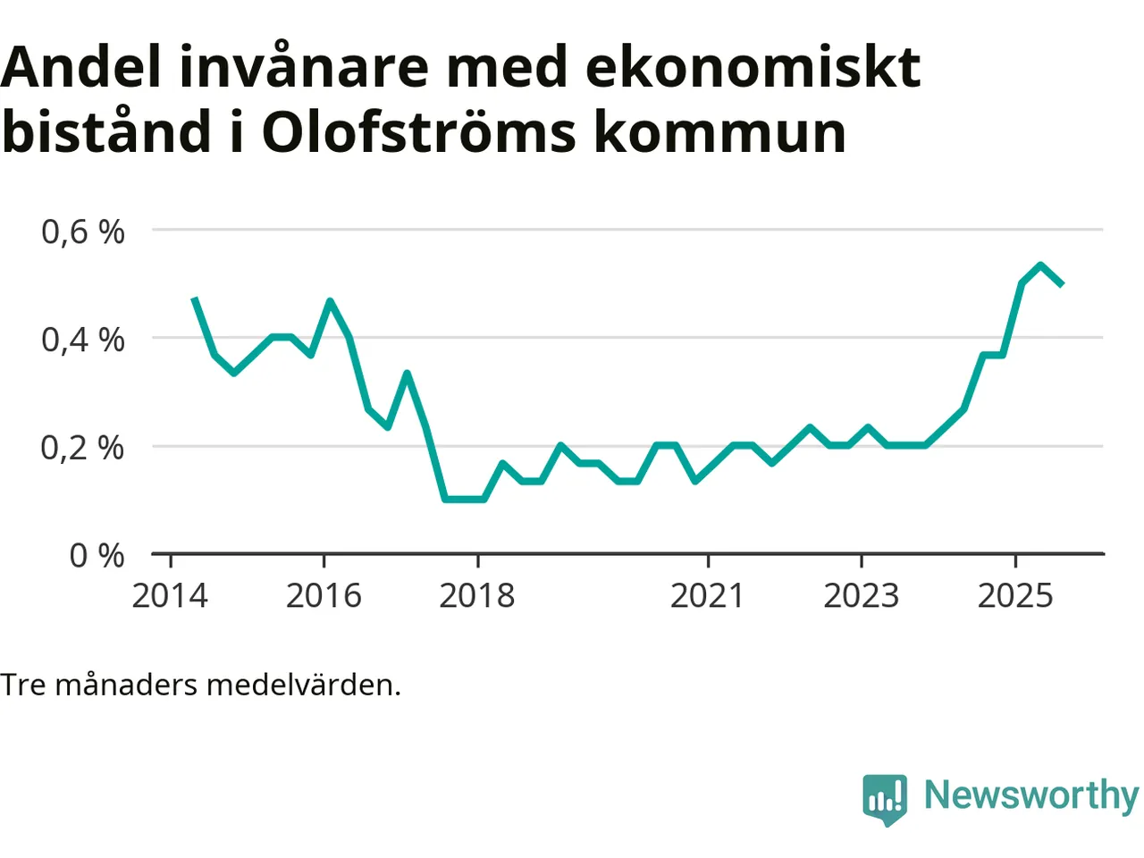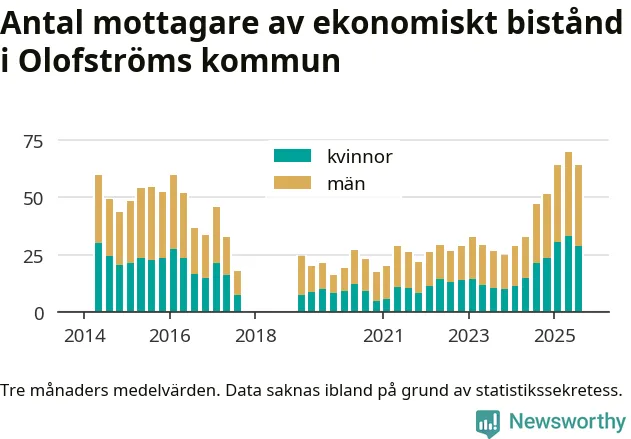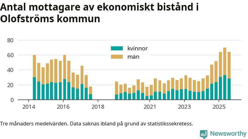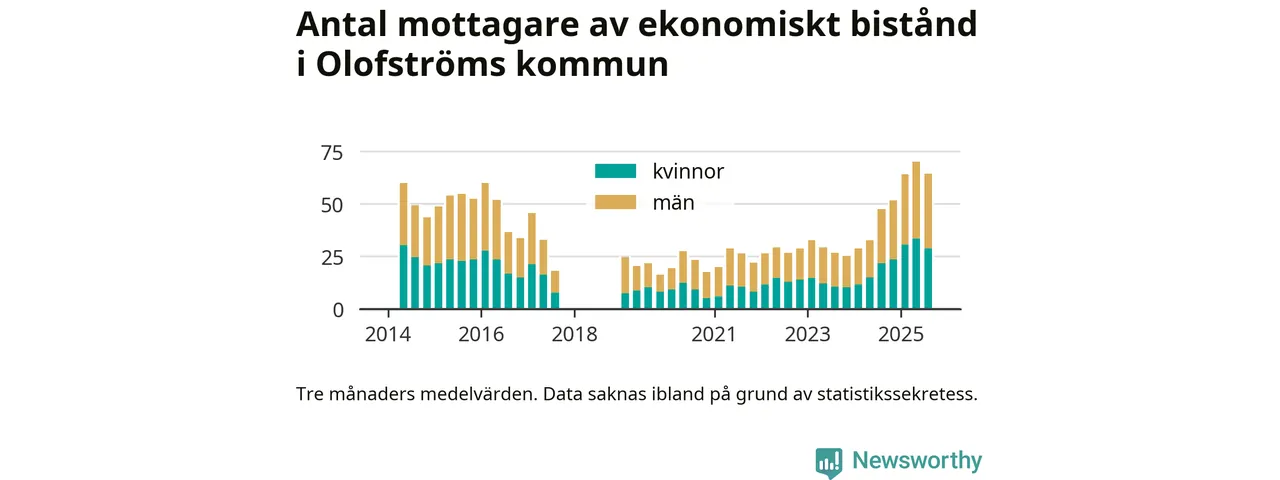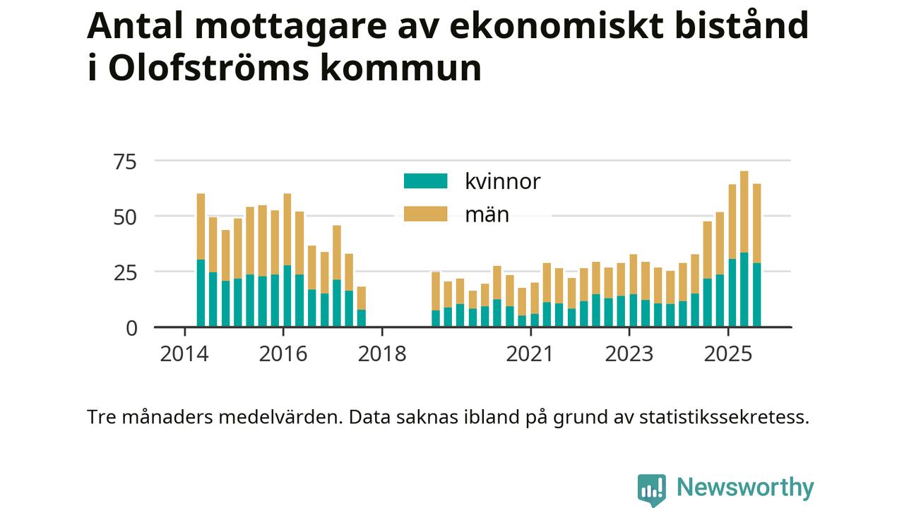 I genomsnitt 64 personer per månad fick ekonomiskt bistånd i Olofströms kommun