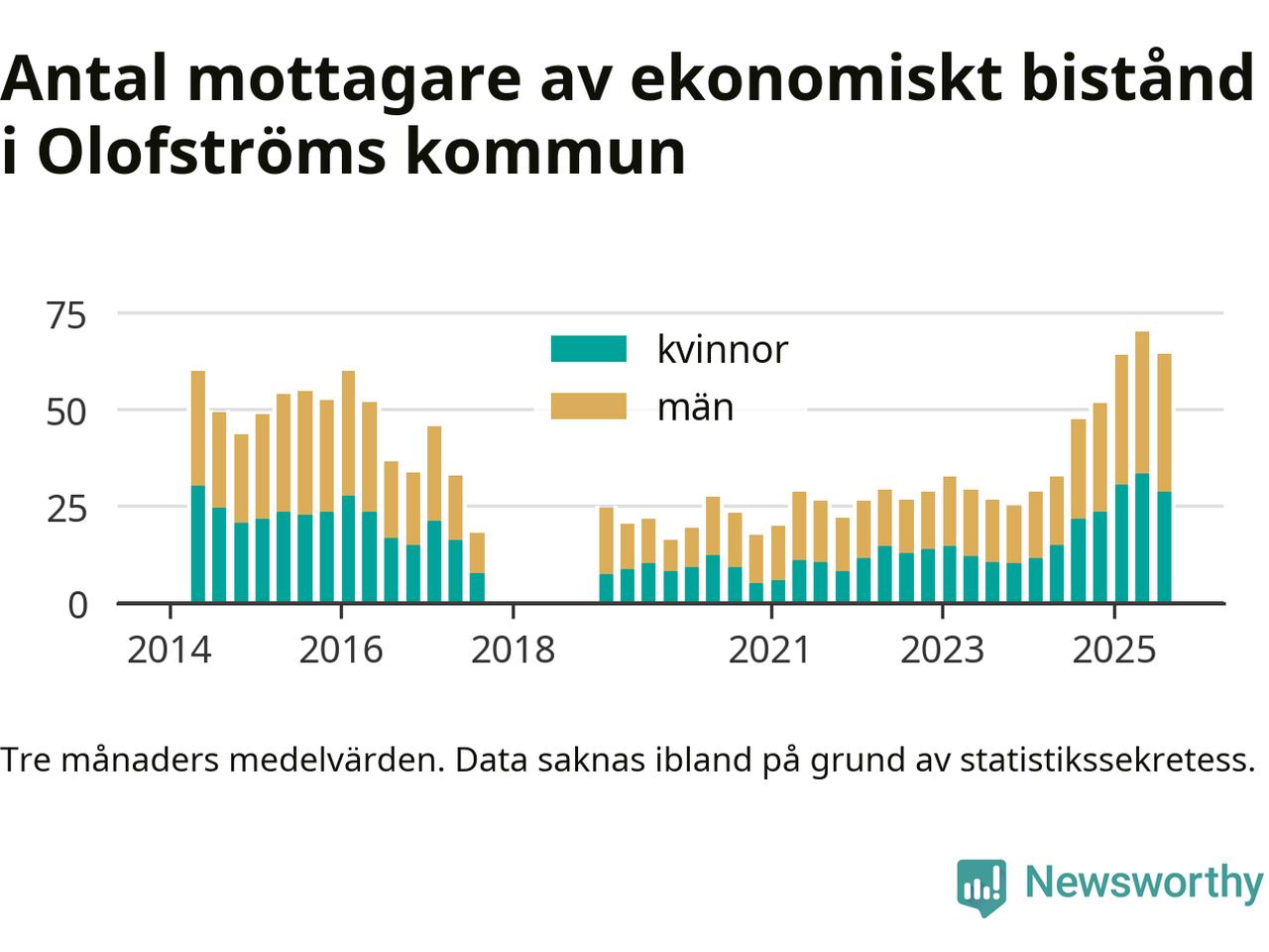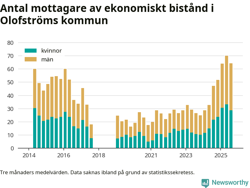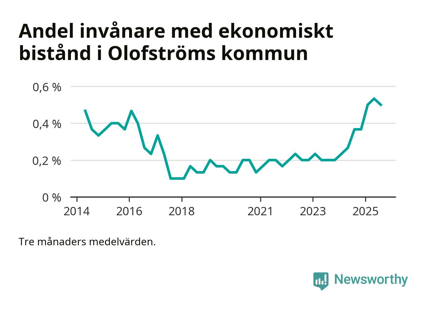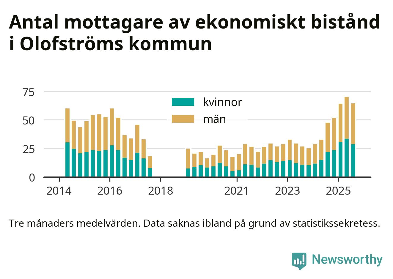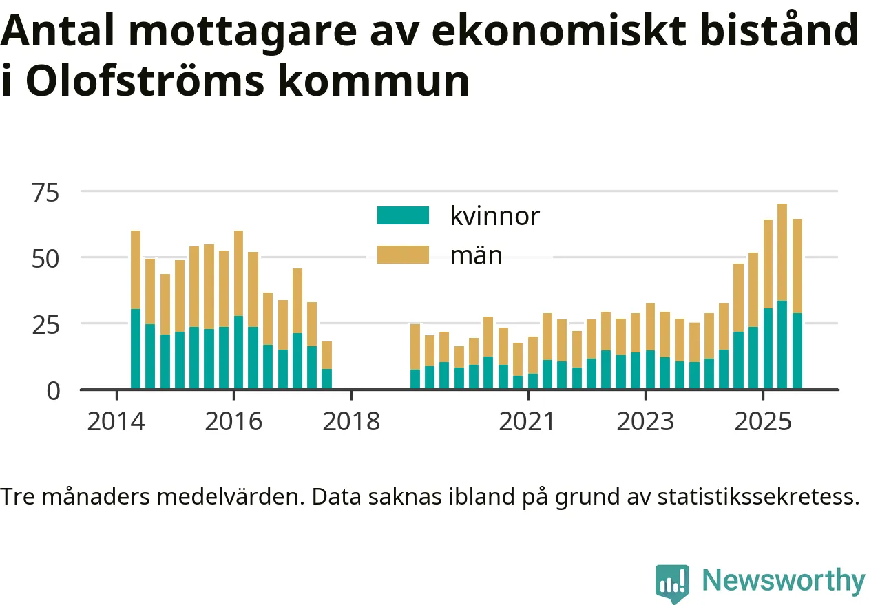 I genomsnitt 64 personer per månad fick ekonomiskt bistånd i Olofströms kommun