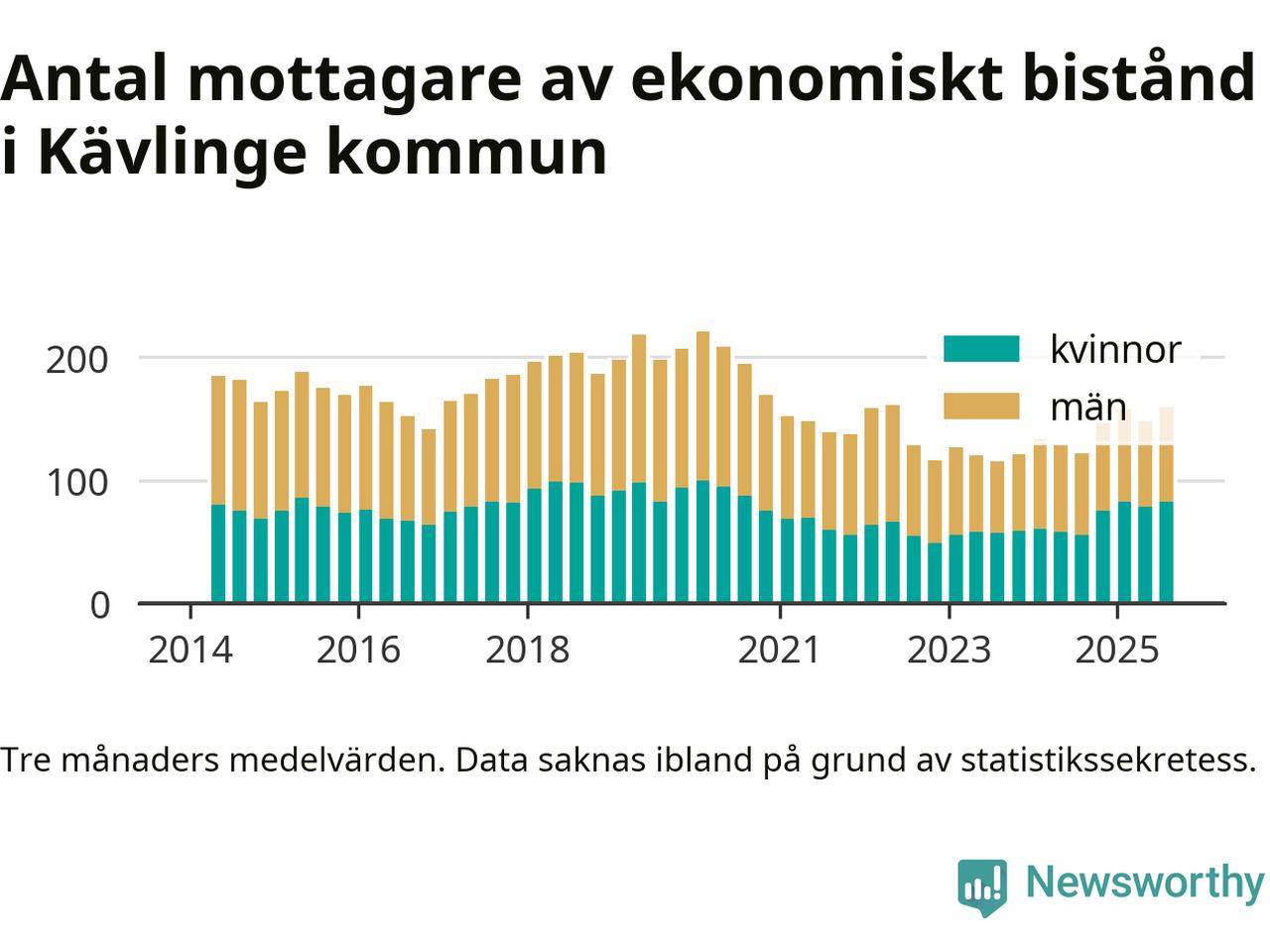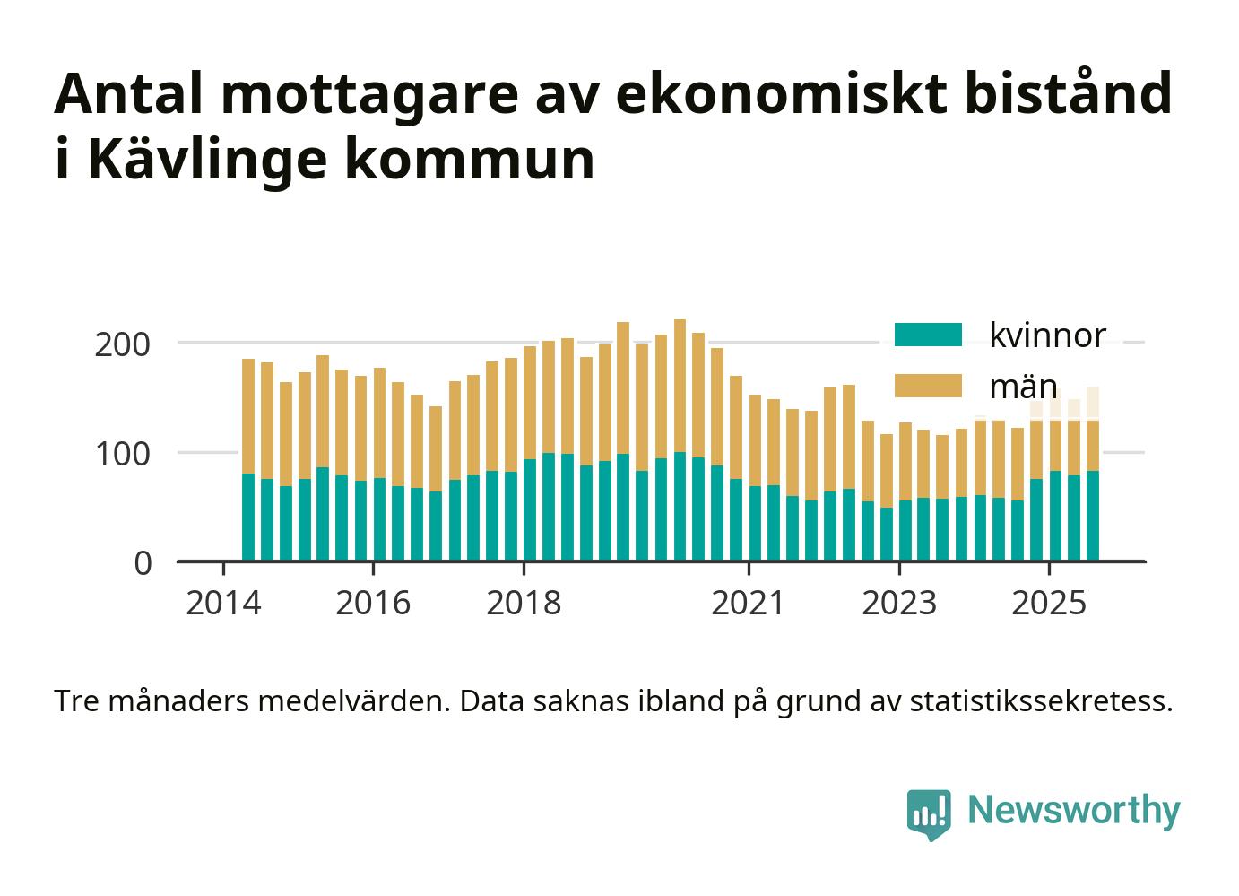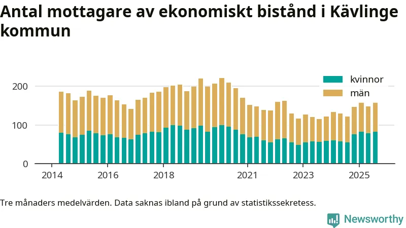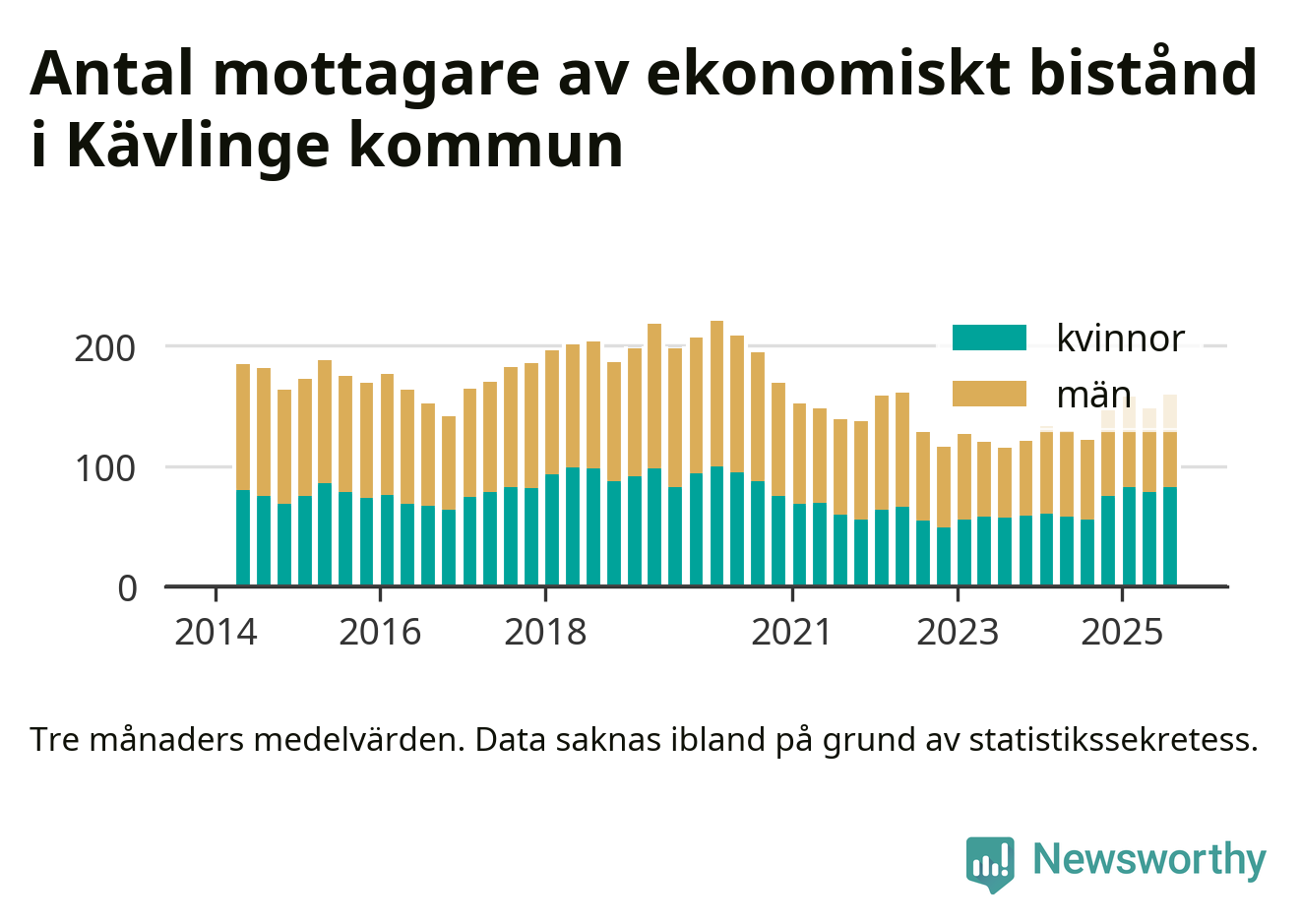 I genomsnitt 159 personer per månad fick ekonomiskt bistånd i Kävlinge kommun under sommarmånaderna (juni till augusti), vilket motsvarar 0,5 procent av den vuxna befolkningen. Det är marginellt mer än i våras, och något större andel än under sommaren för ett år sedan.