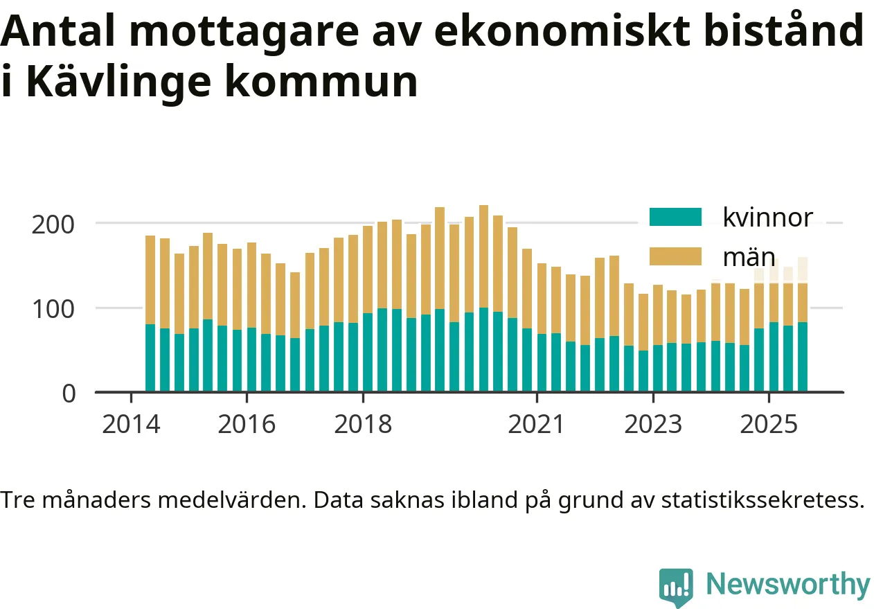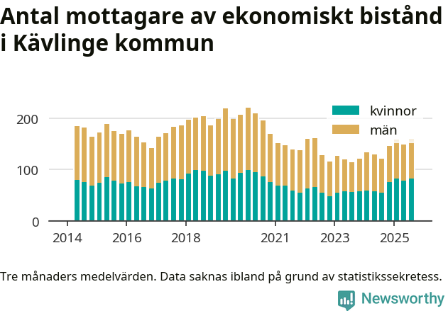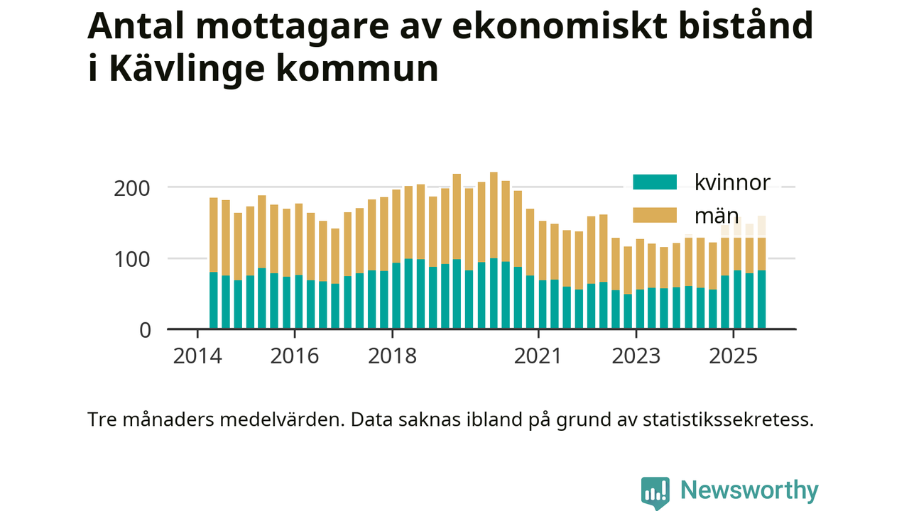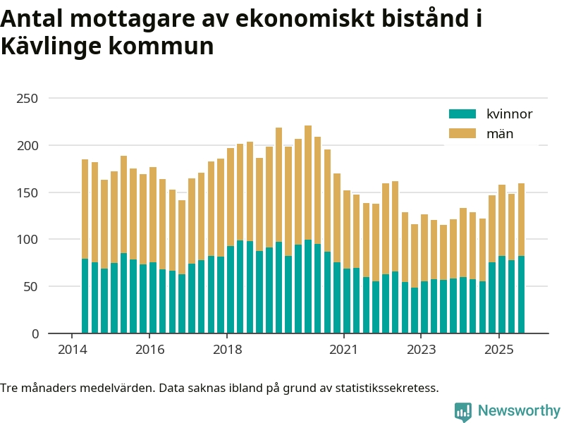 I genomsnitt 159 personer per månad fick ekonomiskt bistånd i Kävlinge kommun under sommarmånaderna (juni till augusti), vilket motsvarar 0,5 procent av den vuxna befolkningen. Det är marginellt mer än i våras, och något större andel än under sommaren för ett år sedan.