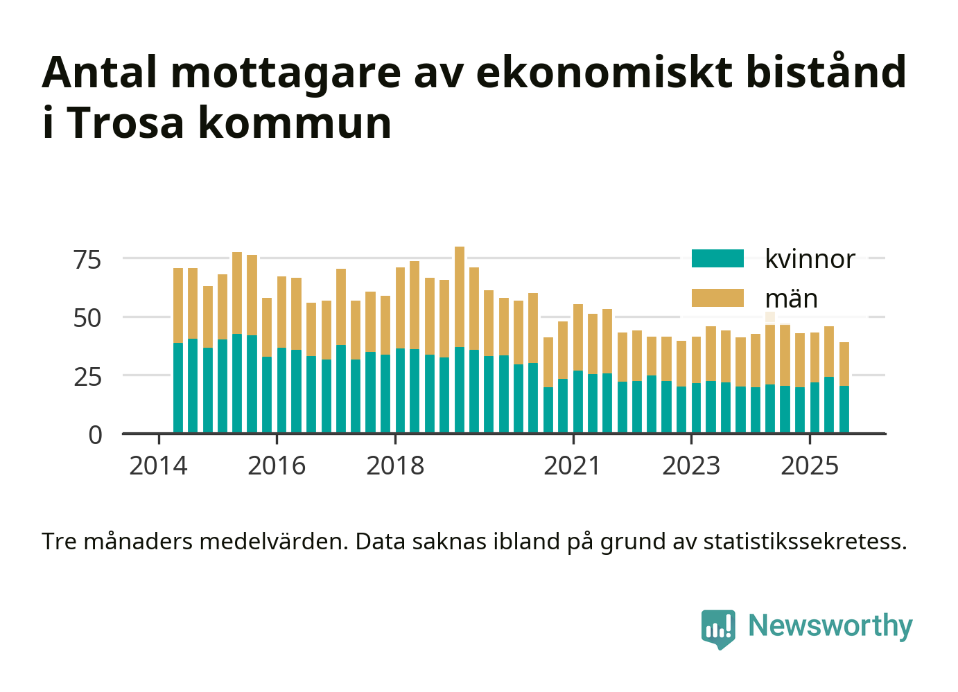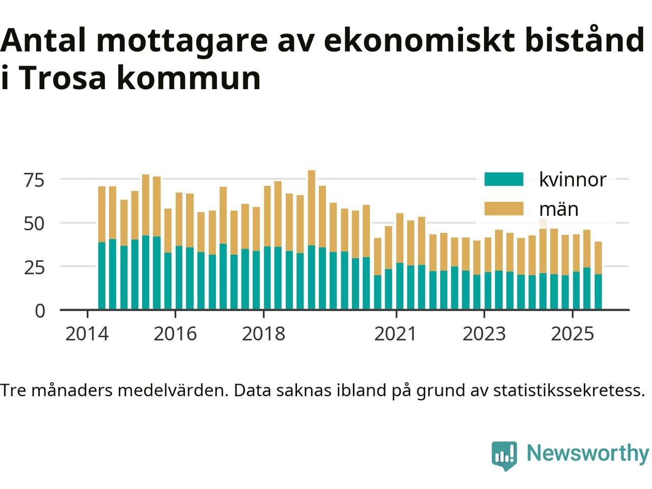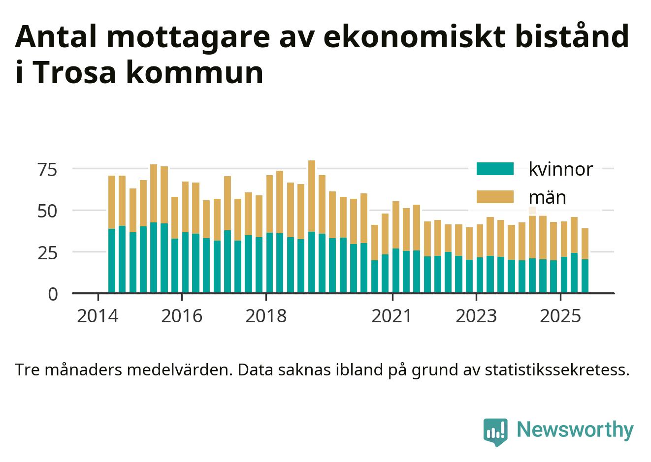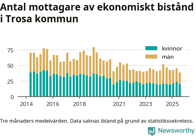 I genomsnitt 39 personer per månad fick ekonomiskt bistånd i Trosa kommun