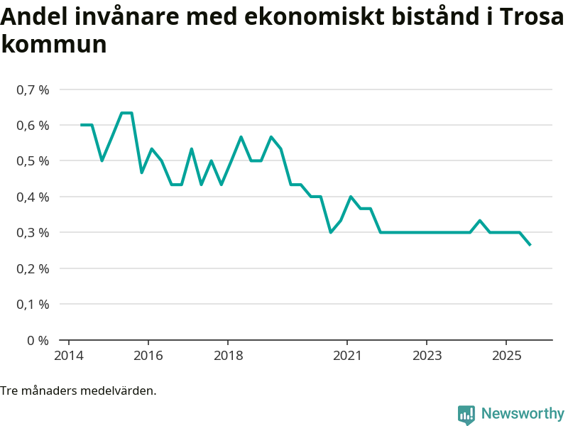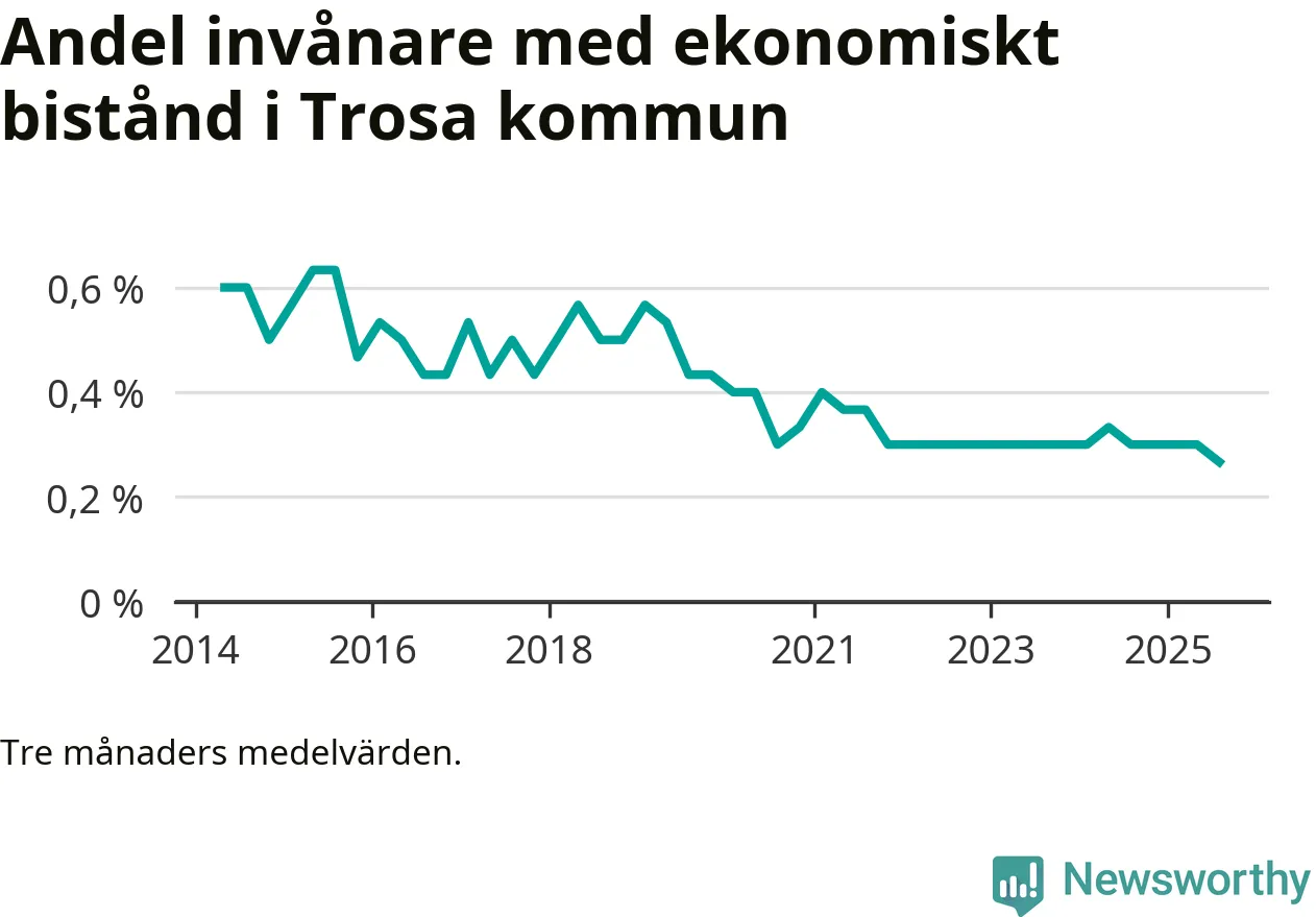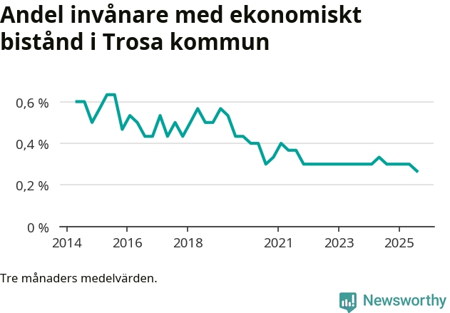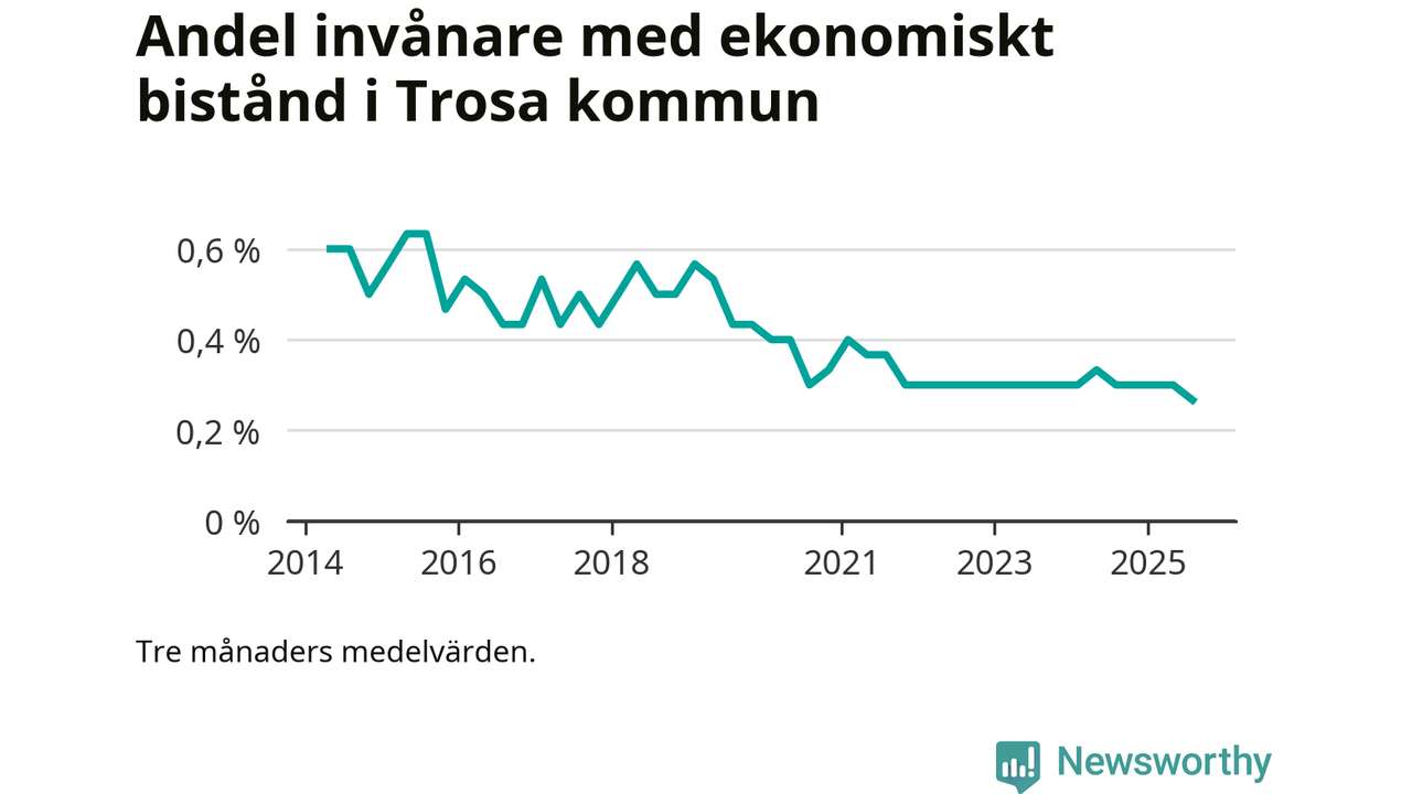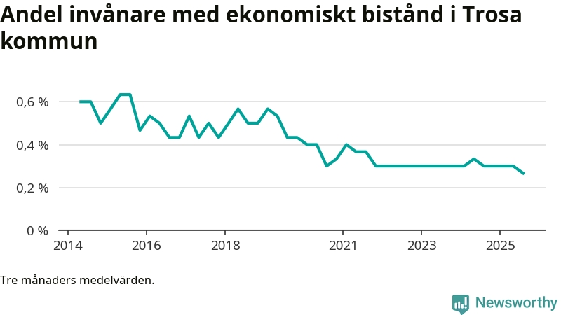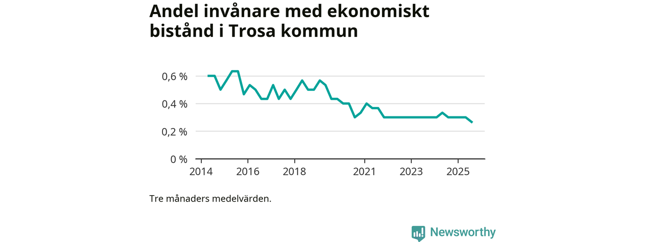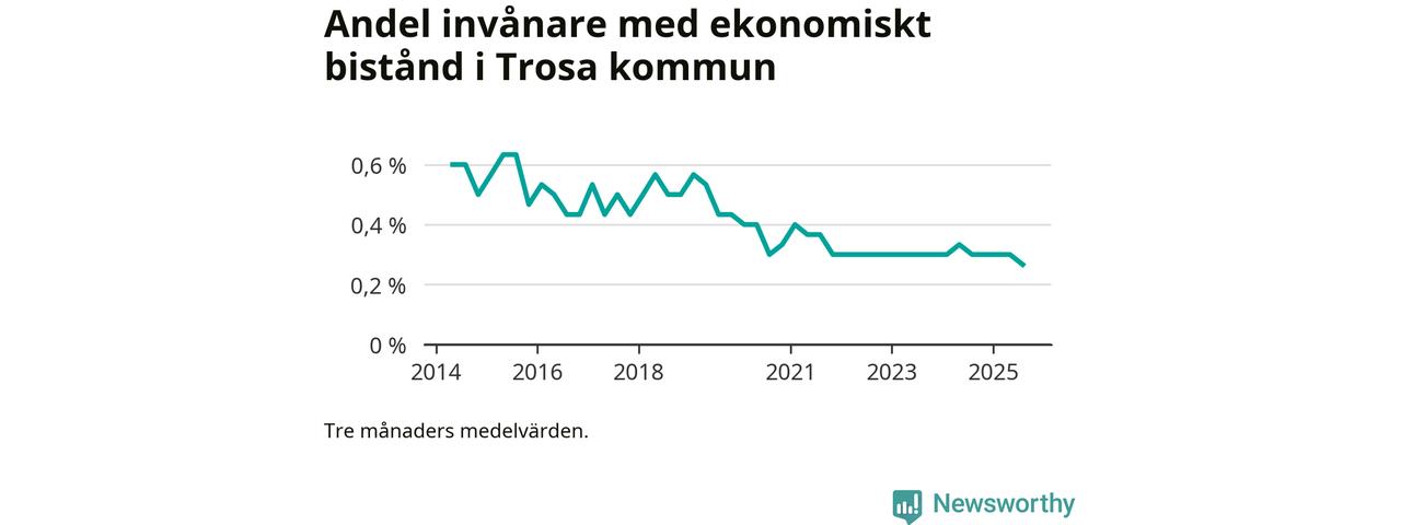 Andelen invånare med ekonomiskt bistånd i Trosa kommun