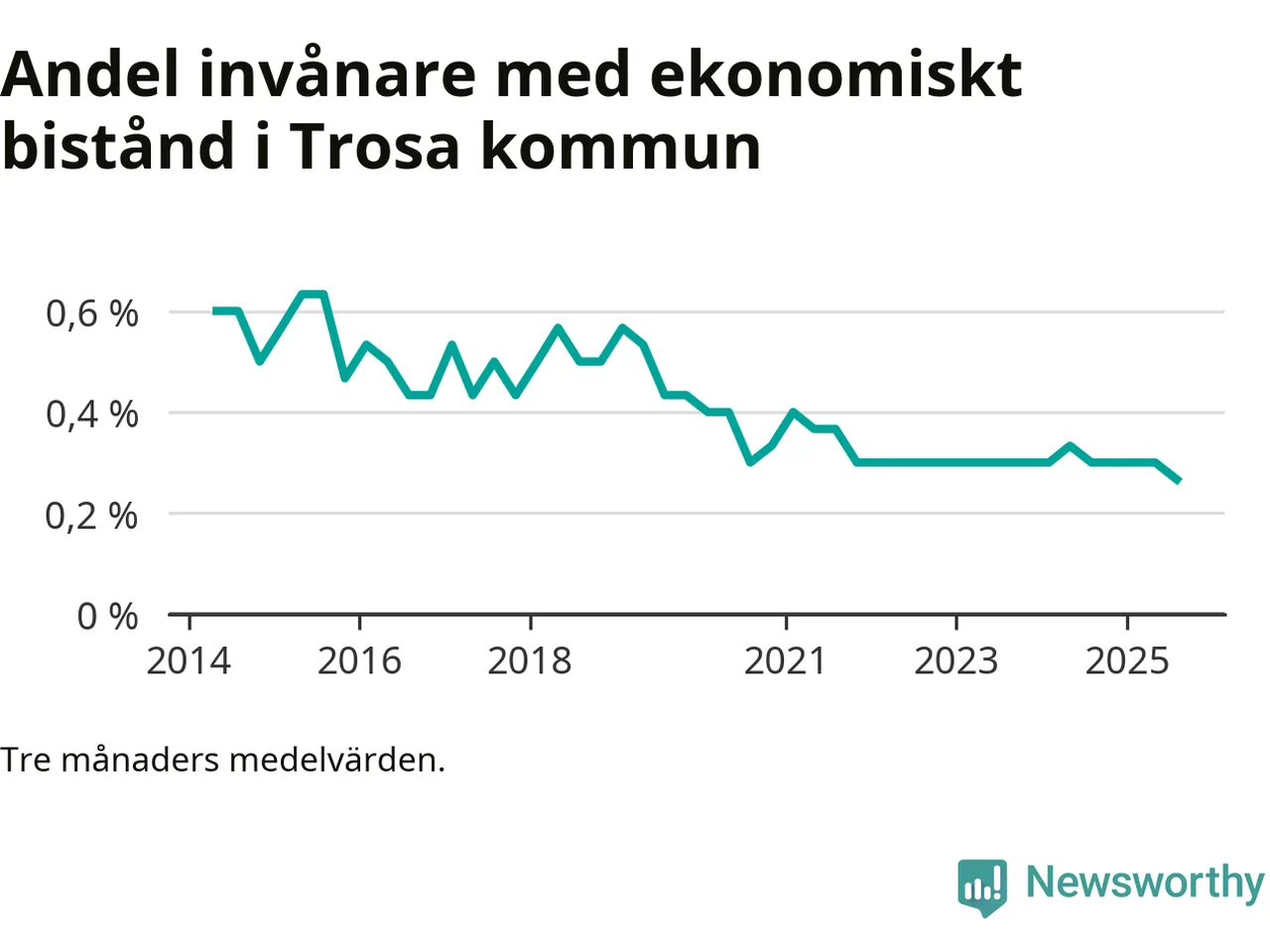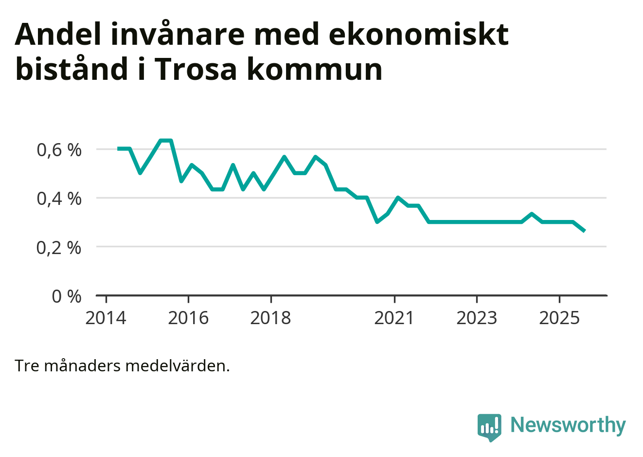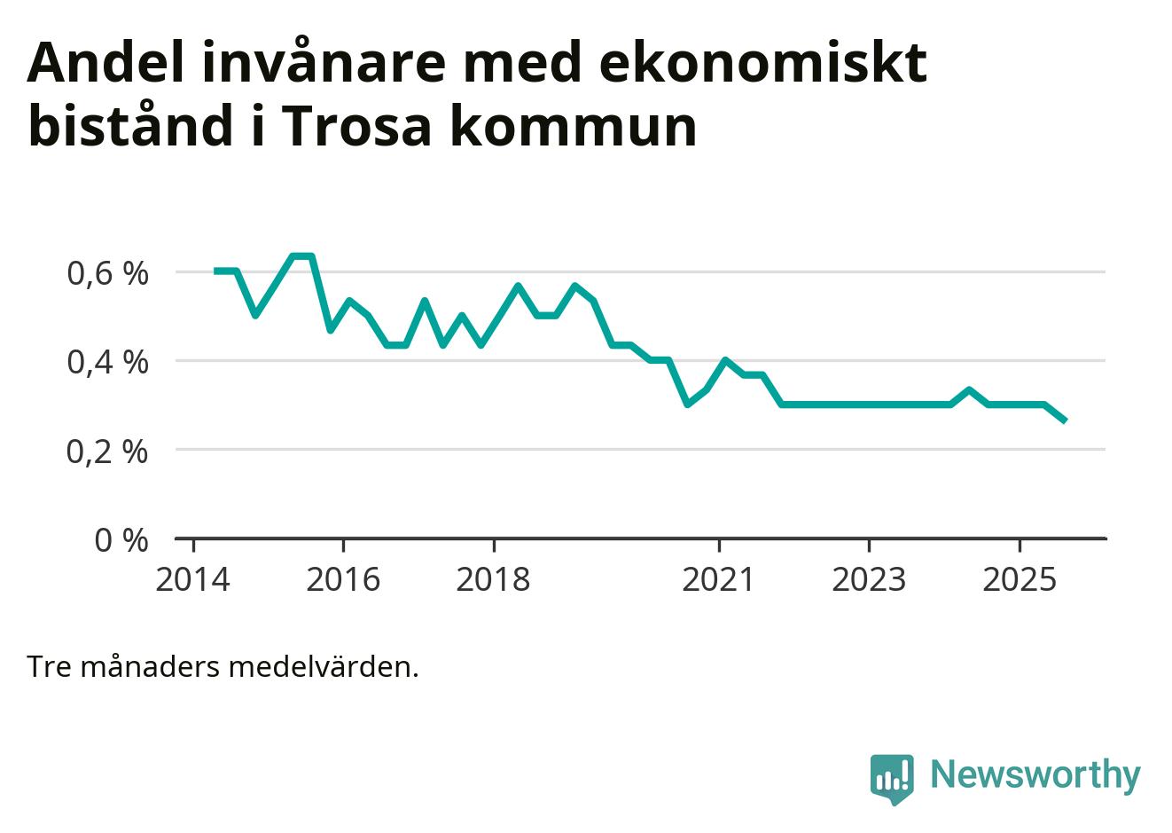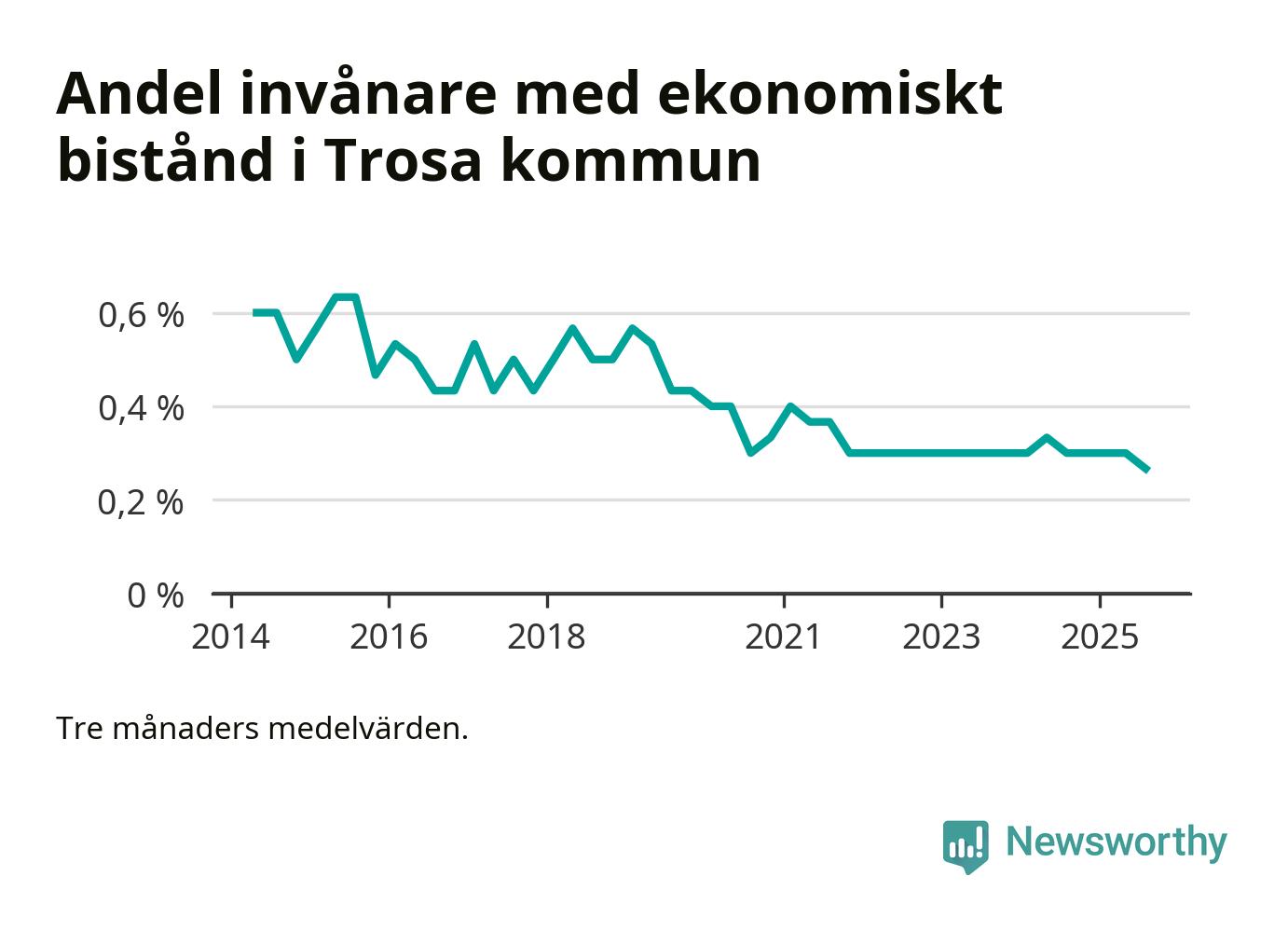 Andelen invånare med ekonomiskt bistånd i Trosa kommun