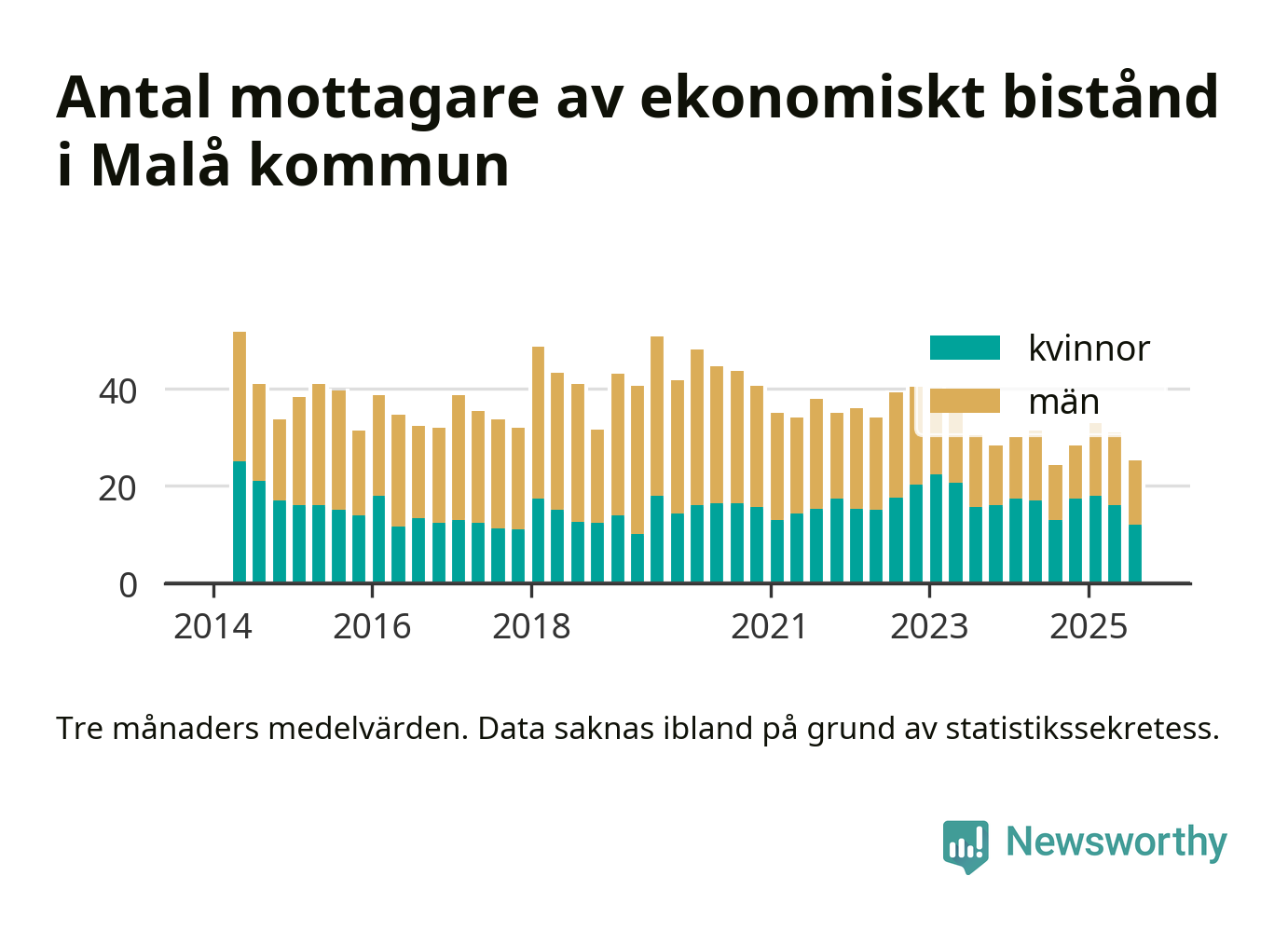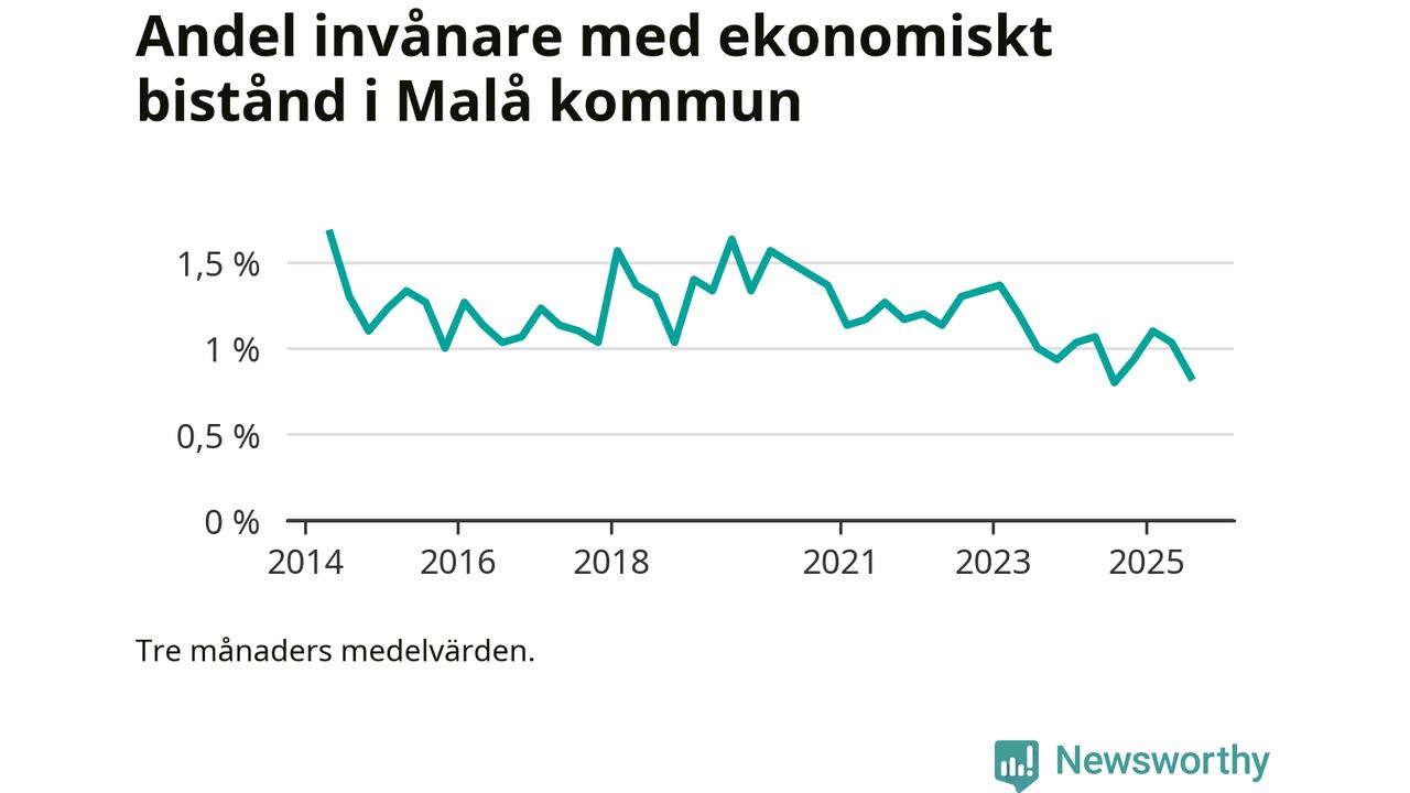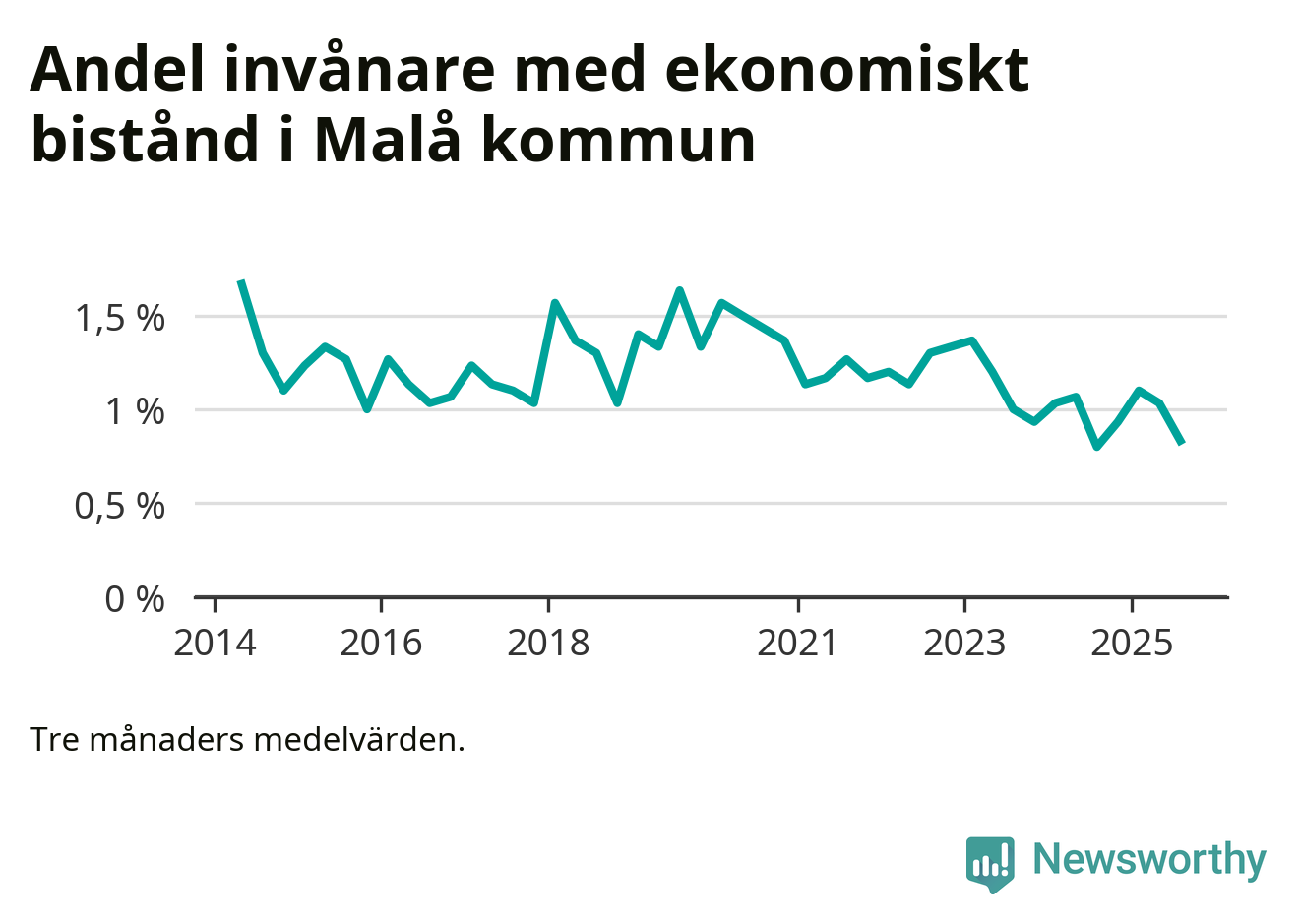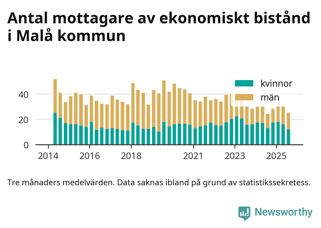 I genomsnitt 25 personer per månad fick ekonomiskt bistånd i Malå kommun