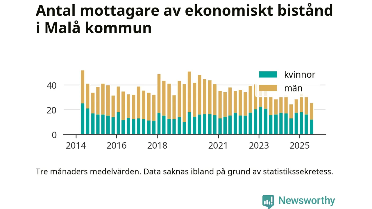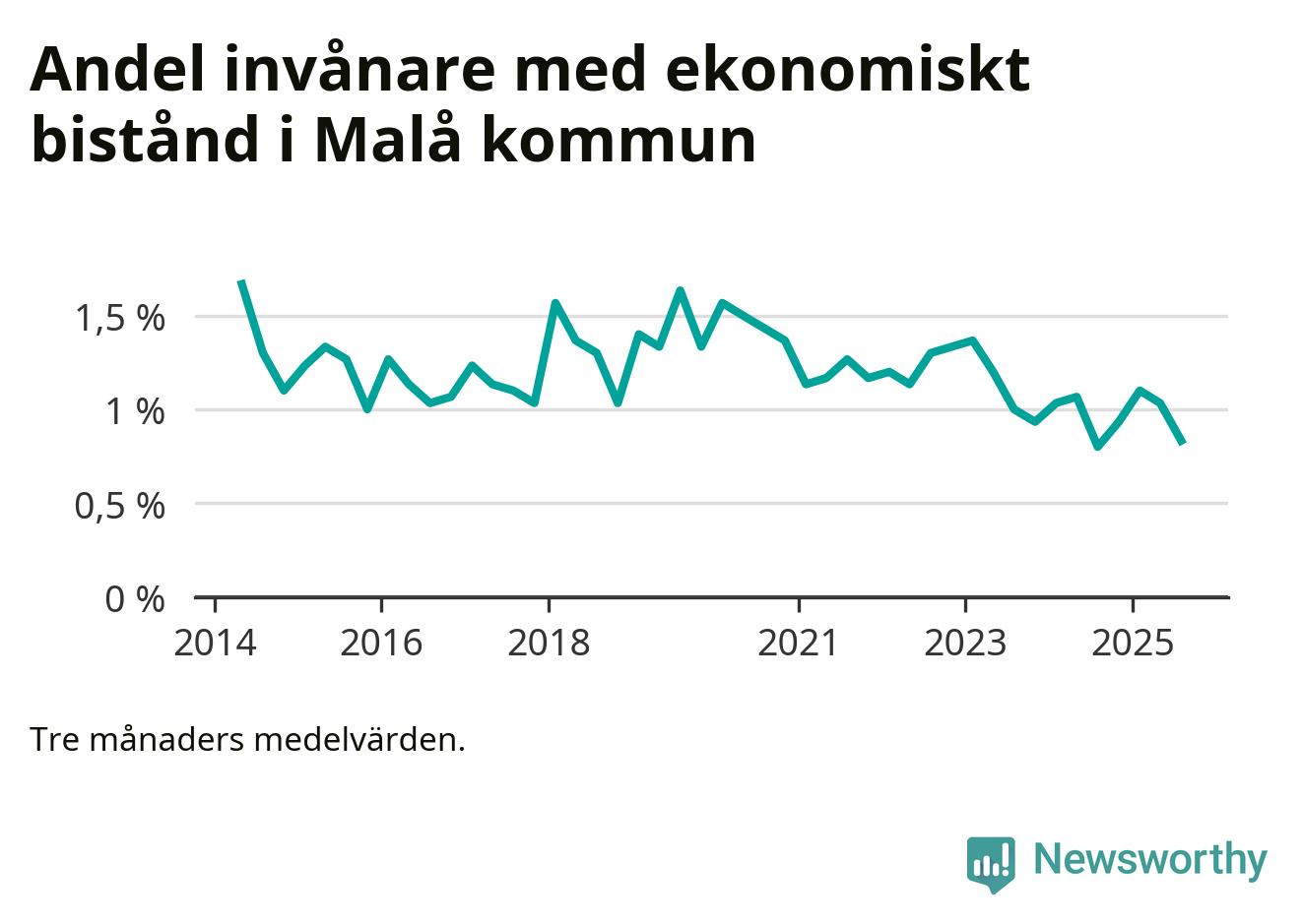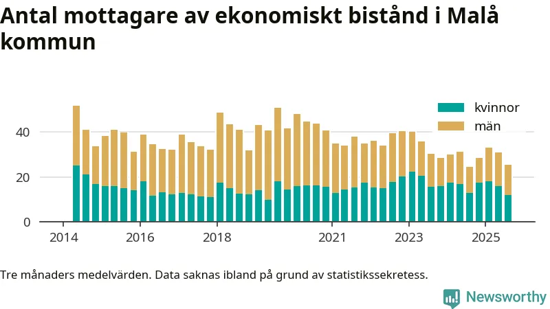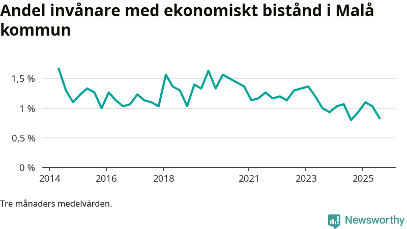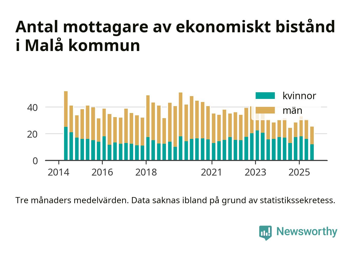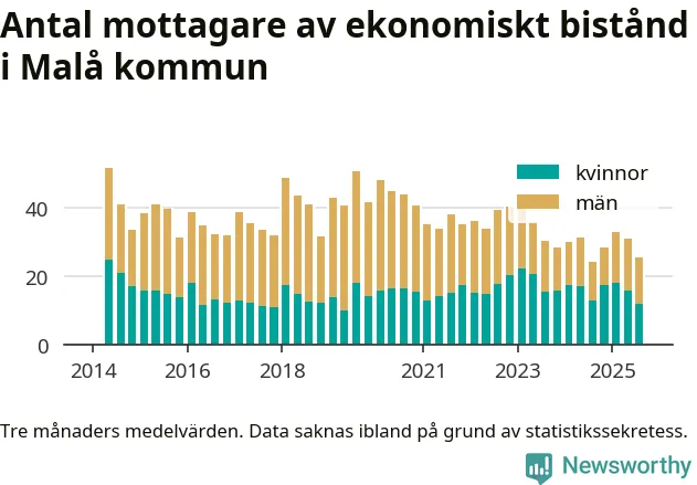 I genomsnitt 25 personer per månad fick ekonomiskt bistånd i Malå kommun