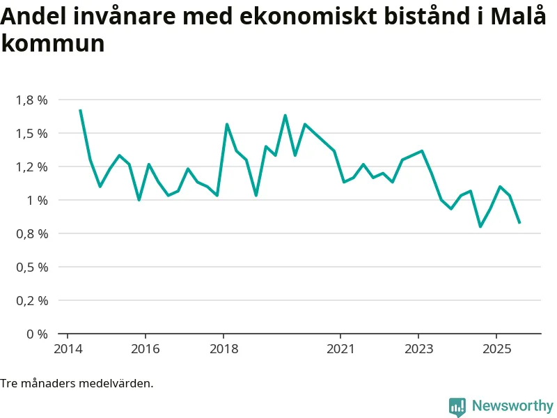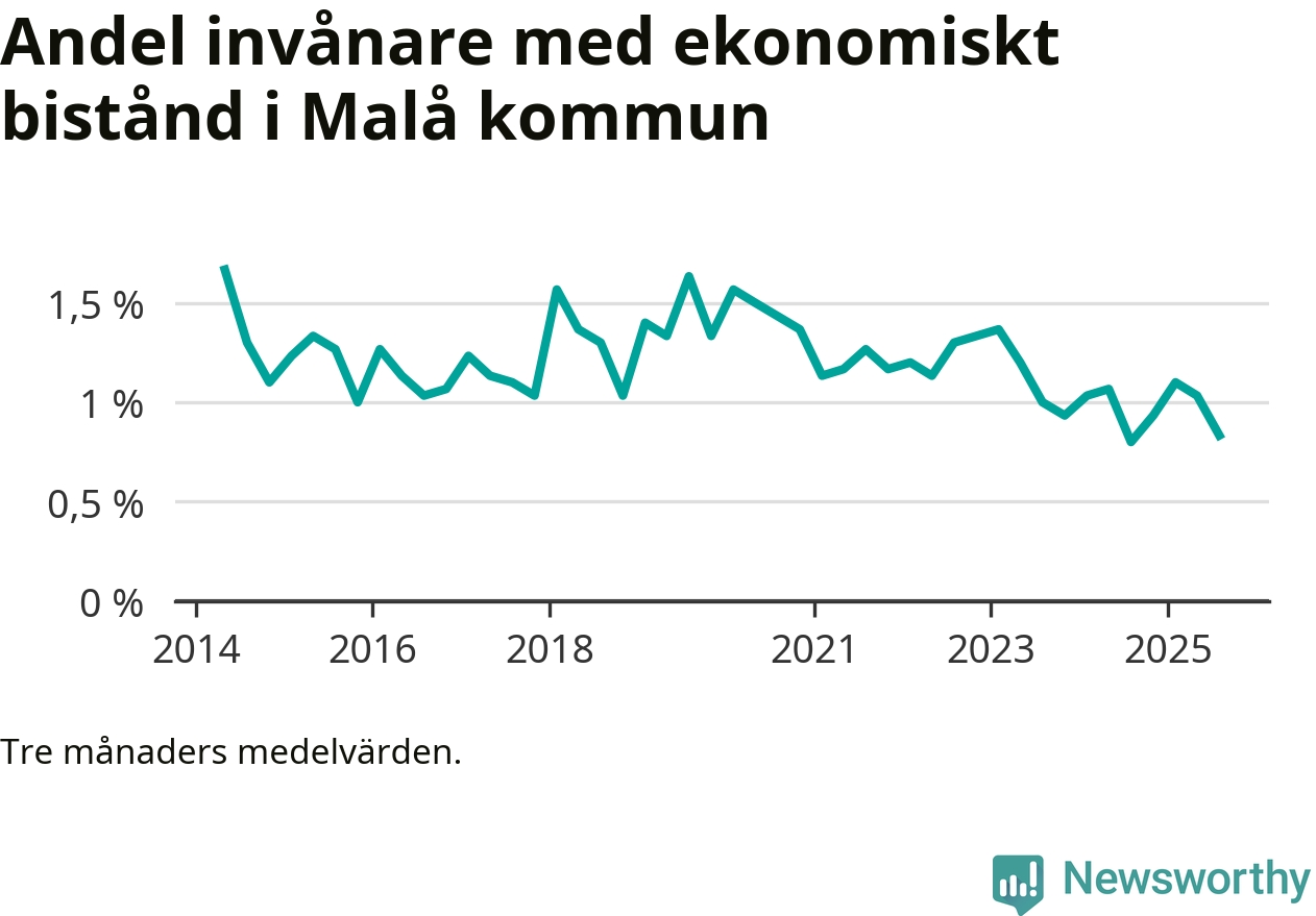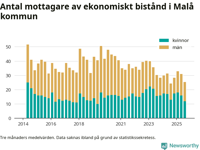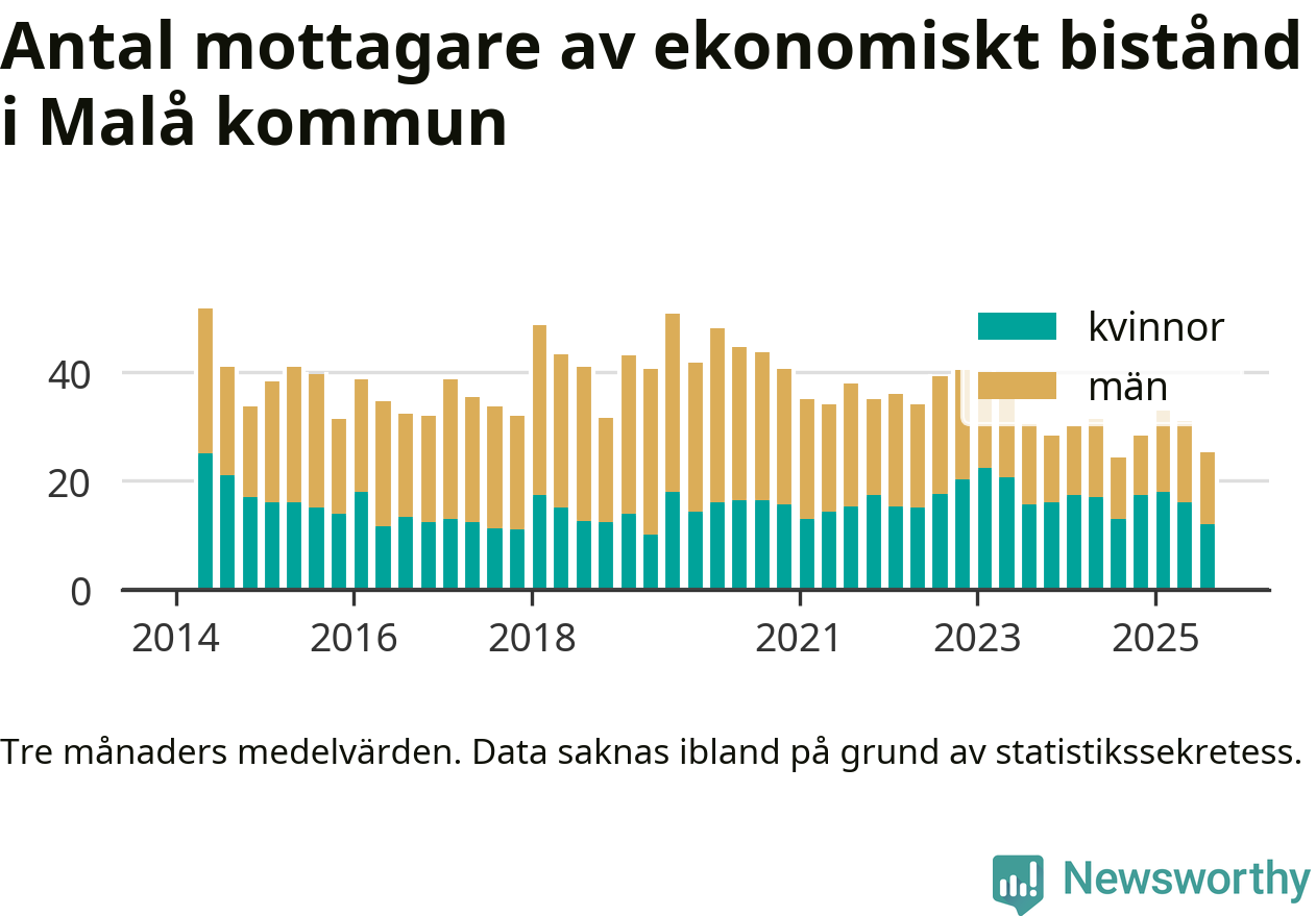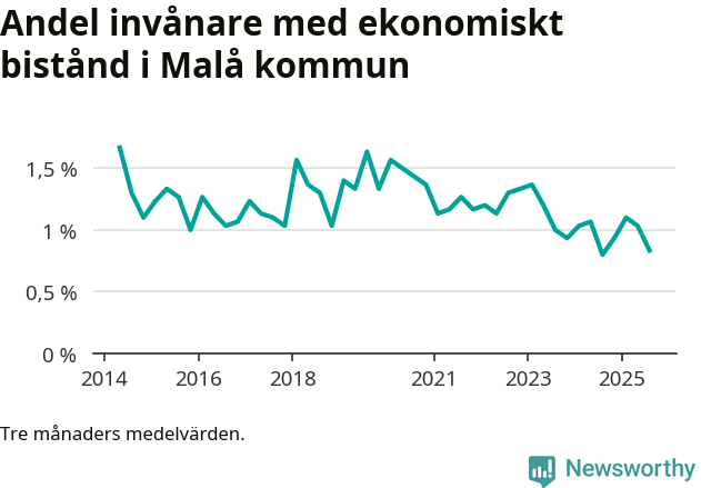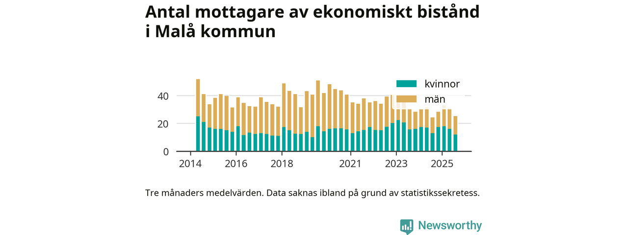 I genomsnitt 25 personer per månad fick ekonomiskt bistånd i Malå kommun