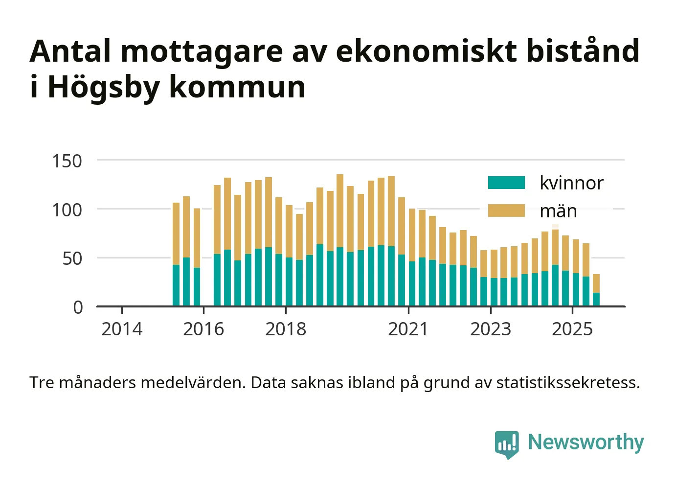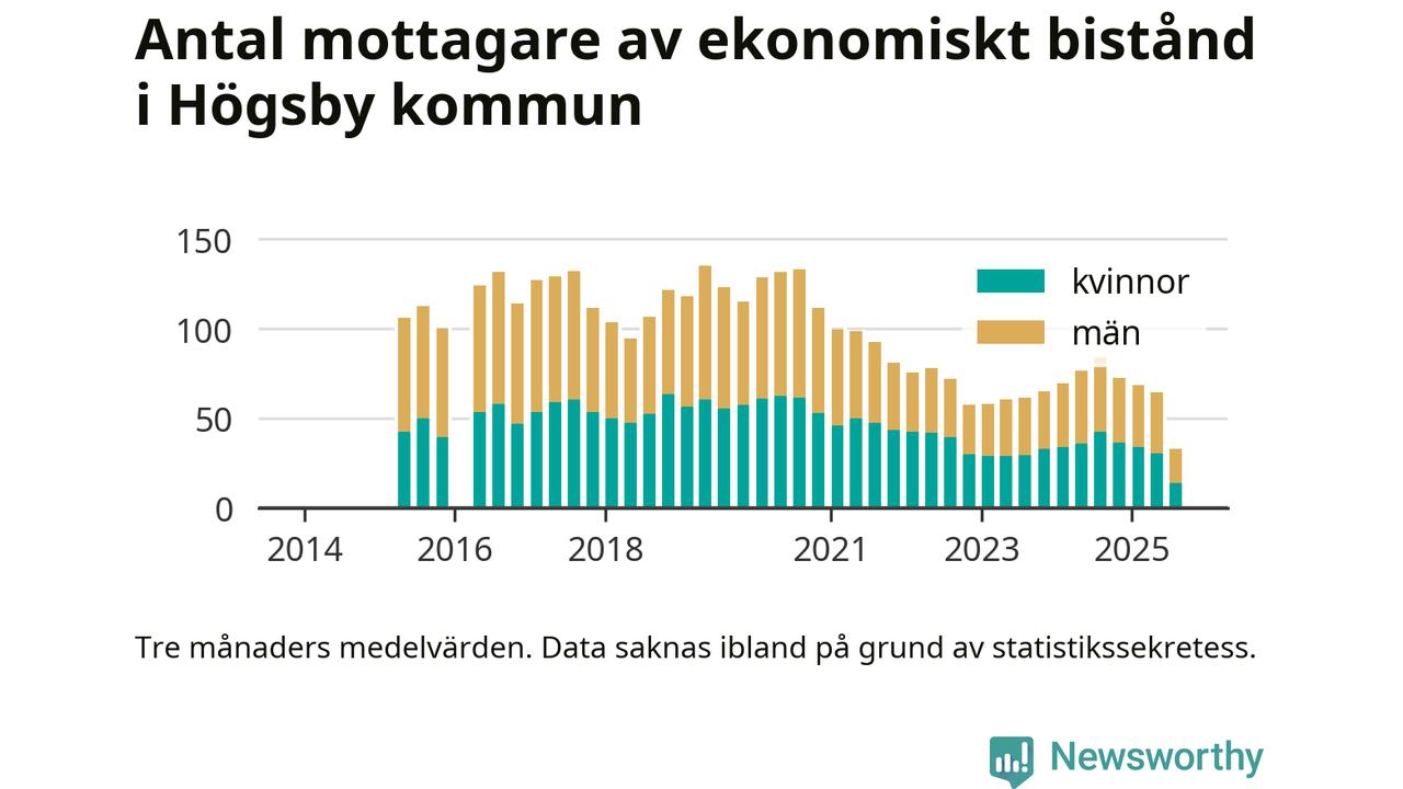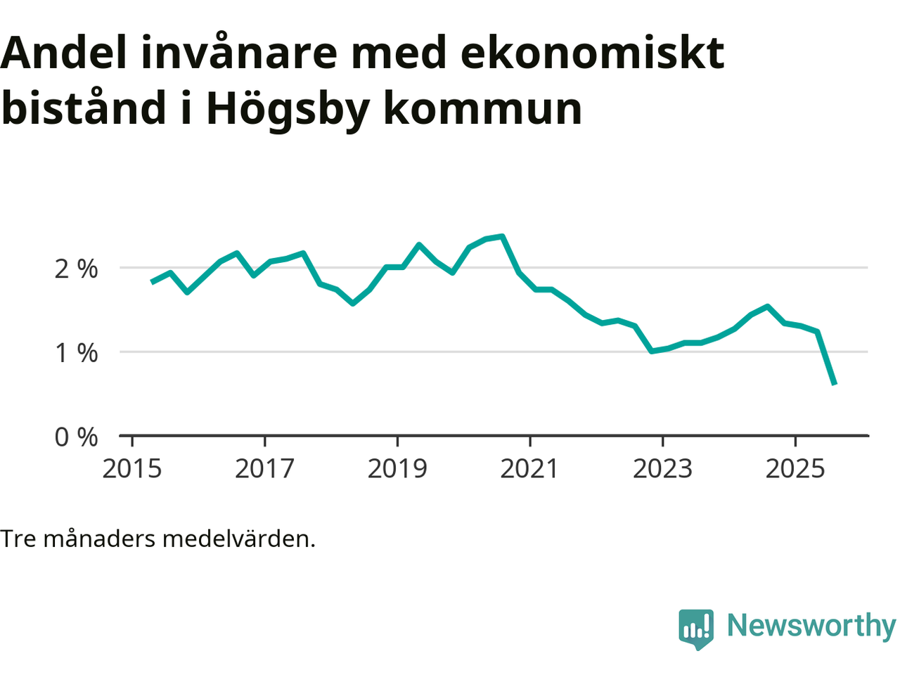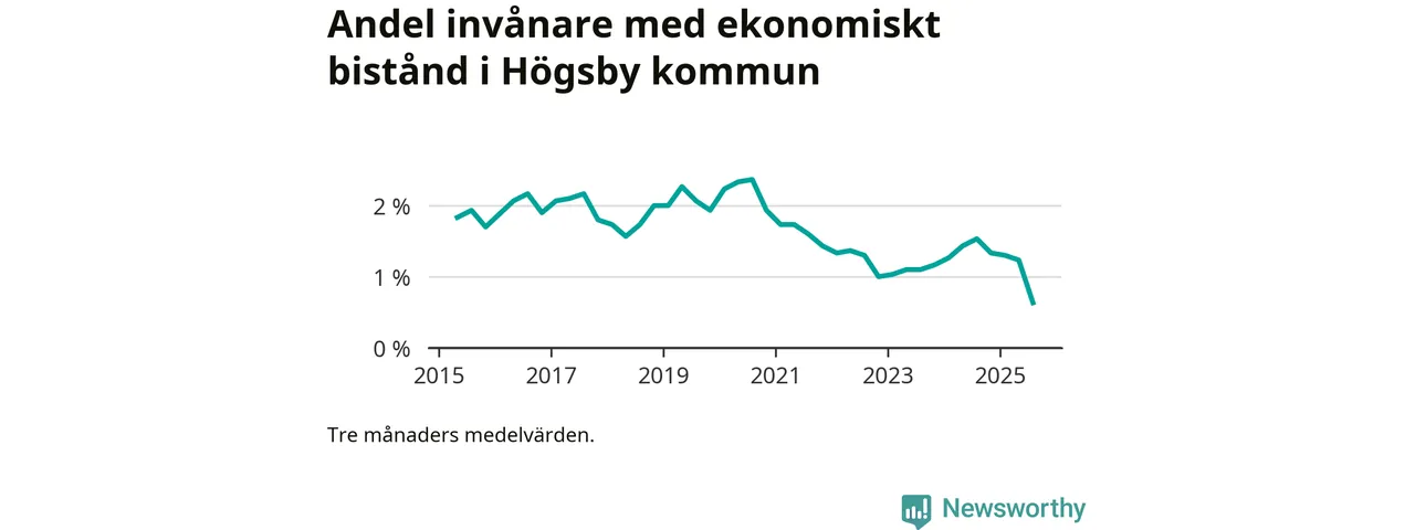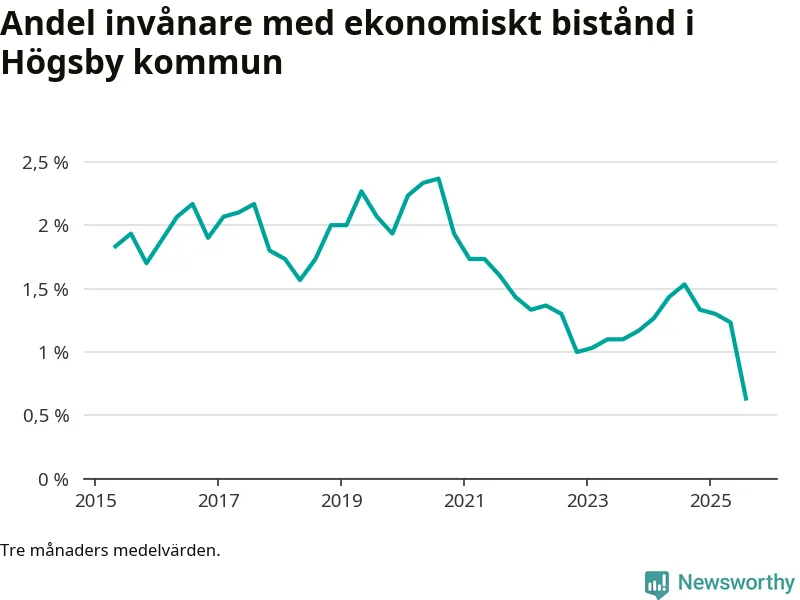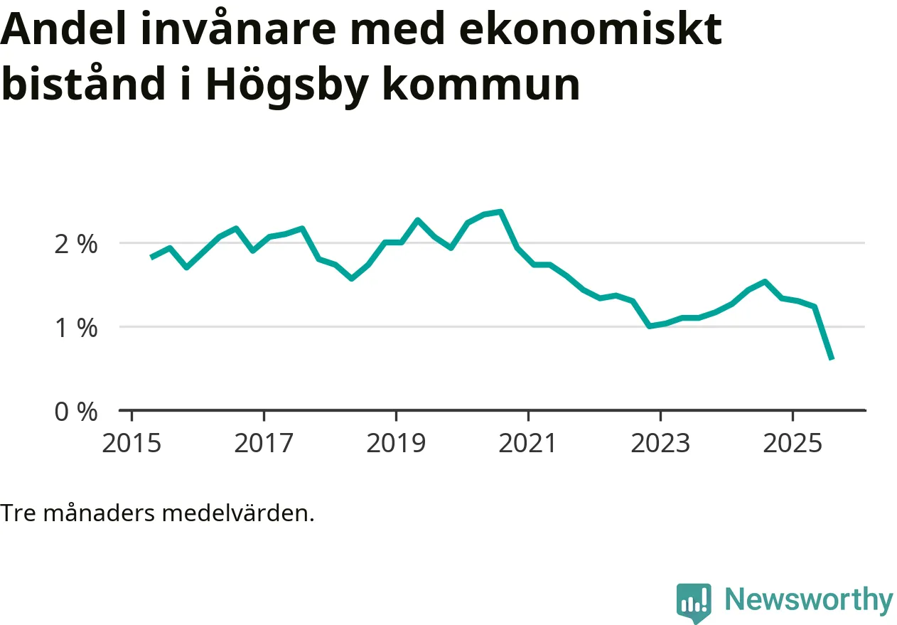 Andelen invånare med ekonomiskt bistånd i Högsby kommun var under sommaren den lägsta sedan åtminstone 2014. Det visar den senaste, preliminära statistiken från Socialstyrelsen.