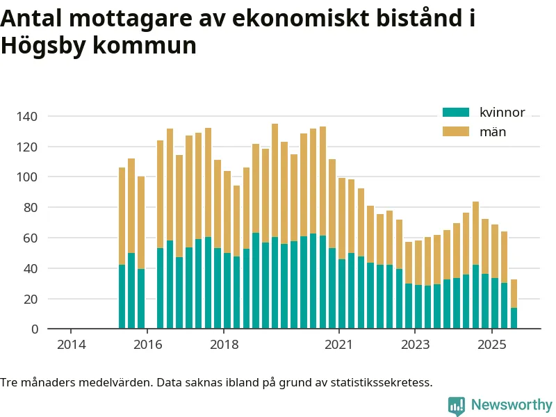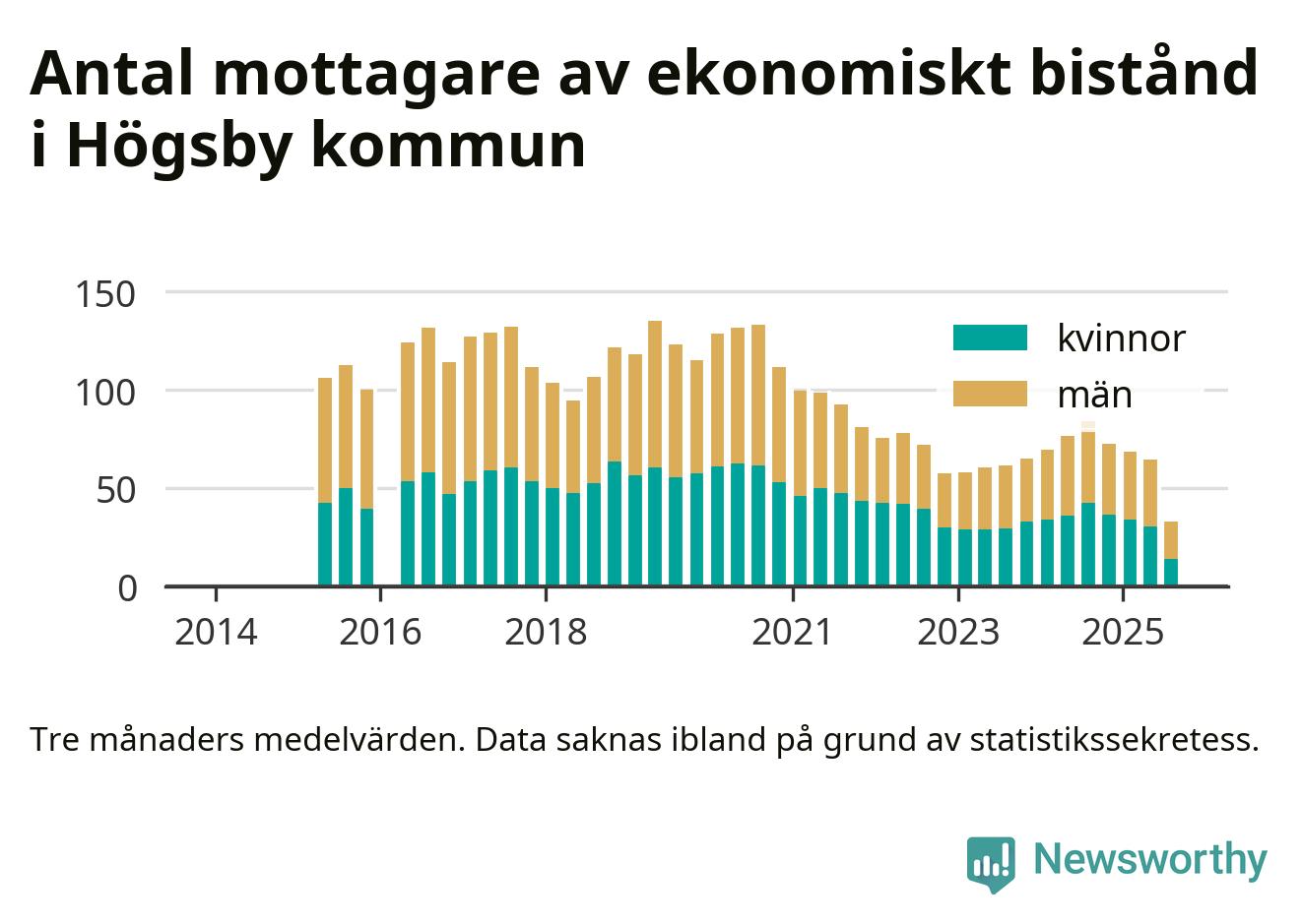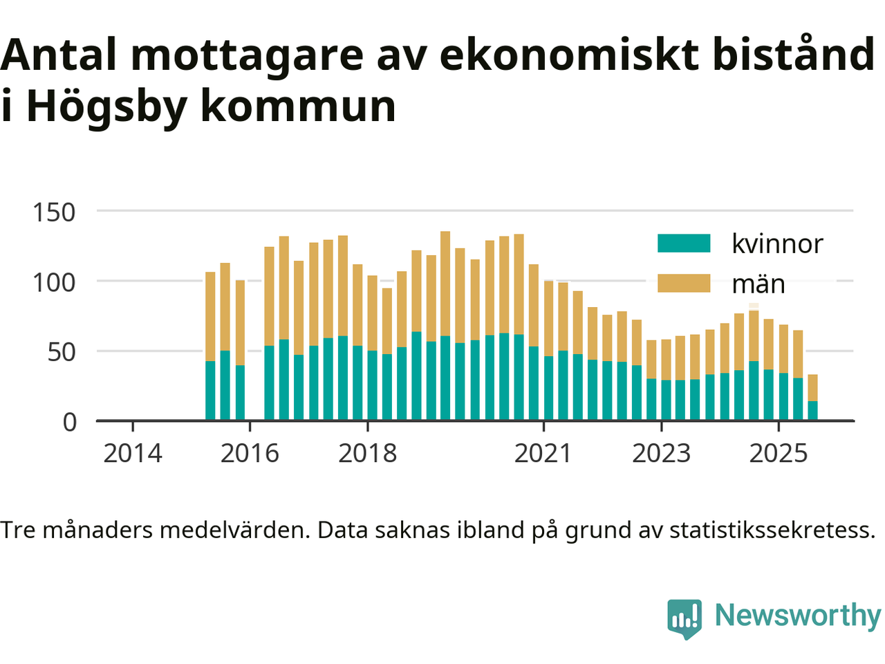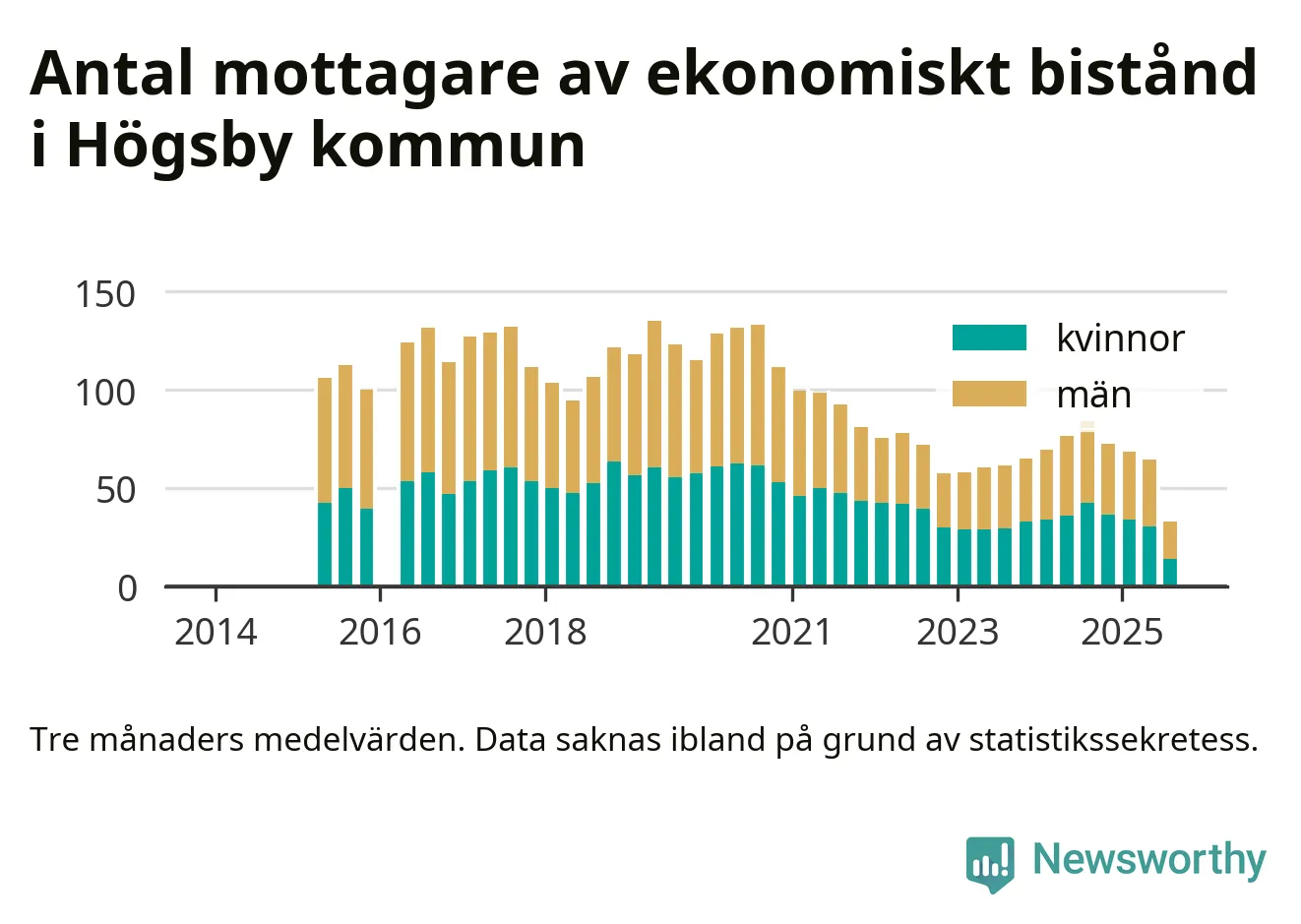 Andelen invånare med ekonomiskt bistånd i Högsby kommun var under sommaren den lägsta sedan åtminstone 2014. Det visar den senaste, preliminära statistiken från Socialstyrelsen.