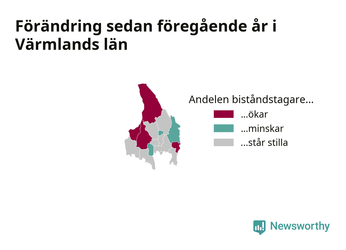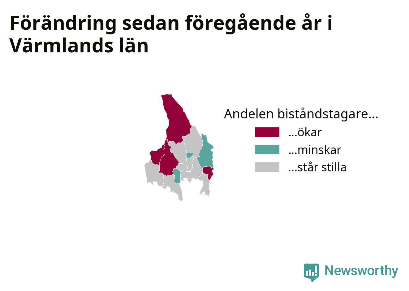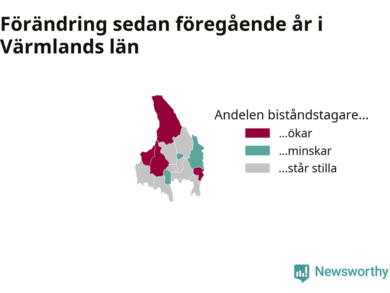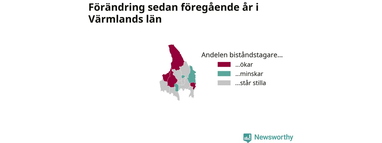 I Värmland som helhet var andelen biståndstagare 1,4 procent, vilket är ungefär samma nivå som månaden innan.