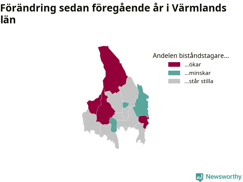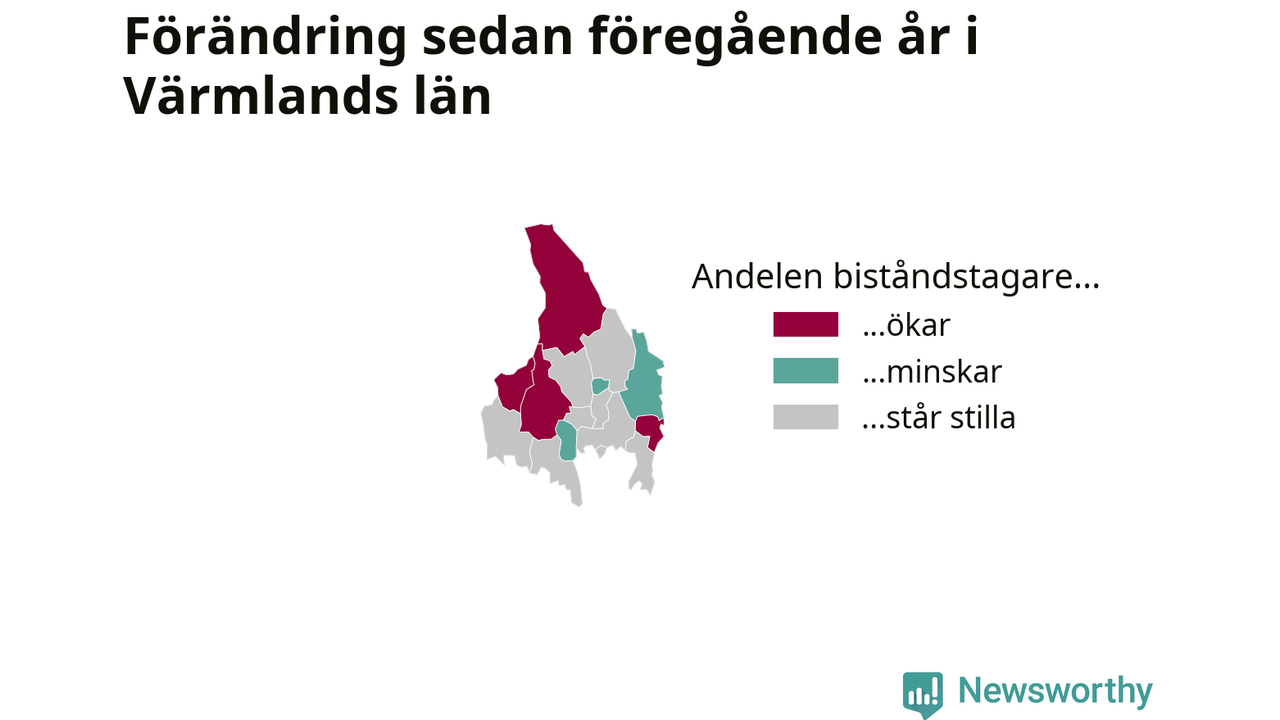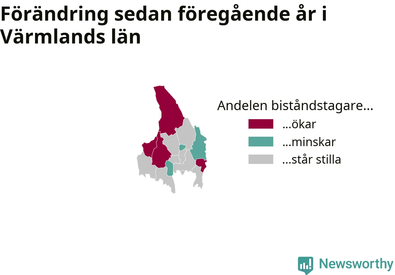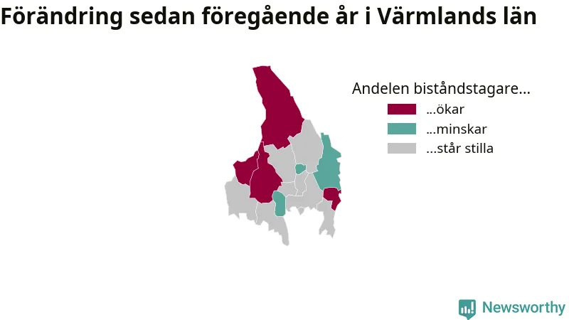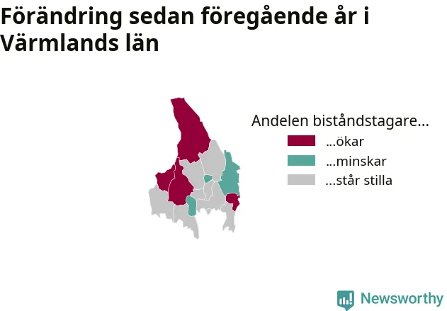 I Värmland som helhet var andelen biståndstagare 1,4 procent, vilket är ungefär samma nivå som månaden innan.