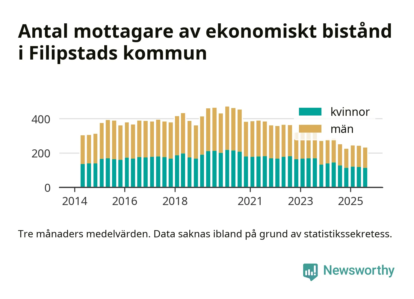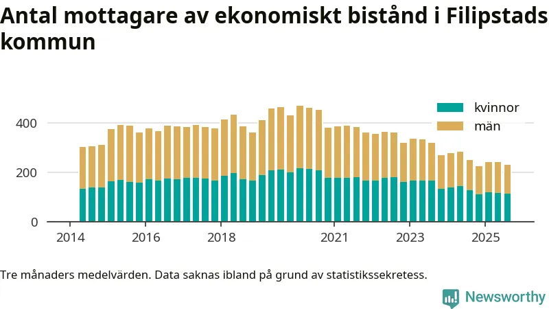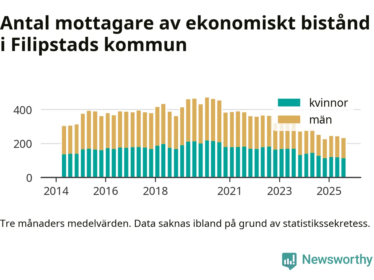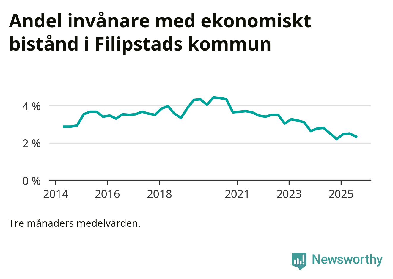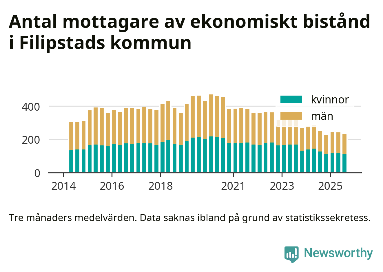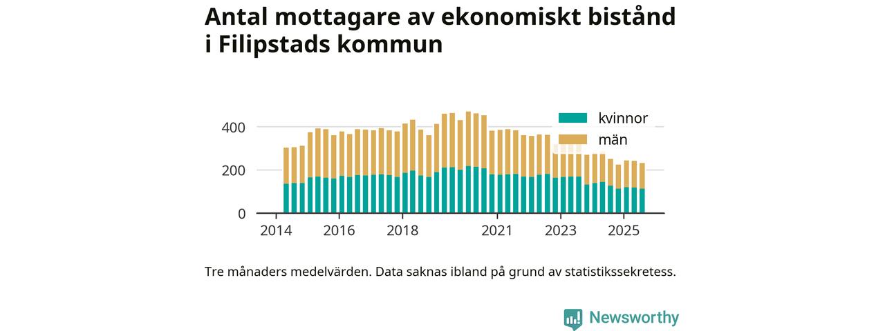 I genomsnitt 231 personer per månad fick ekonomiskt bistånd i Filipstads kommun