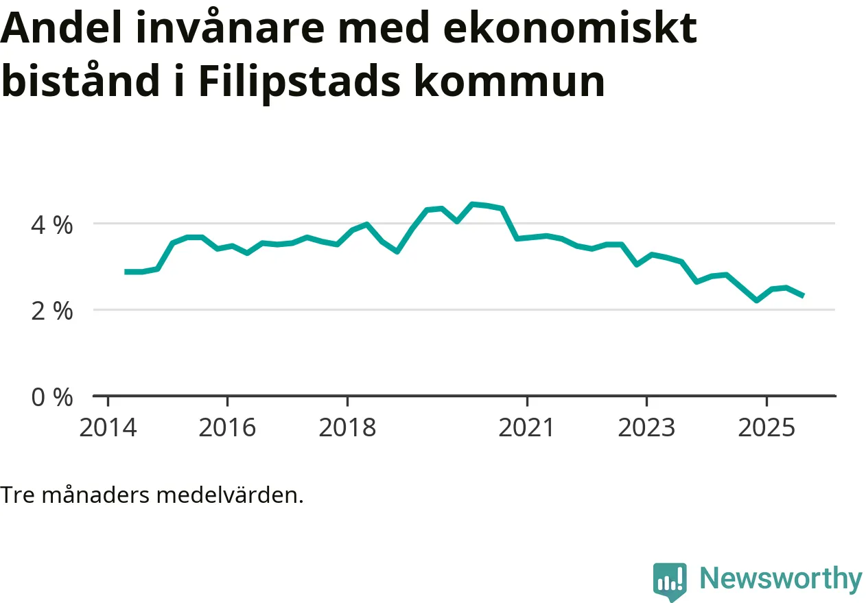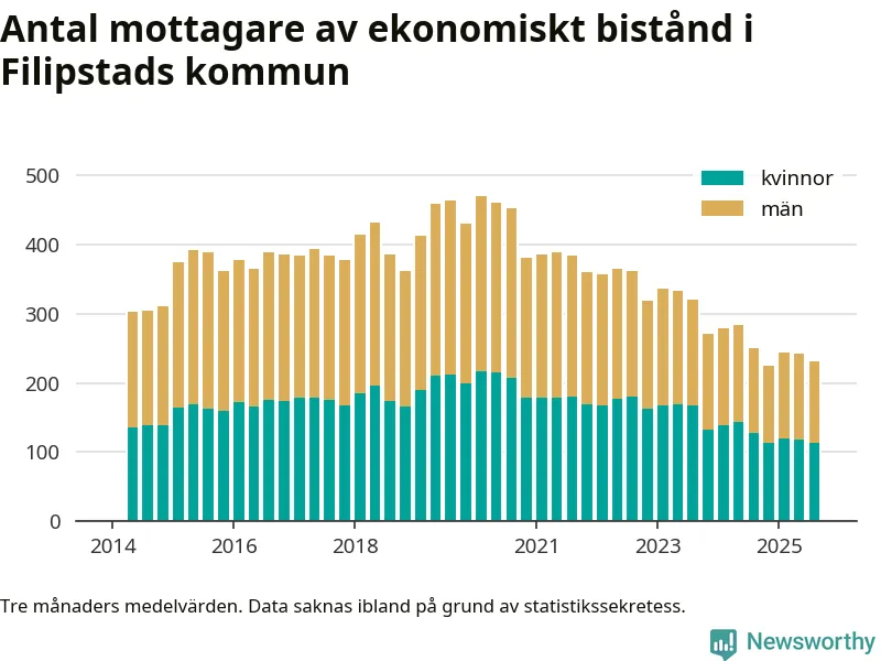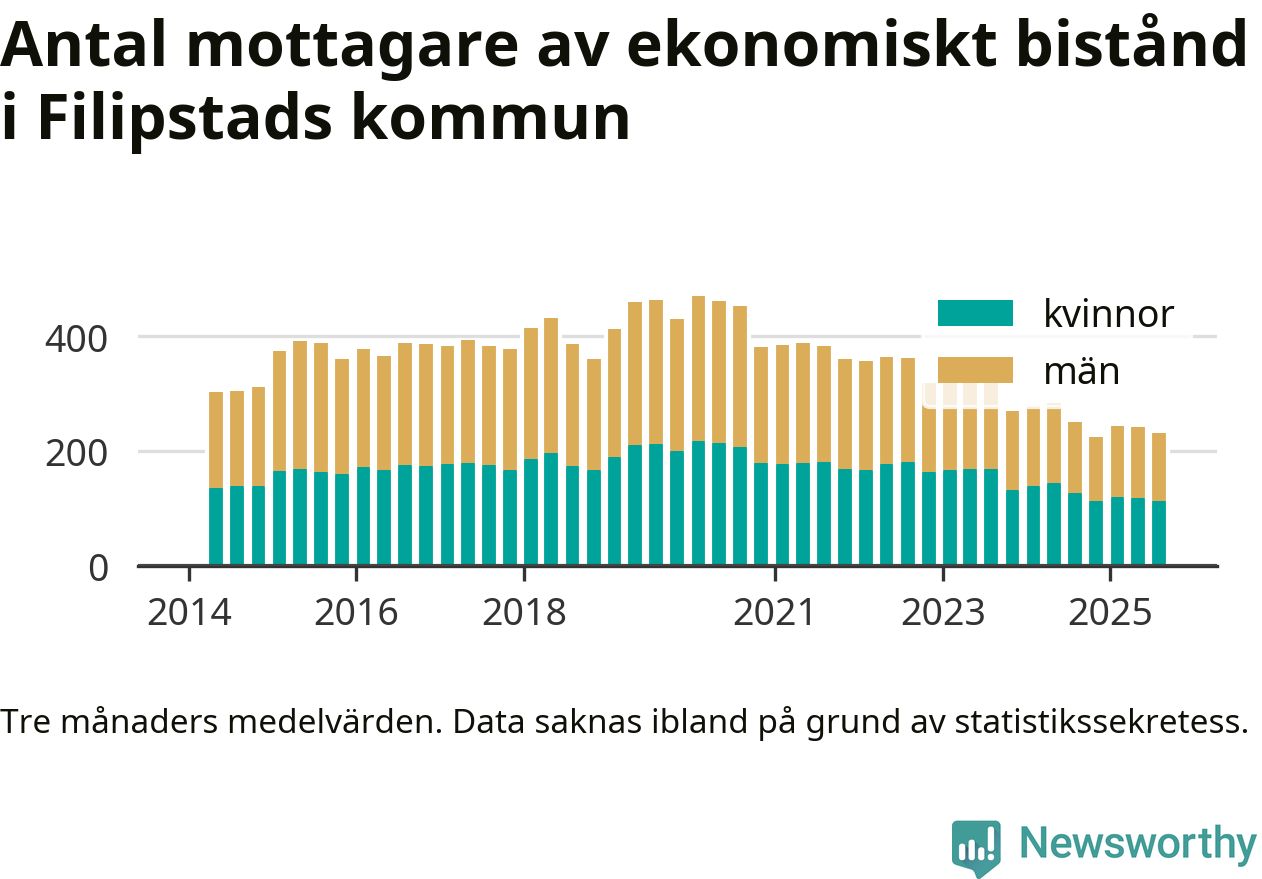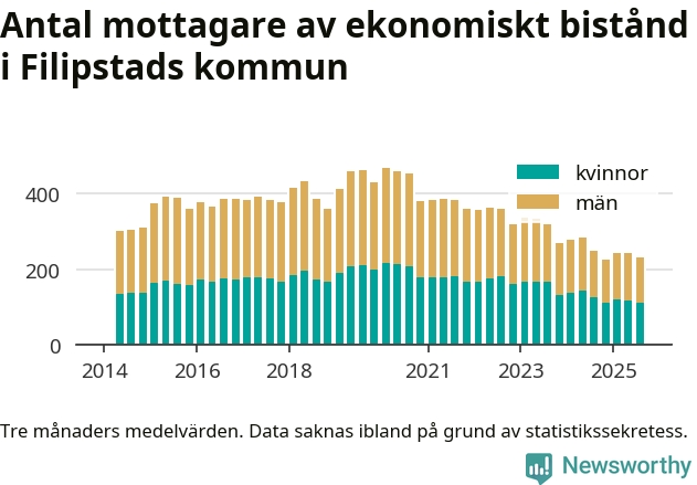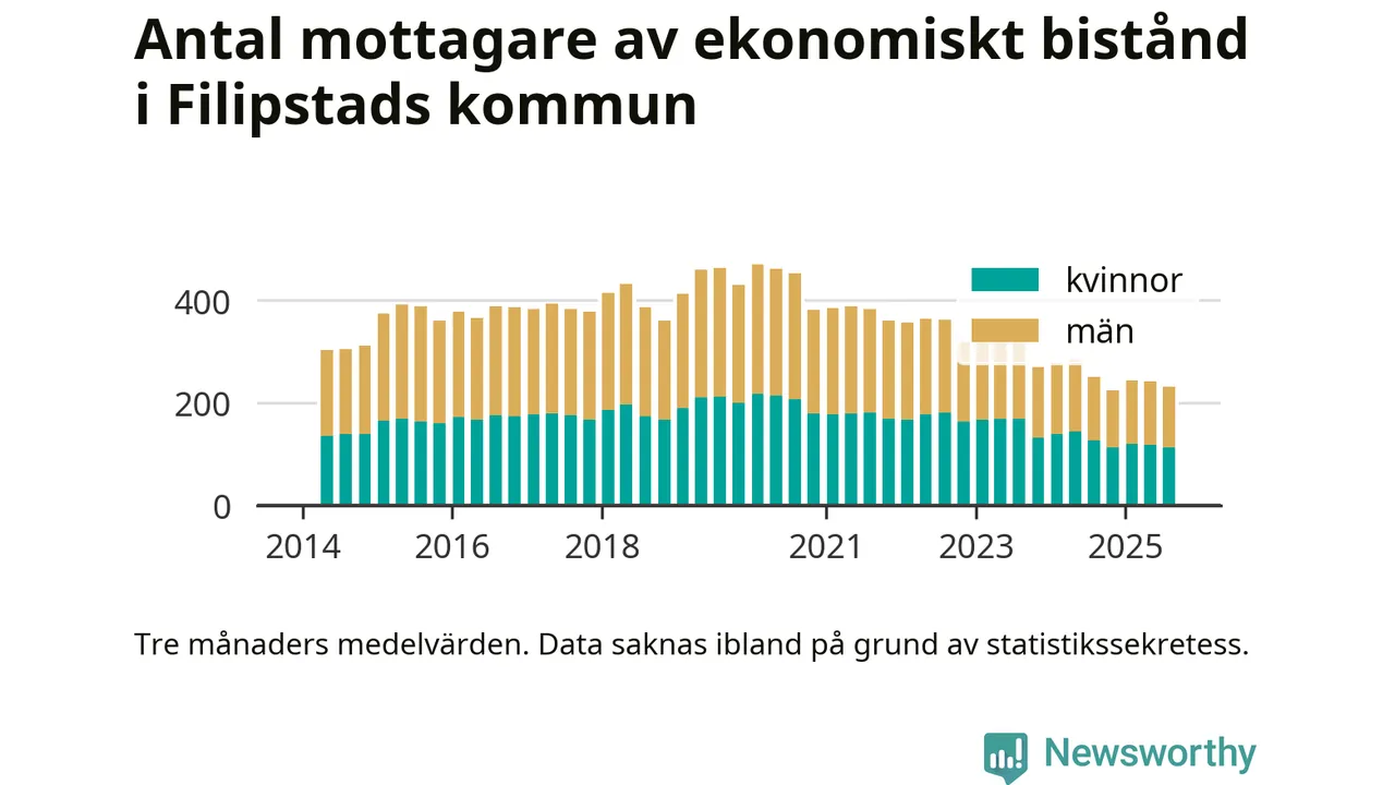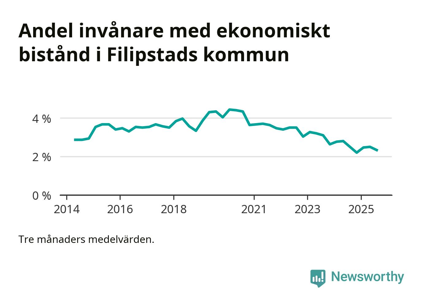 I genomsnitt 231 personer per månad fick ekonomiskt bistånd i Filipstads kommun