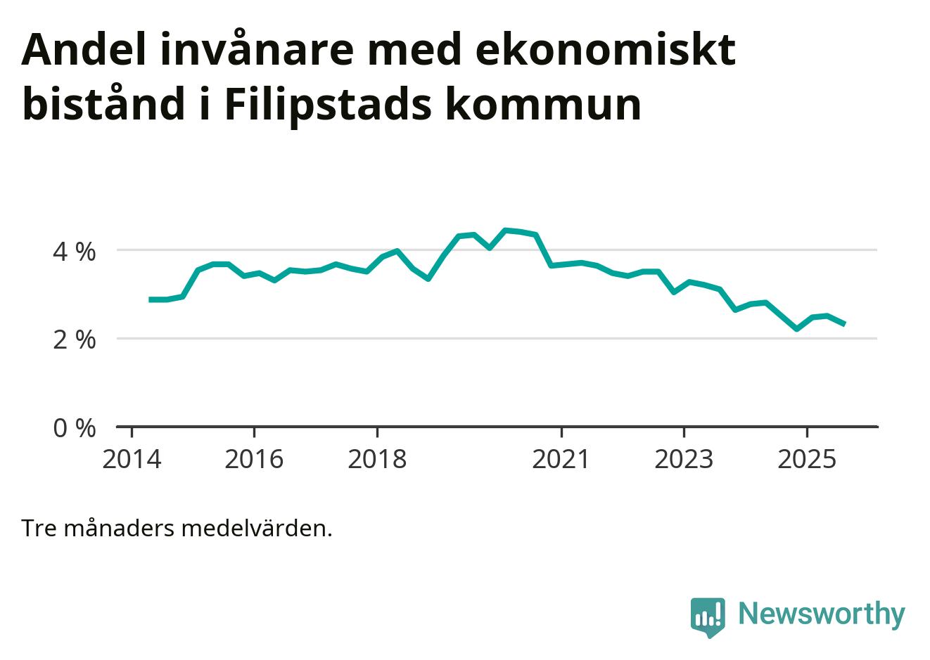 Andelen invånare med ekonomiskt bistånd i Filipstads kommun