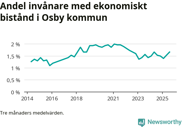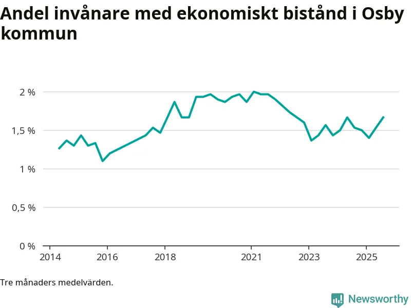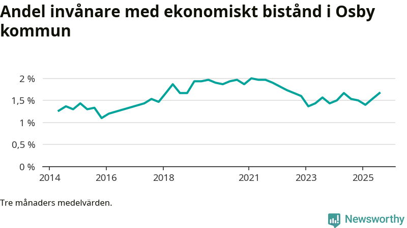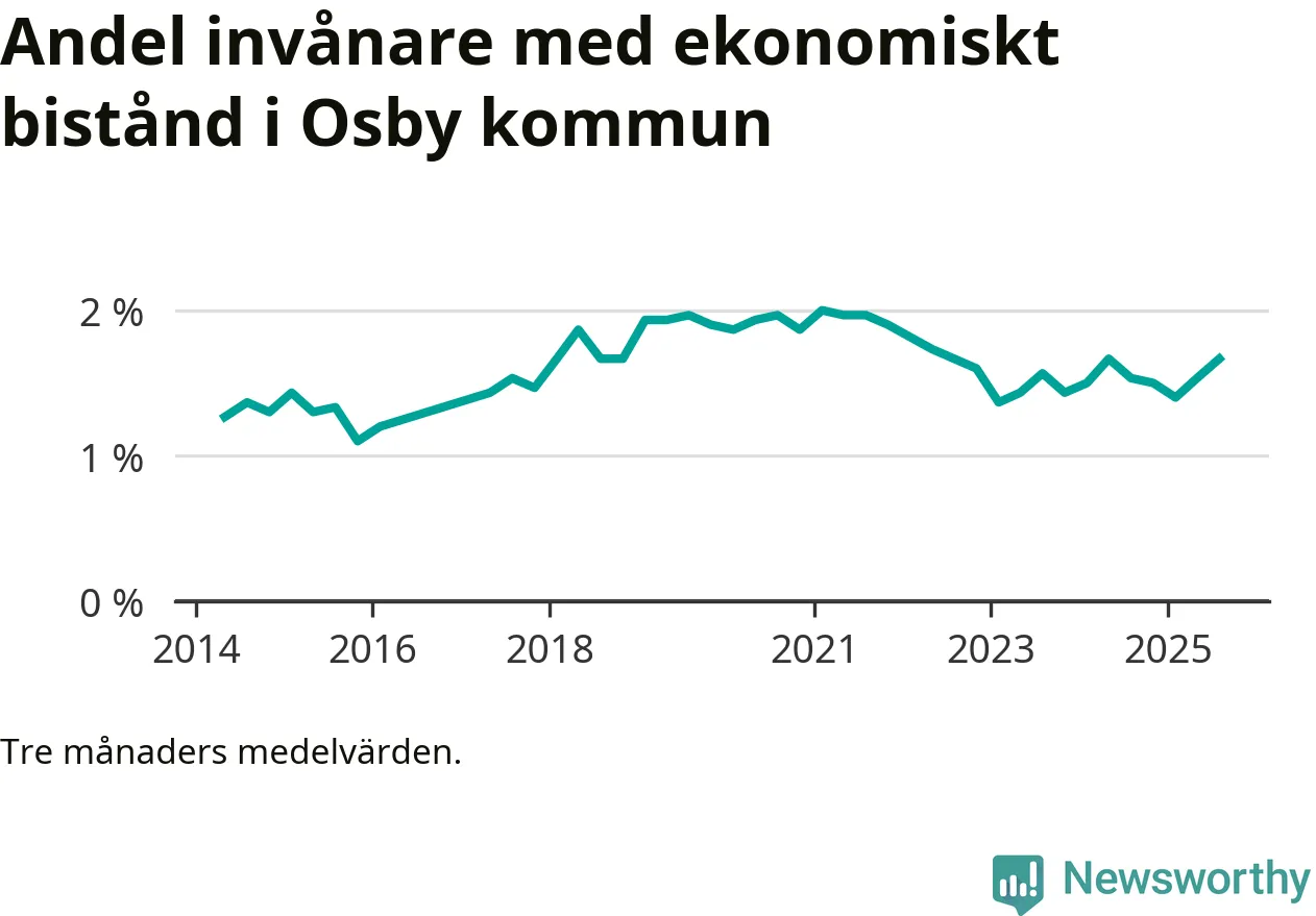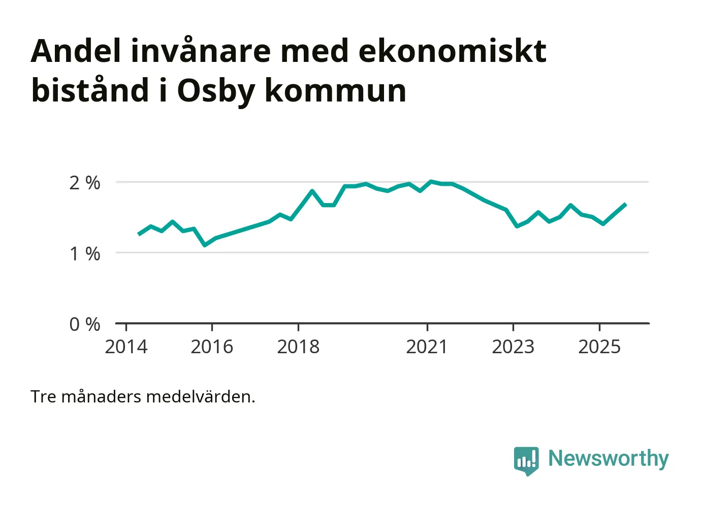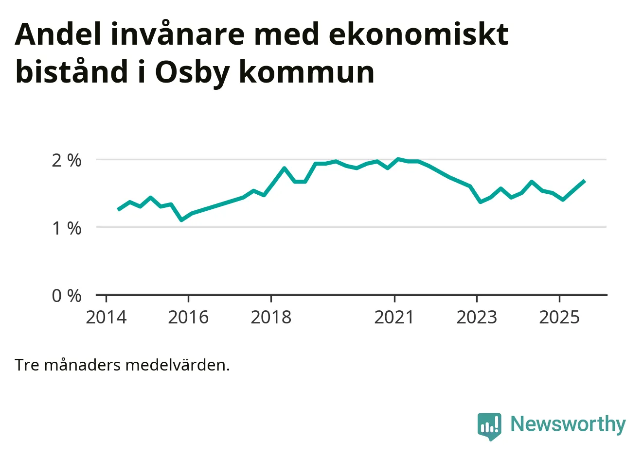 Sommarens 1,7 procent är den högsta andelen biståndstagare i kommunen sedan hösten 2021.