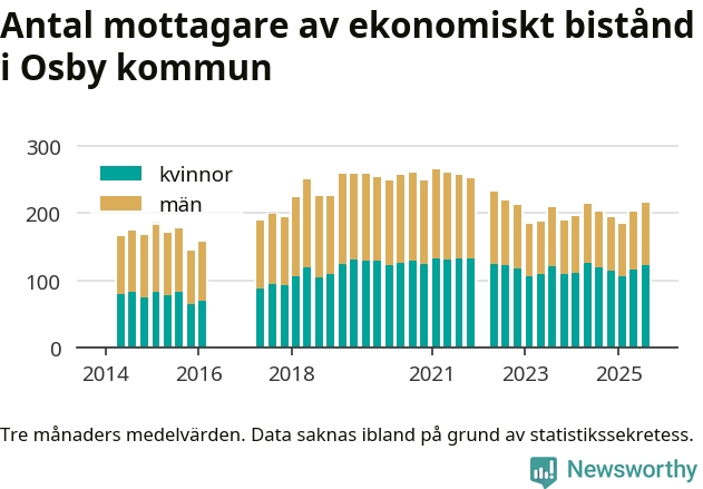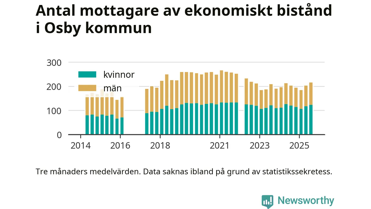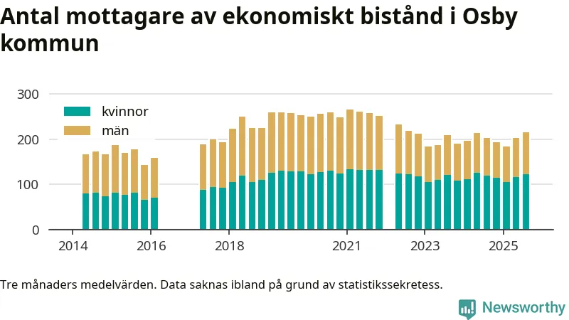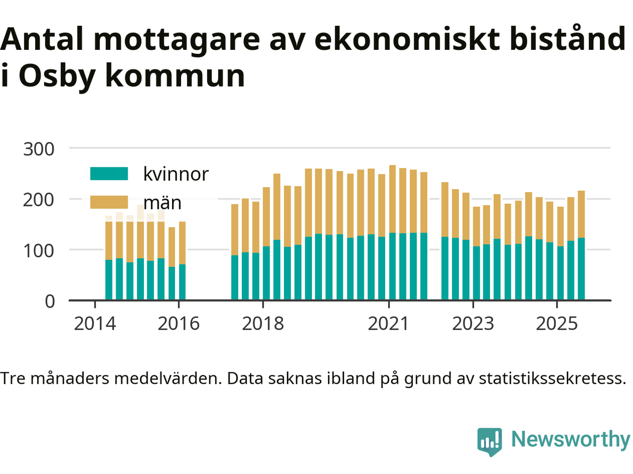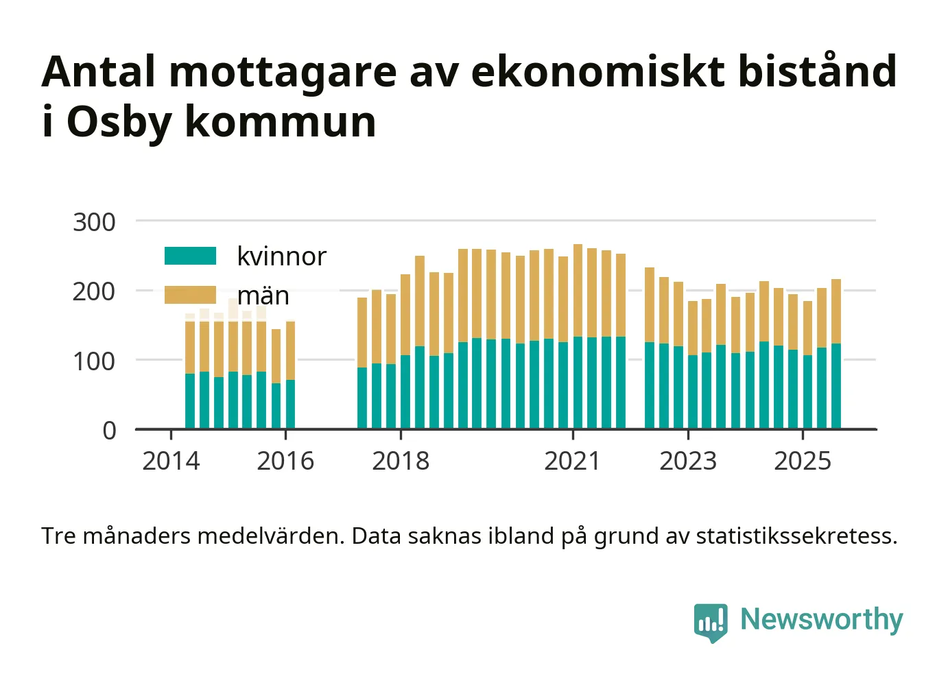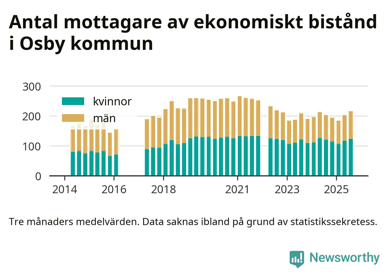 Andelen invånare med ekonomiskt bistånd i Osby kommun var högre under sommaren än under tremånadersperioden innan. Det visar den senaste, preliminära statistiken från Socialstyrelsen.