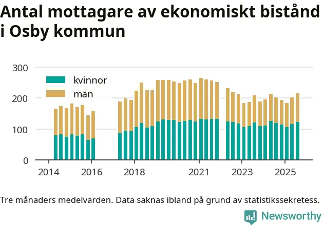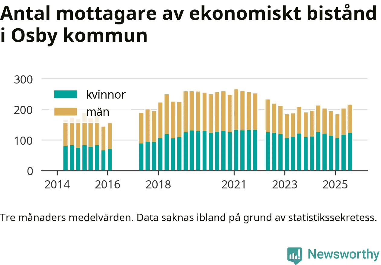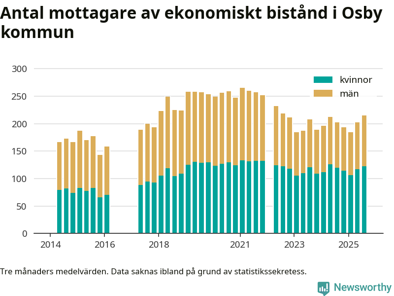 En majoritet av biståndstagarna var kvinnor: I genomsnitt 93 män och 123 kvinnor fick ekonomiskt bistånd varje månad under sommaren.