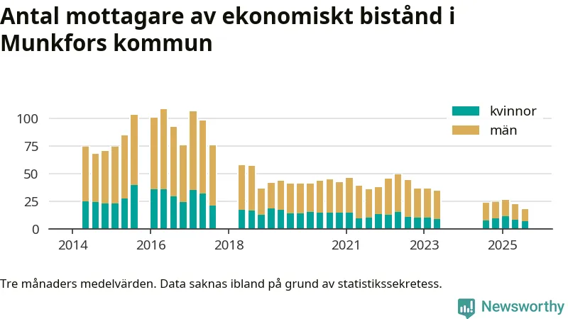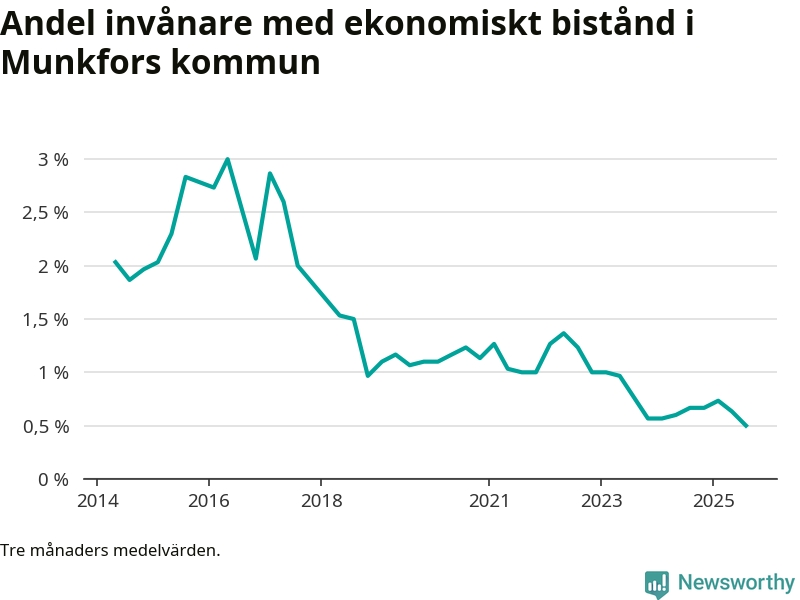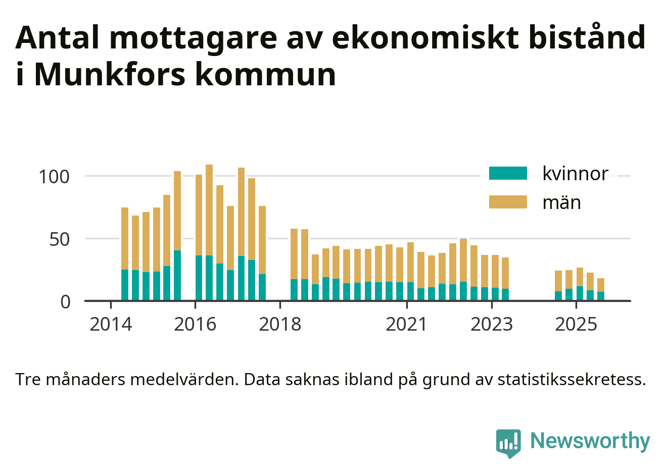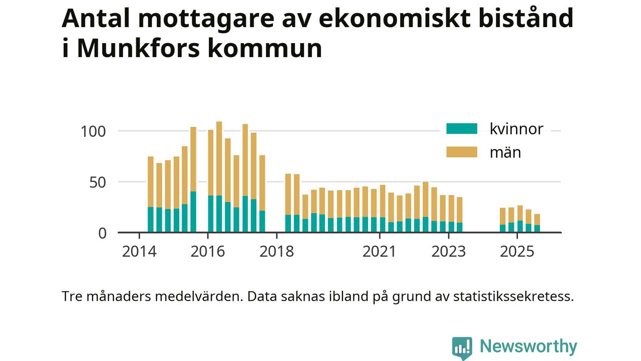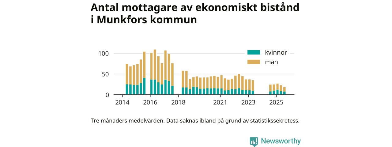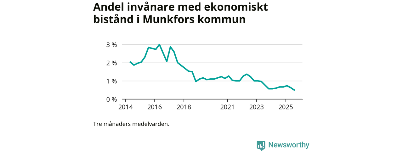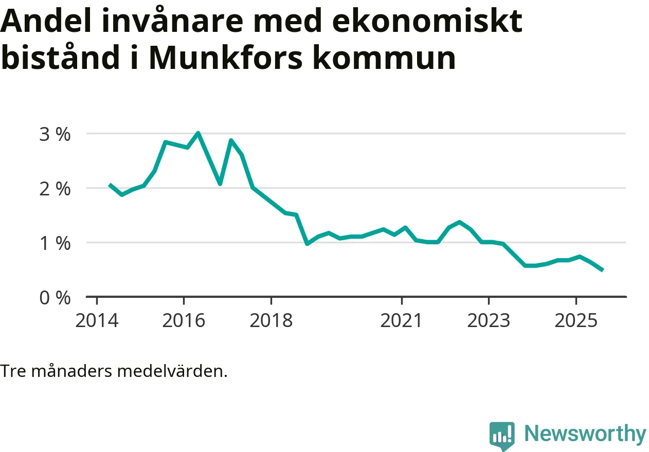 Andelen invånare med ekonomiskt bistånd i Munkfors kommun var under sommaren den lägsta sedan åtminstone 2014. Det visar den senaste, preliminära statistiken från Socialstyrelsen.