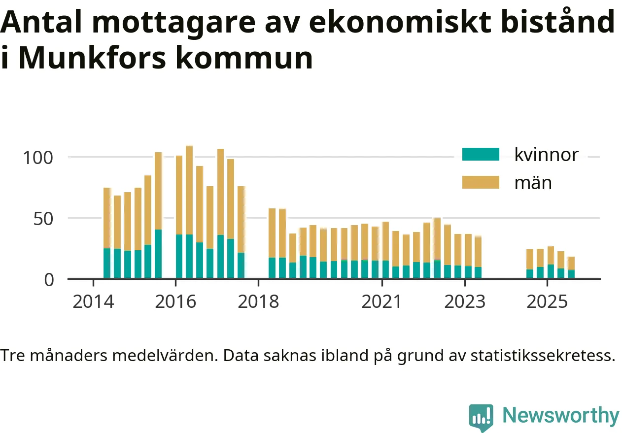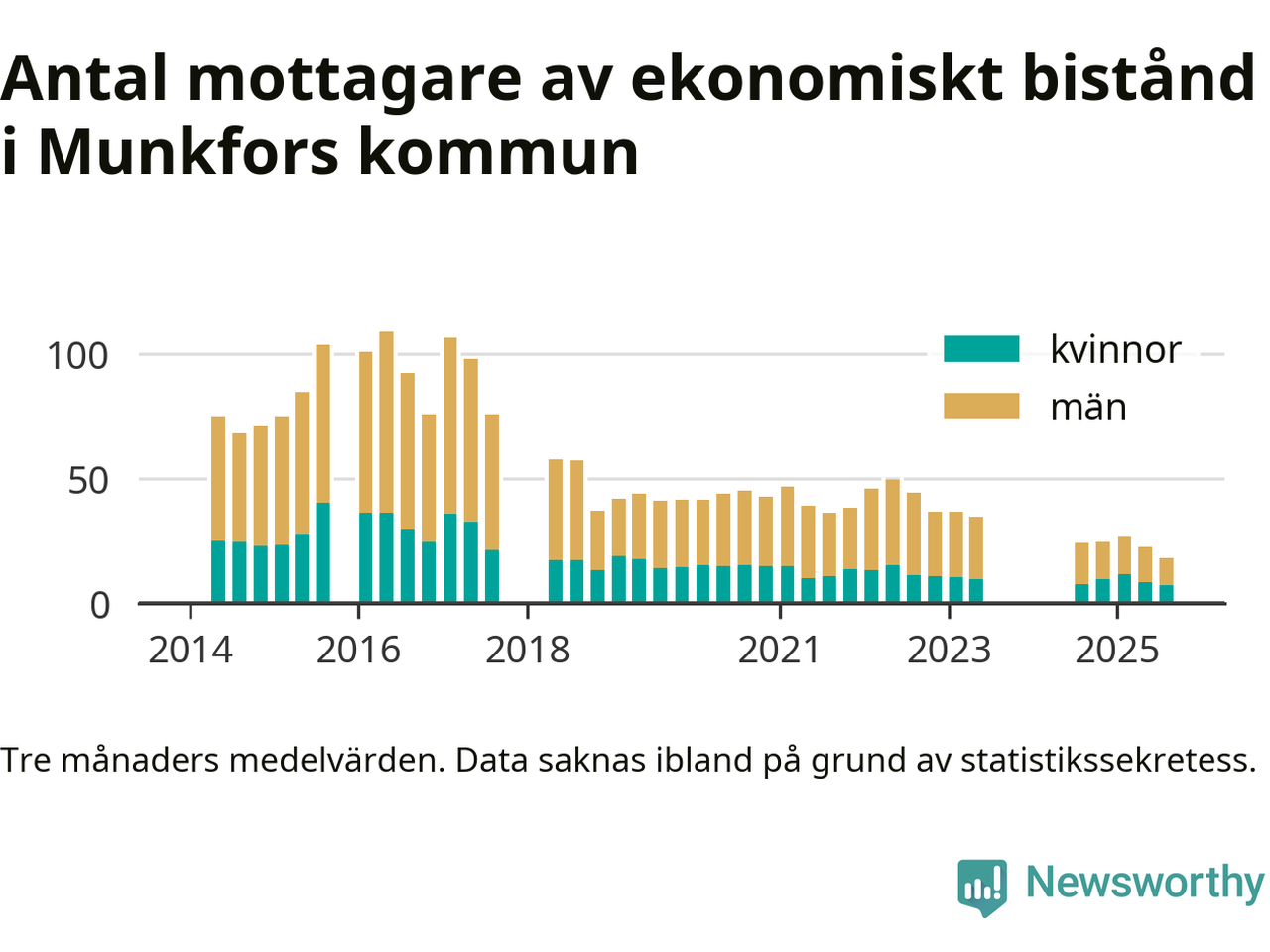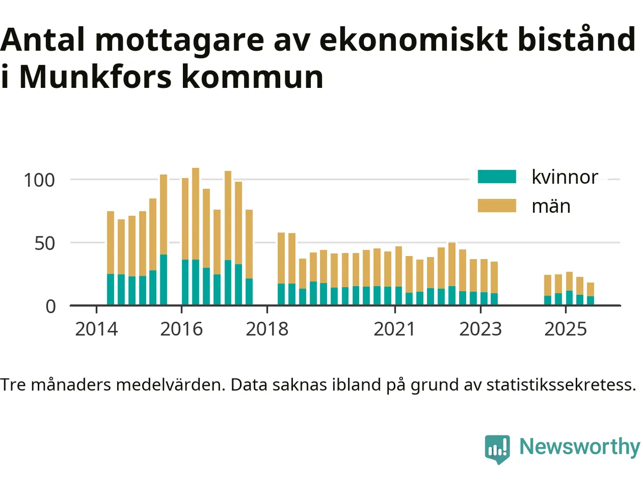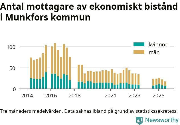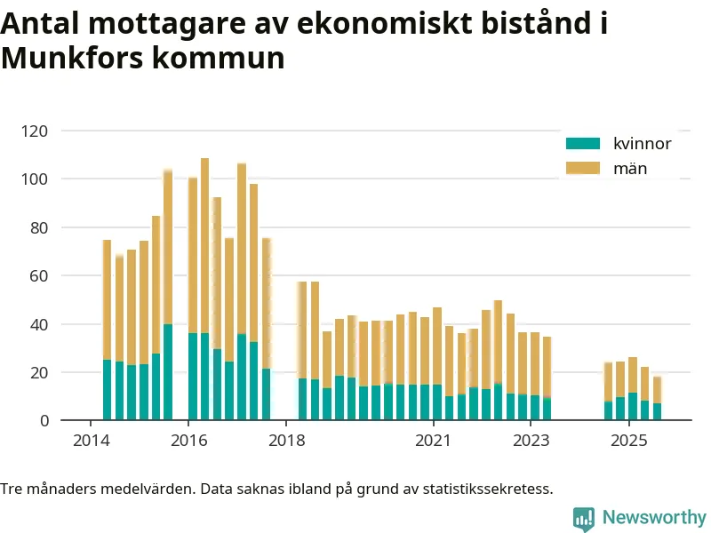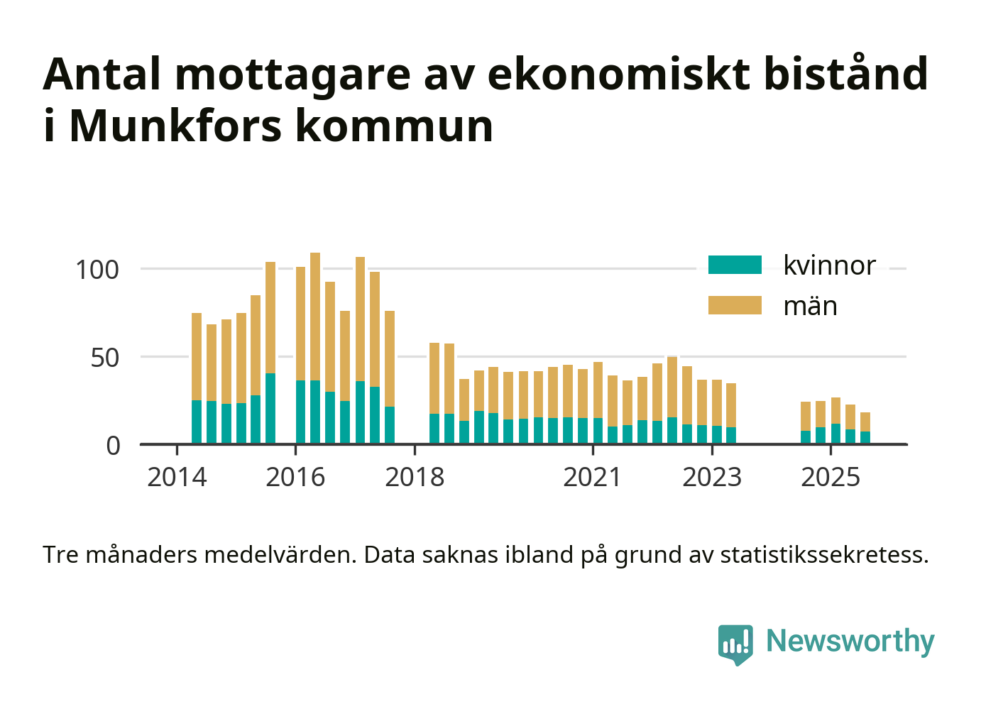Andelen invånare med ekonomiskt bistånd i Munkfors kommun var under sommaren den lägsta sedan åtminstone 2014. Det visar den senaste, preliminära statistiken från Socialstyrelsen.
