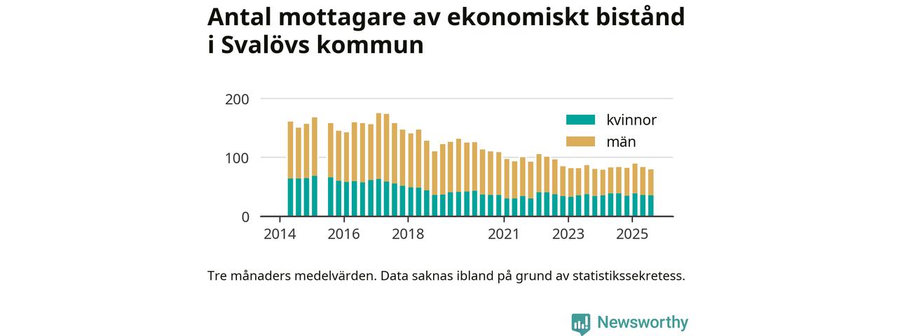 I genomsnitt 80 personer per månad fick ekonomiskt bistånd i Svalövs kommun under sommarmånaderna (juni till augusti), vilket motsvarar 0,5 procent av den vuxna befolkningen. Det är marginellt mindre än i våras, och något mindre andel än under sommaren för ett år sedan.