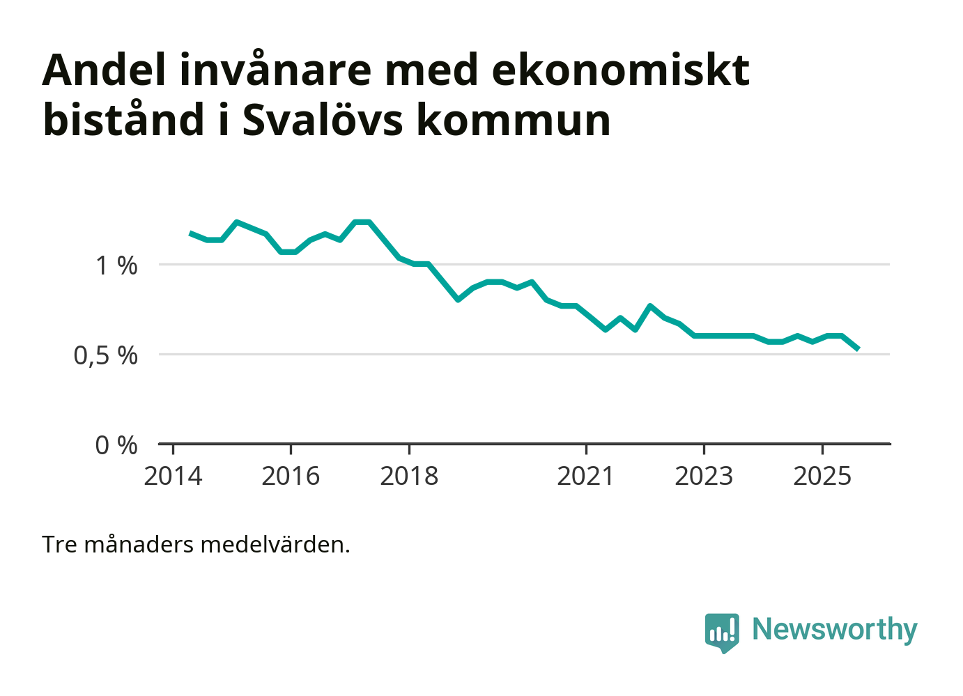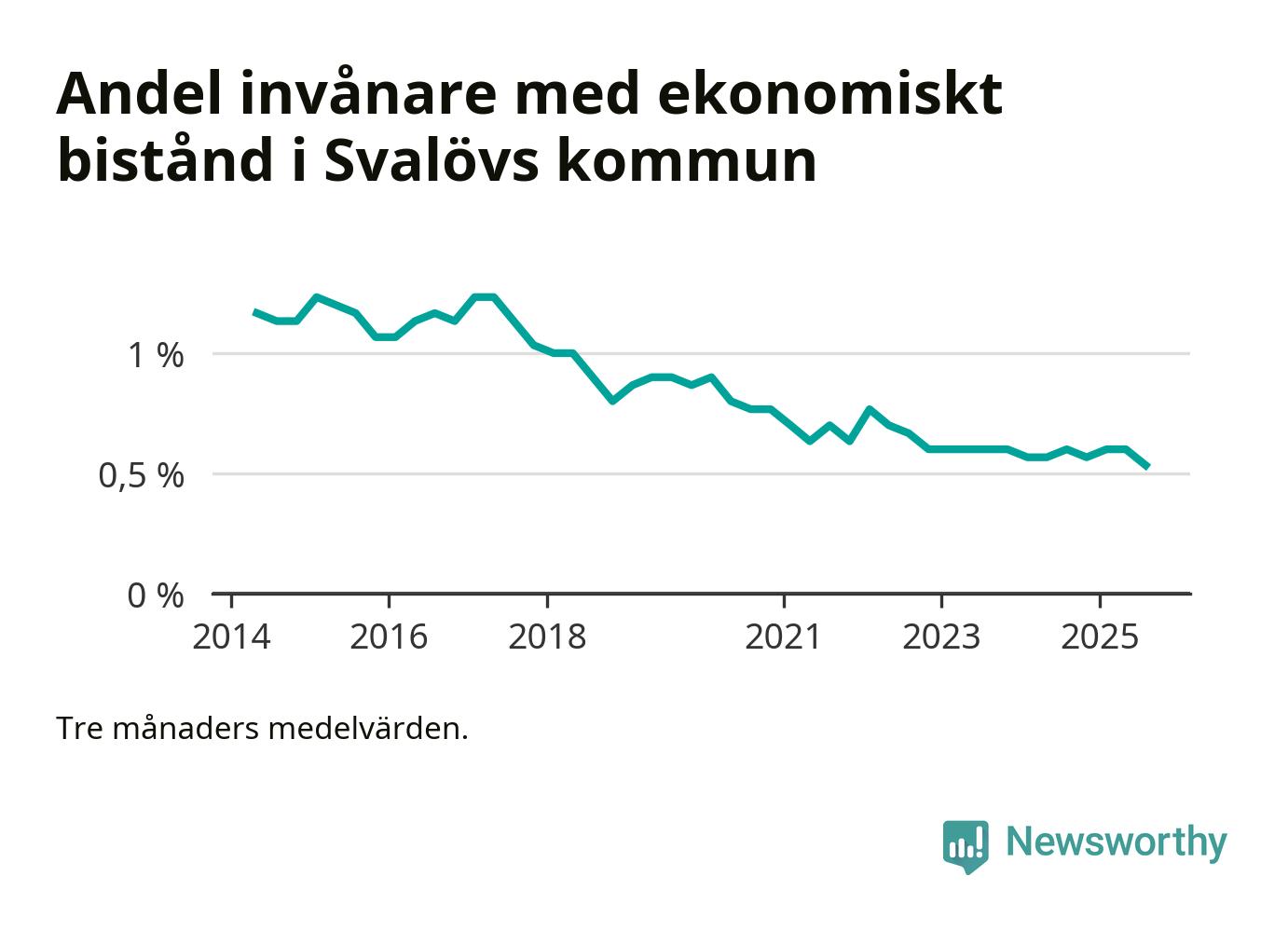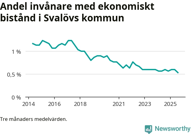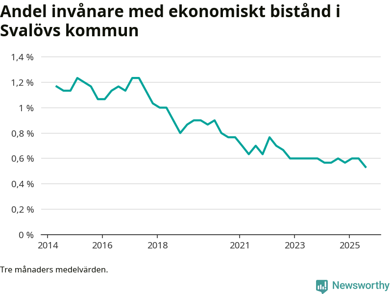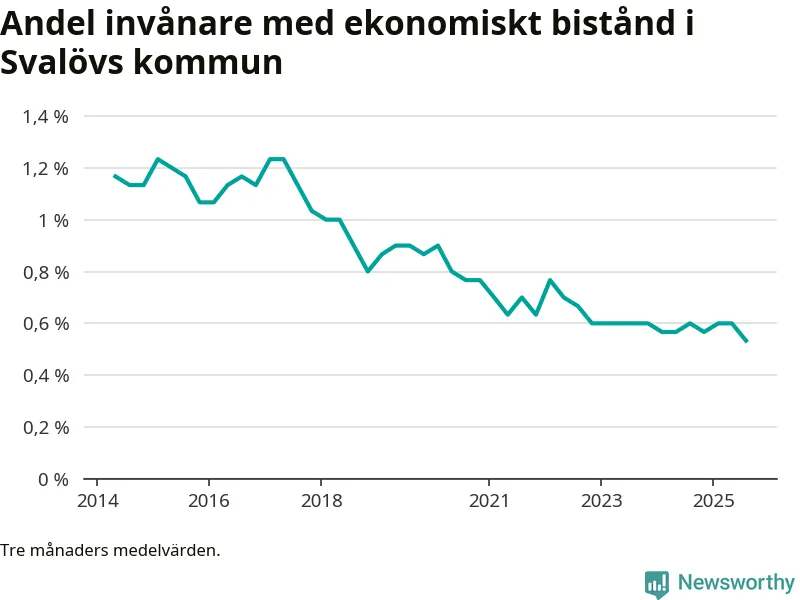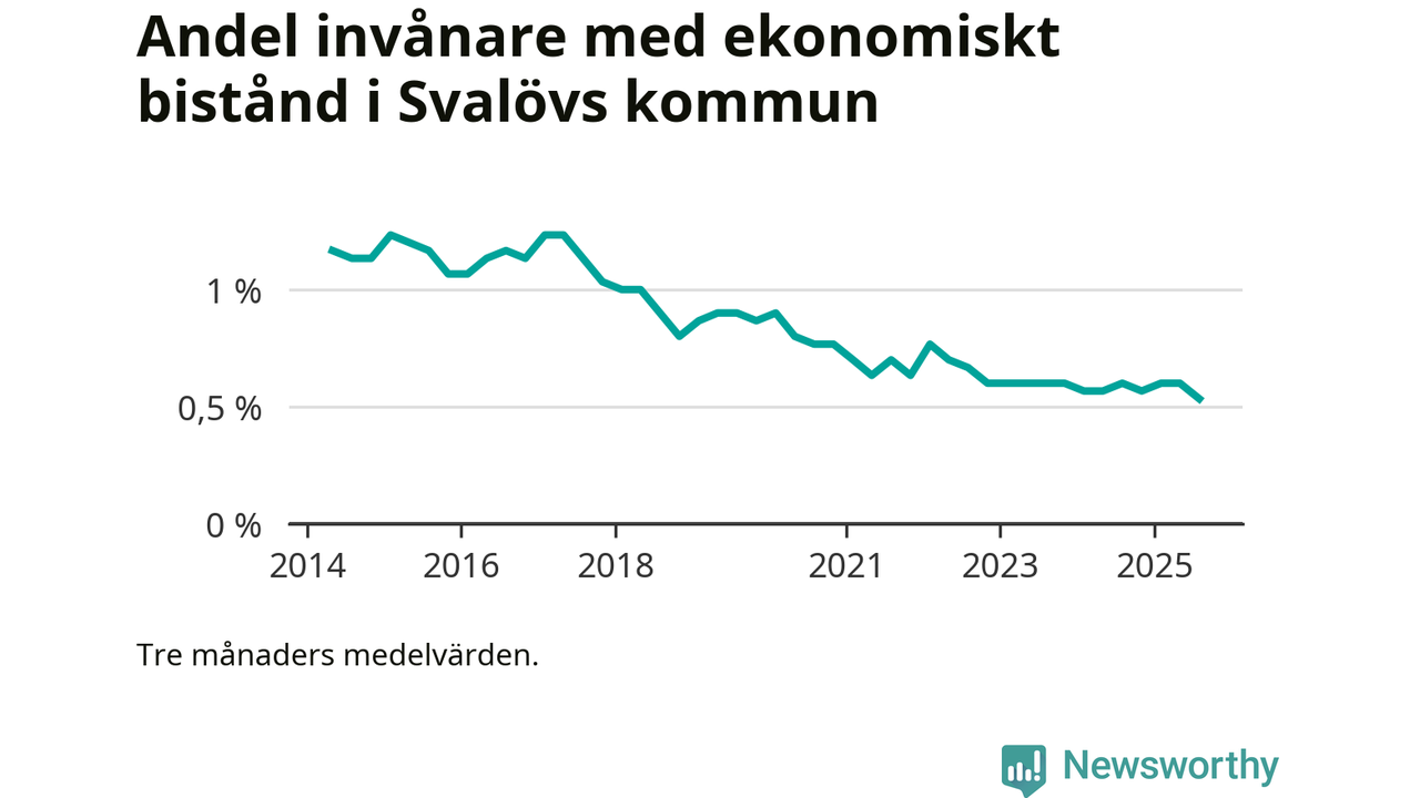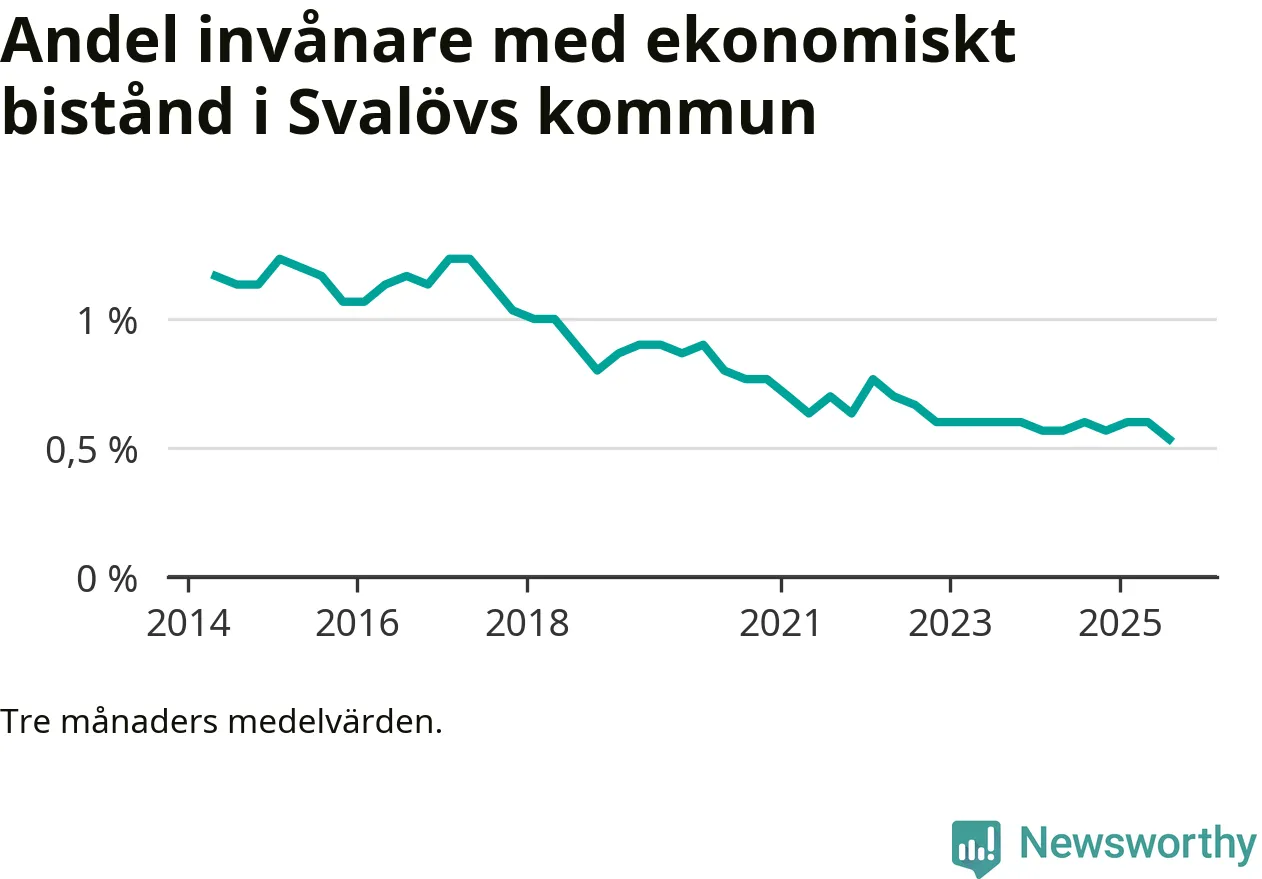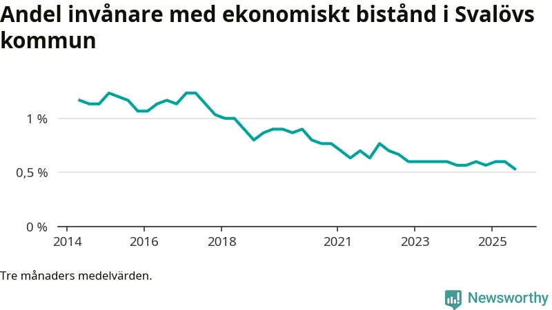 Andelen invånare med ekonomiskt bistånd i Svalövs kommun var under sommaren den lägsta sedan åtminstone 2014. Det visar den senaste, preliminära statistiken från Socialstyrelsen.