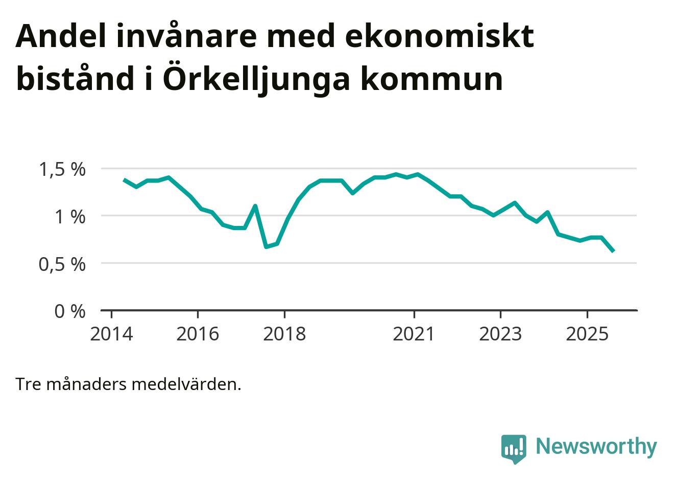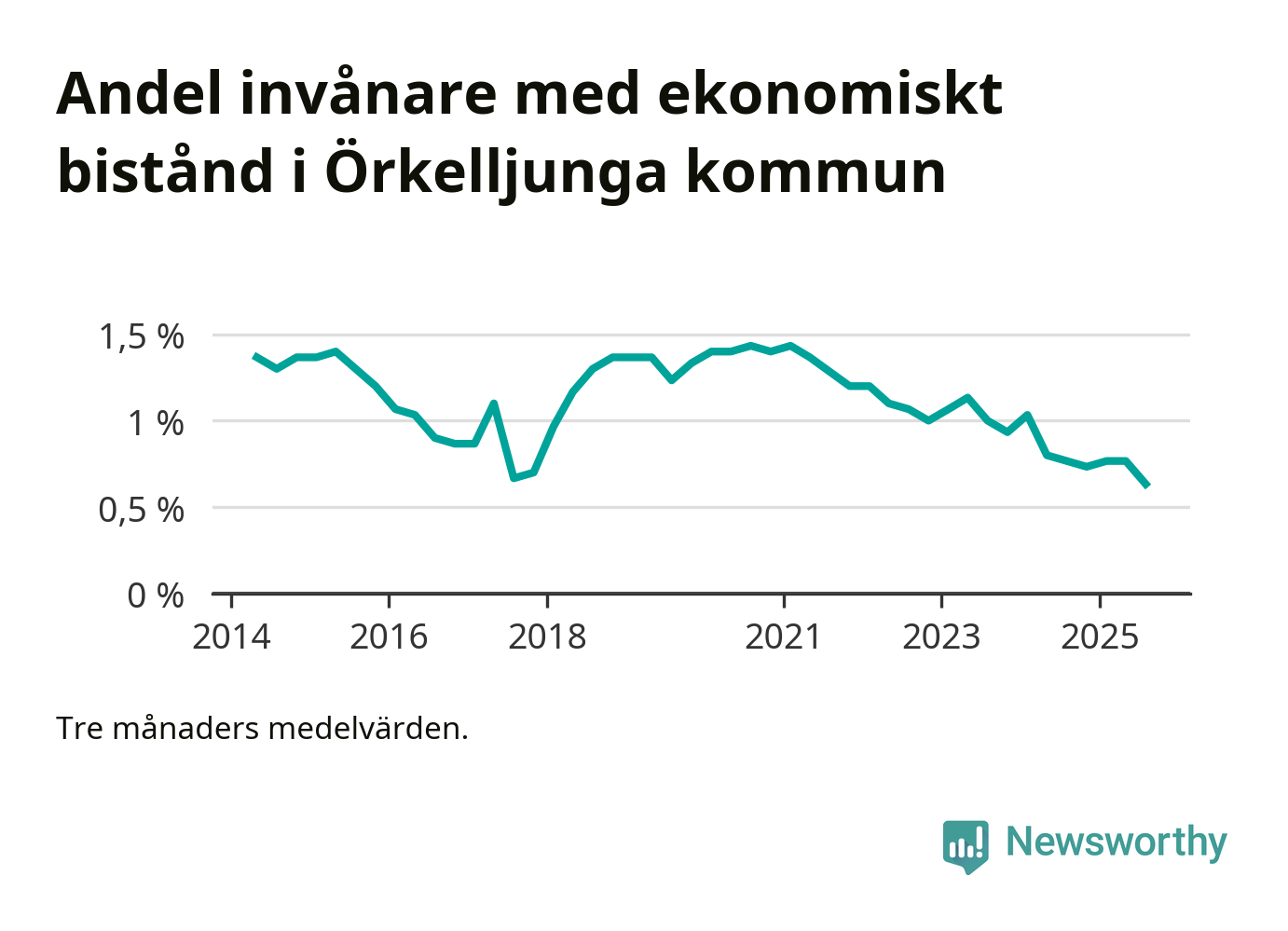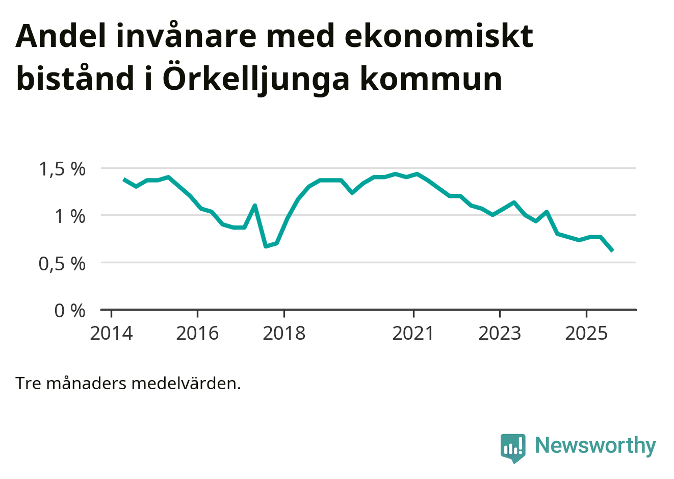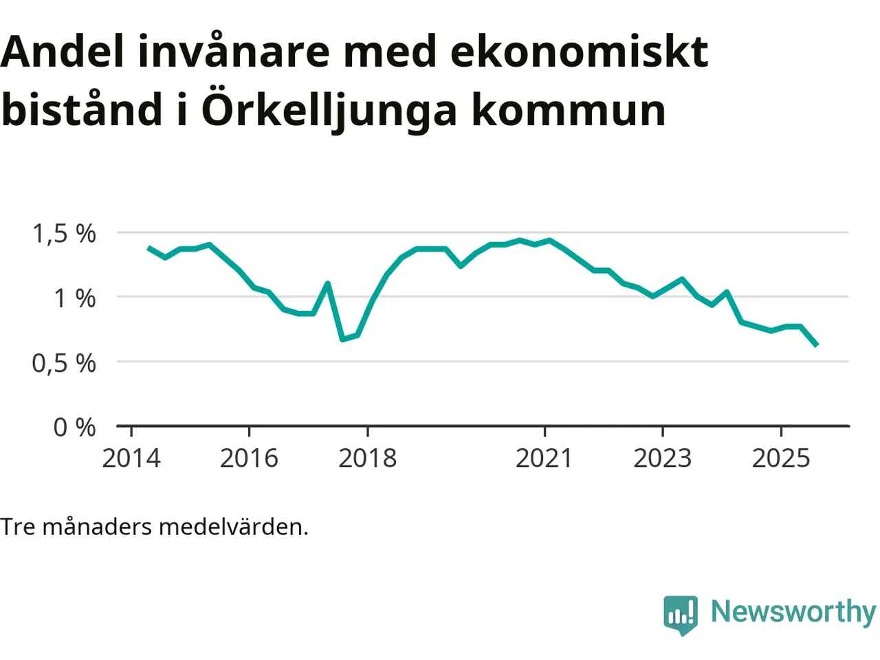 Andelen invånare med ekonomiskt bistånd i Örkelljunga kommun var under sommaren den lägsta sedan åtminstone 2014. Det visar den senaste, preliminära statistiken från Socialstyrelsen.
