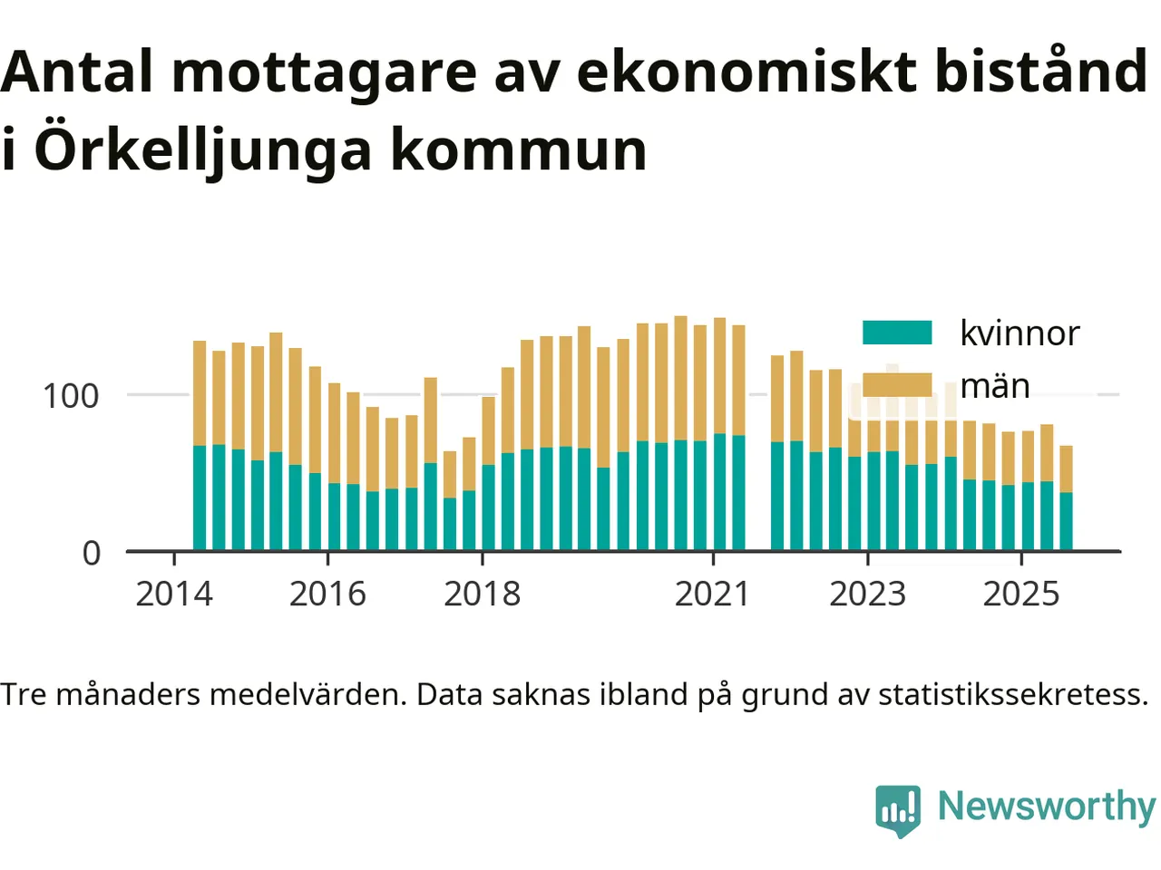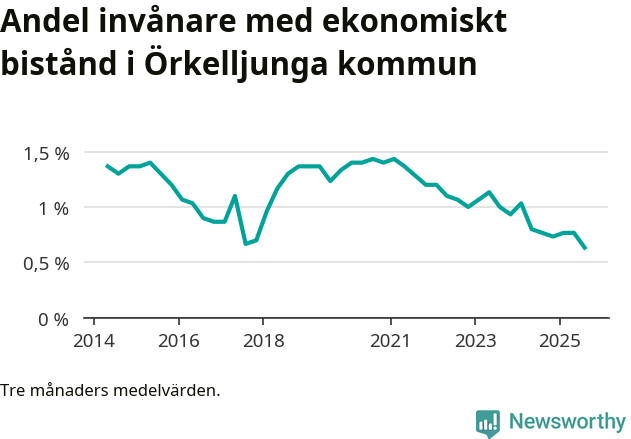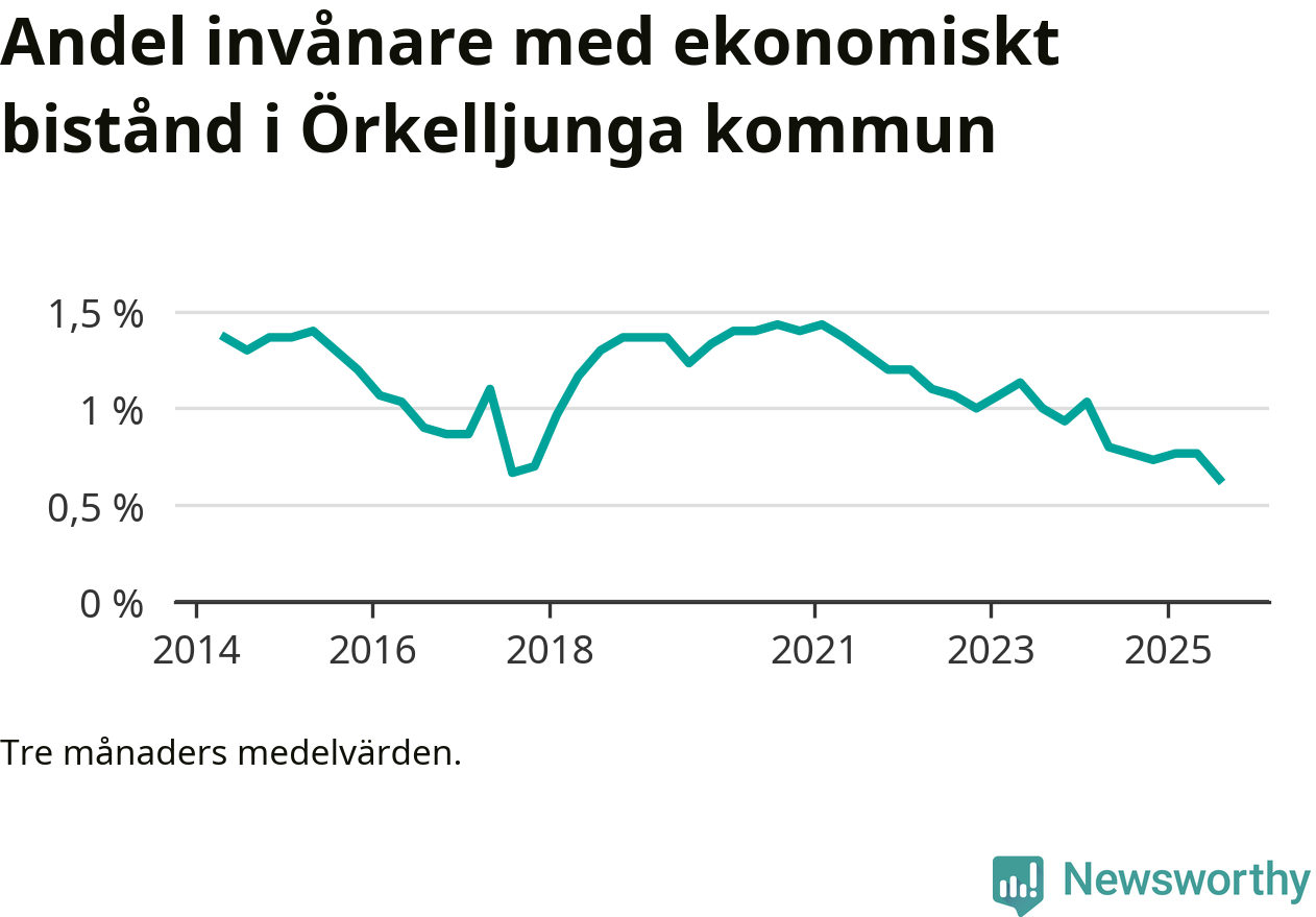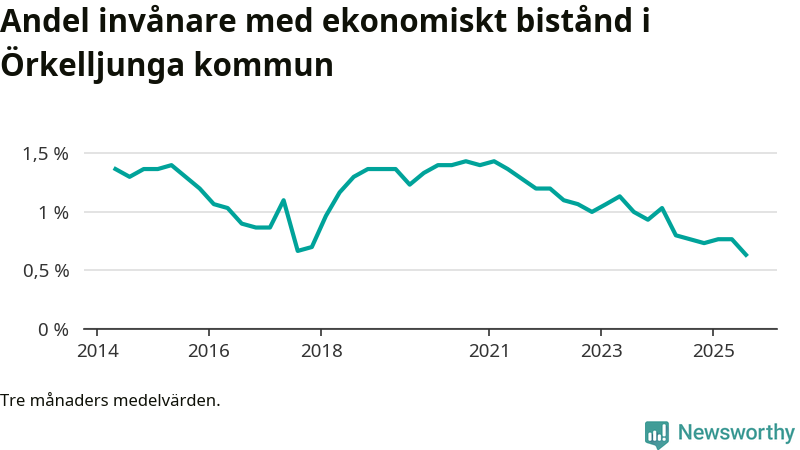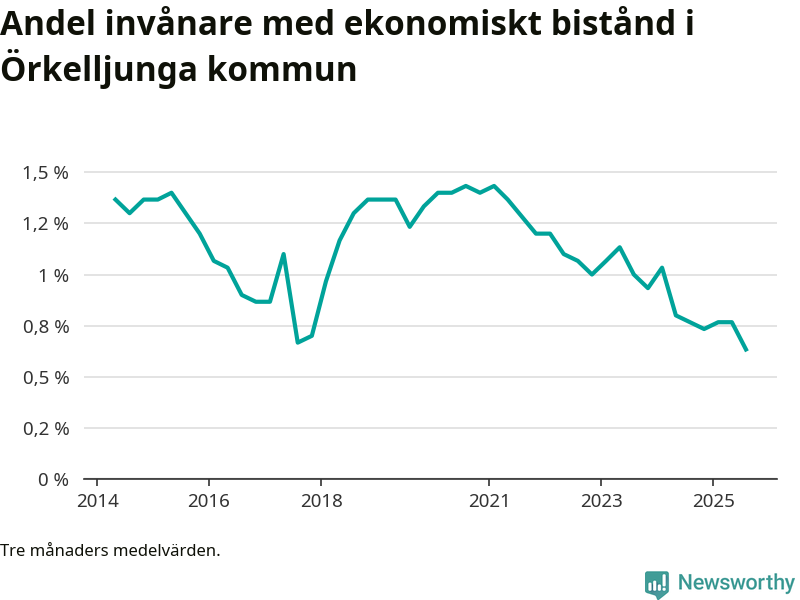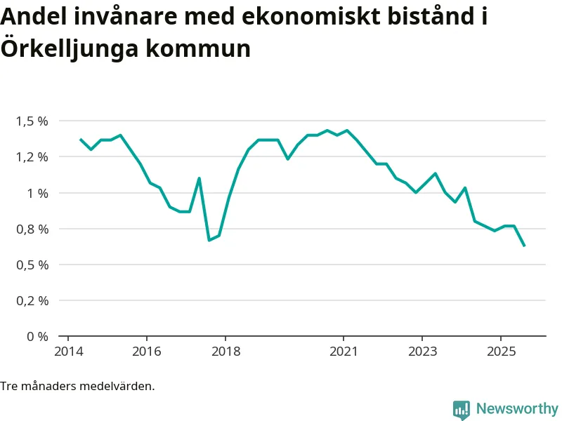 Andelen invånare med ekonomiskt bistånd i Örkelljunga kommun var under sommaren den lägsta sedan åtminstone 2014. Det visar den senaste, preliminära statistiken från Socialstyrelsen.