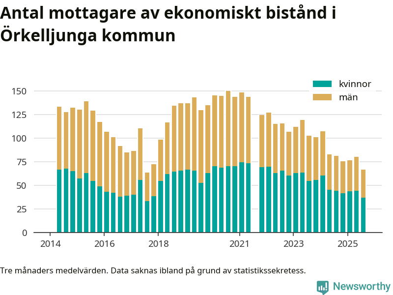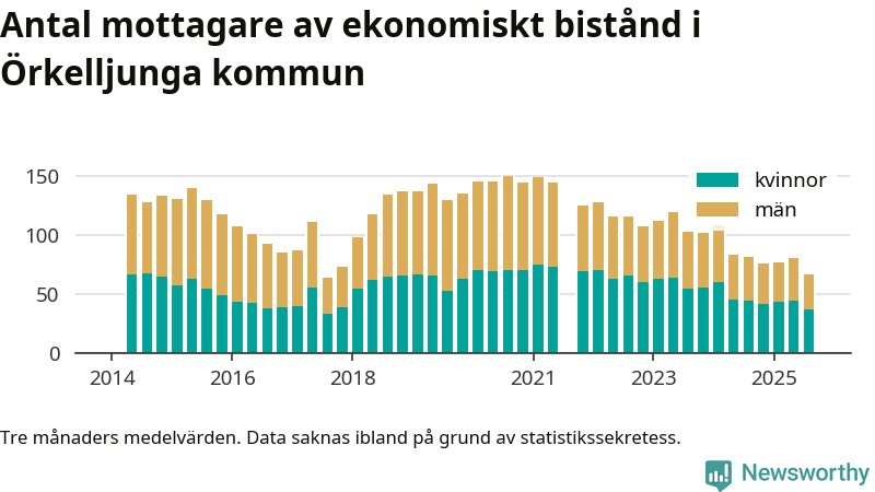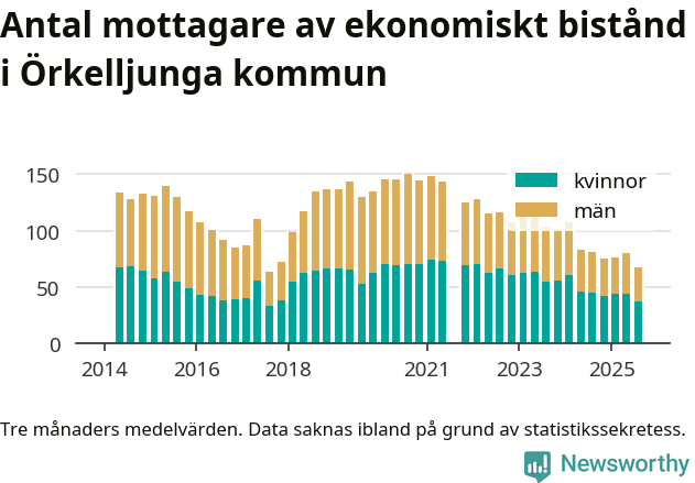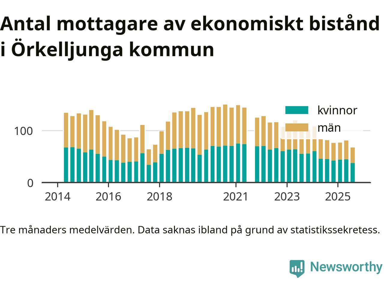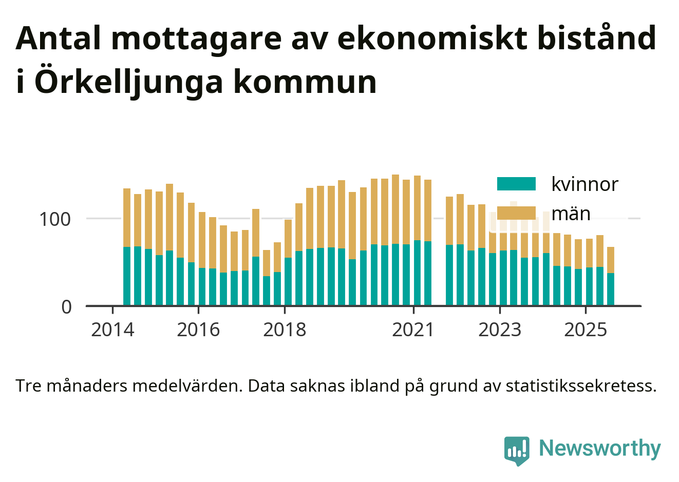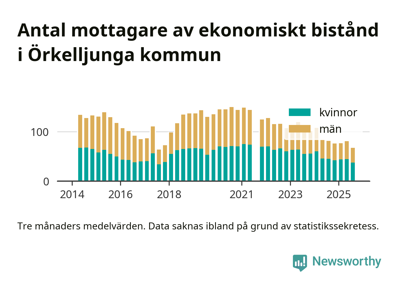 Andelen invånare med ekonomiskt bistånd i Örkelljunga kommun var under sommaren den lägsta sedan åtminstone 2014. Det visar den senaste, preliminära statistiken från Socialstyrelsen.