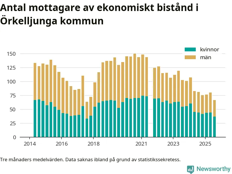 En majoritet av biståndstagarna var kvinnor: I genomsnitt 30 män och 37 kvinnor fick ekonomiskt bistånd varje månad under sommaren.