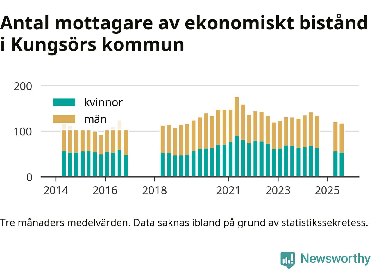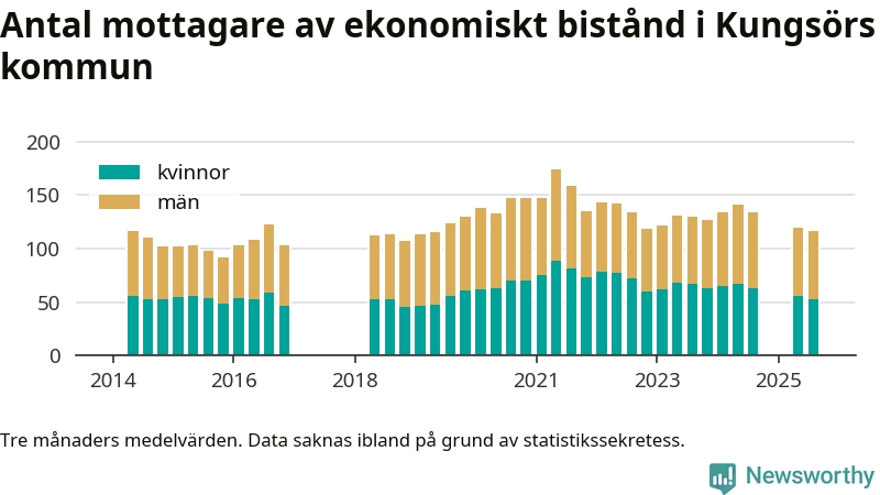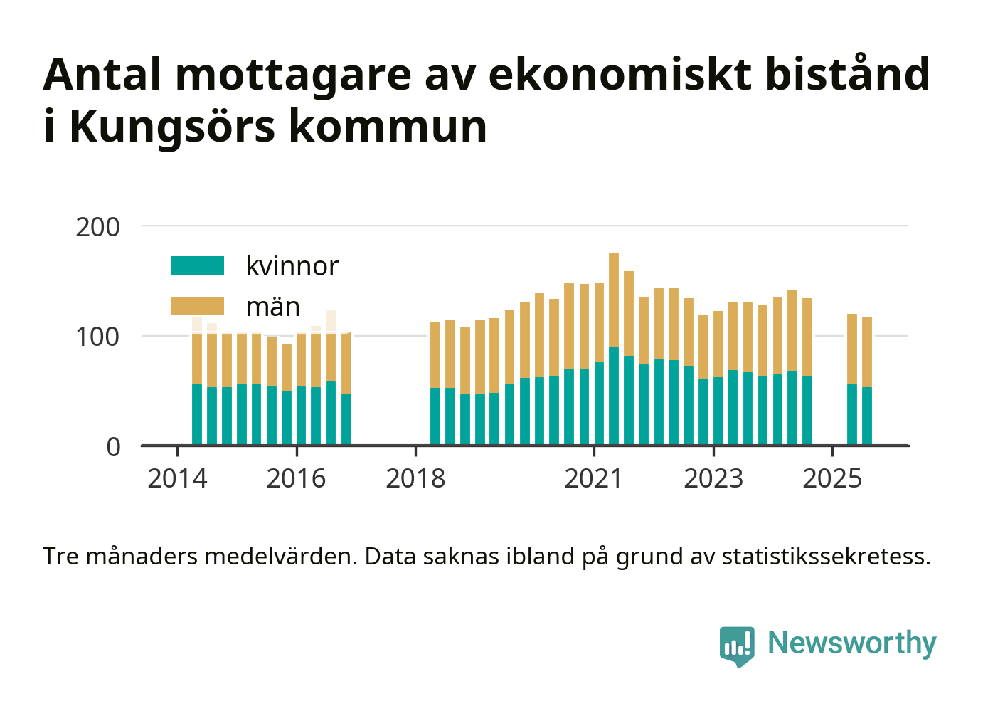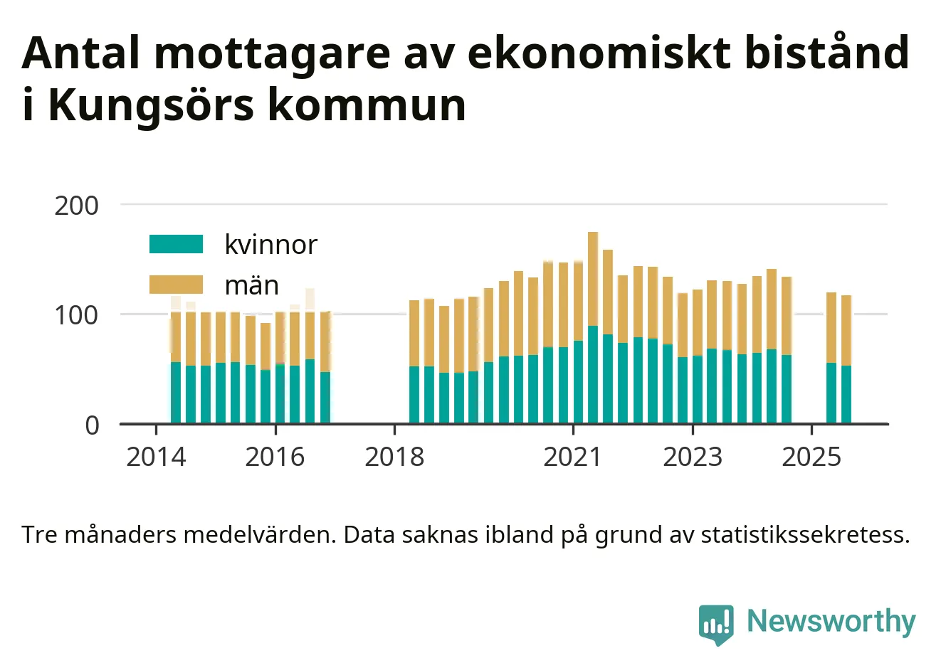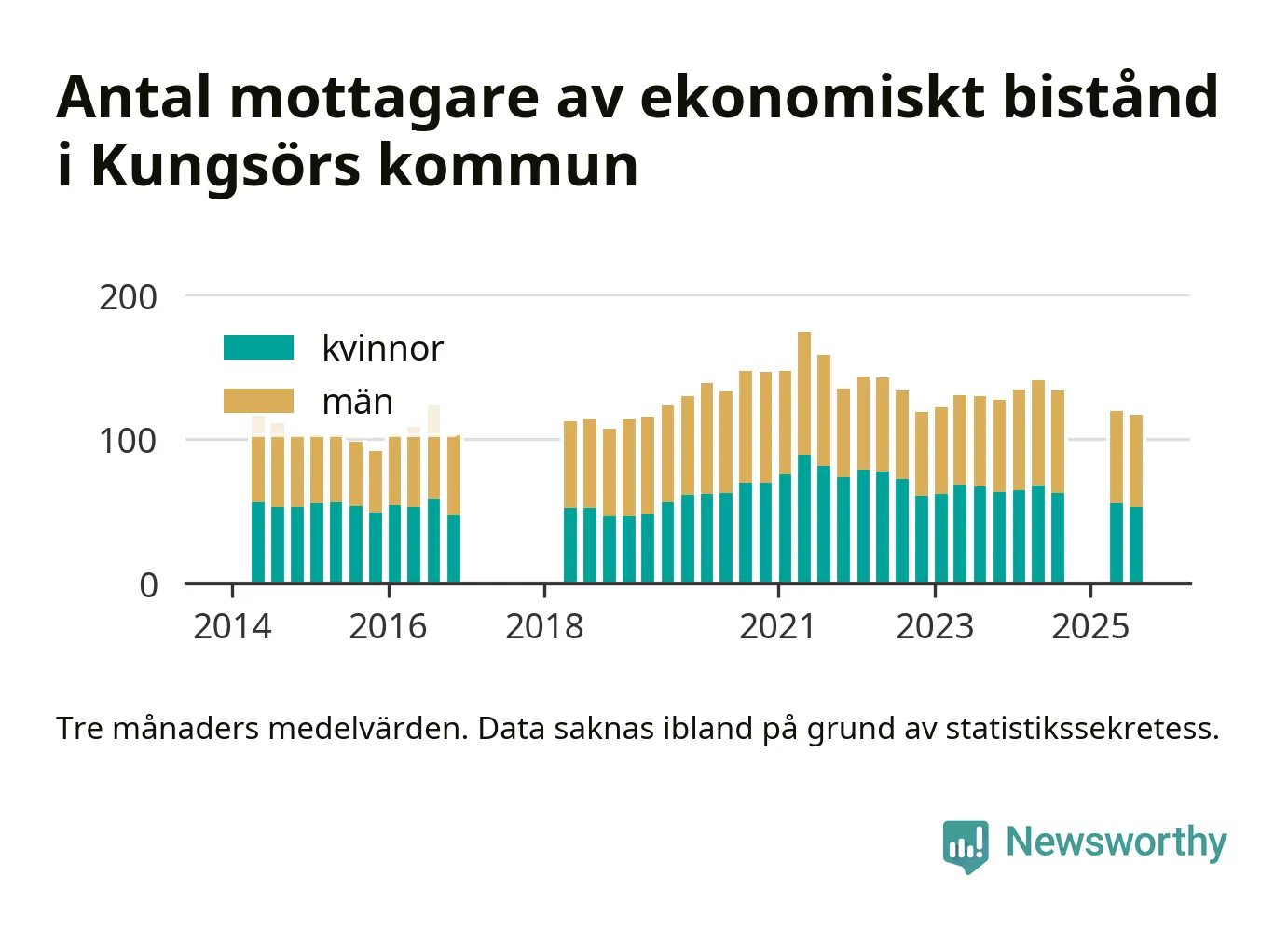 I genomsnitt 117 personer per månad fick ekonomiskt bistånd i Kungsörs kommun