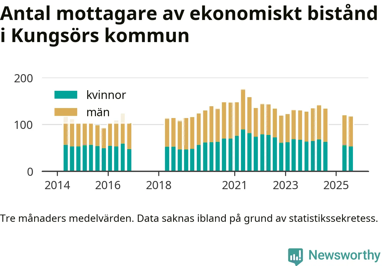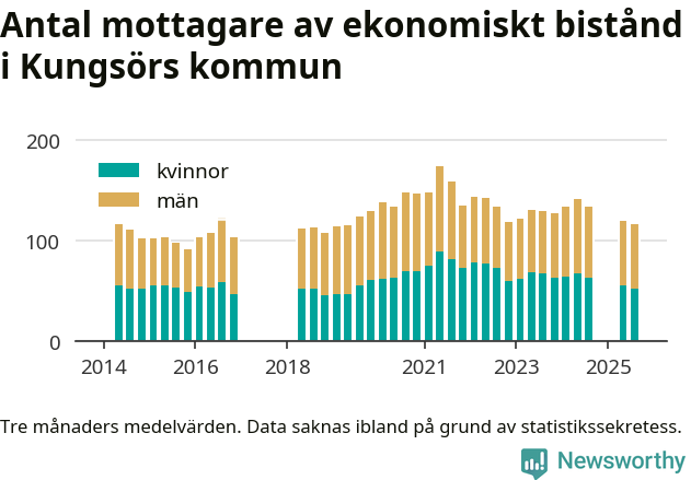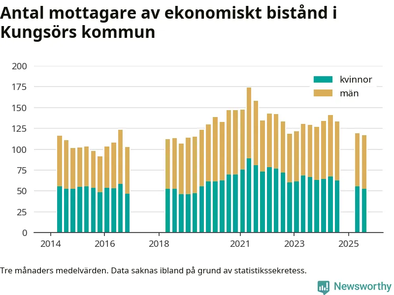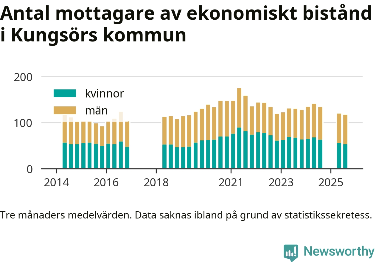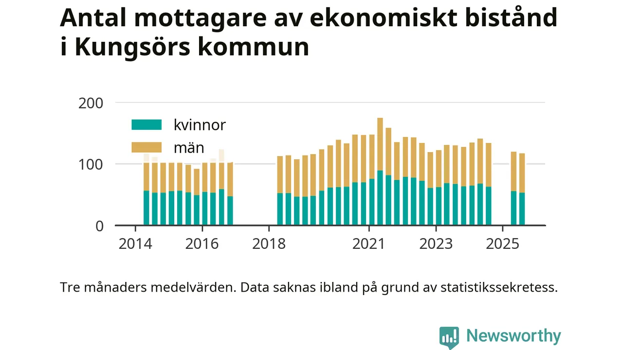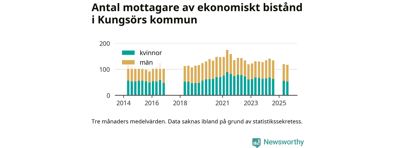 I genomsnitt 117 personer per månad fick ekonomiskt bistånd i Kungsörs kommun
