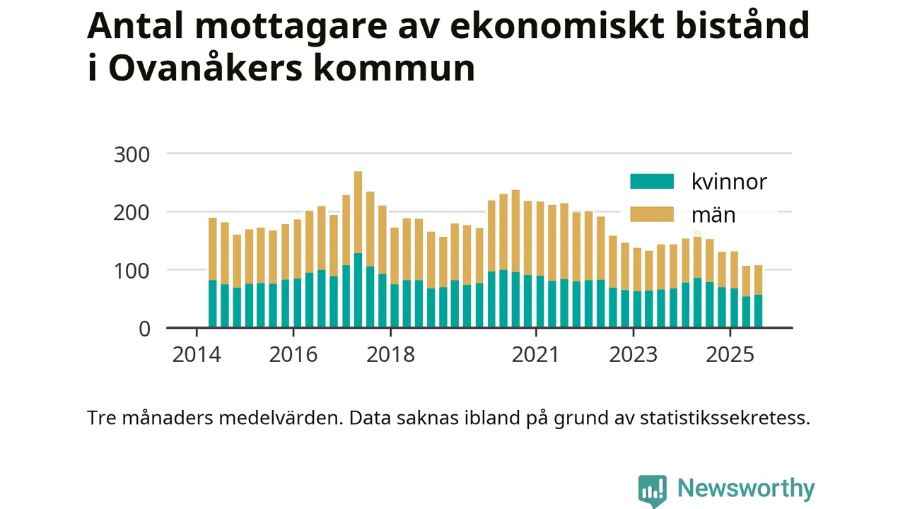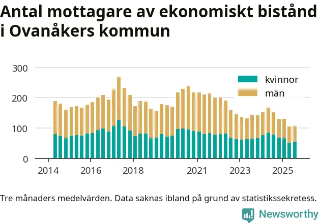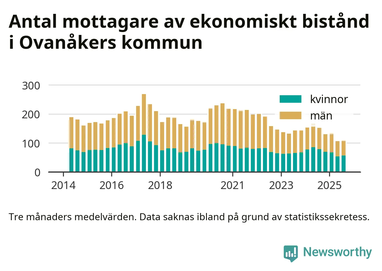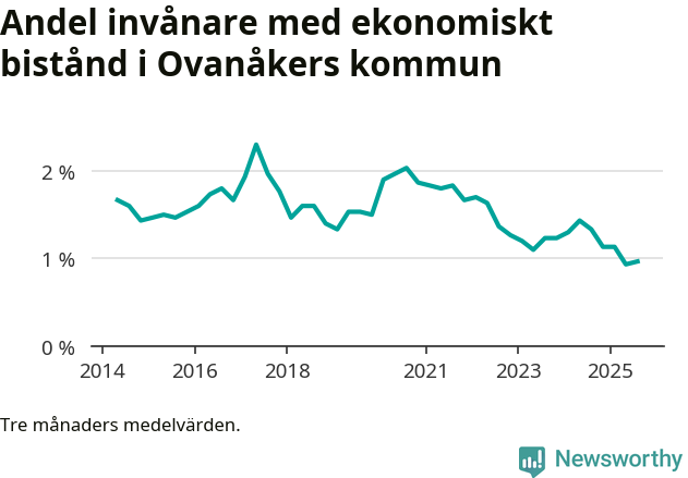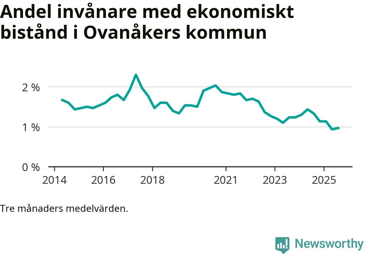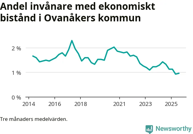 Andelen invånare med ekonomiskt bistånd i Ovanåkers kommun var lägre under sommaren jämfört med motsvarande period året innan. Det visar den senaste, preliminära statistiken från Socialstyrelsen.