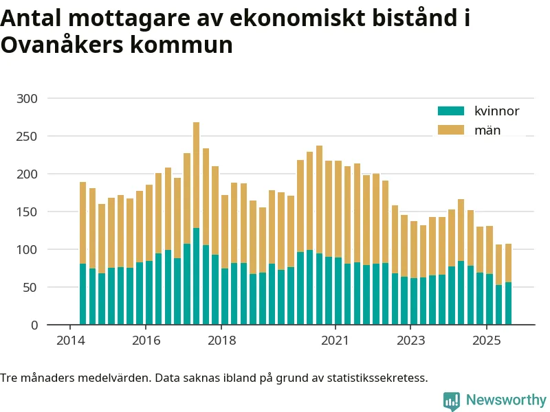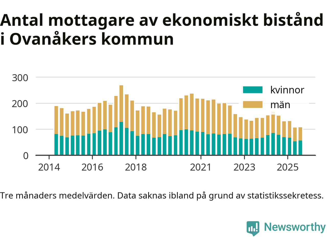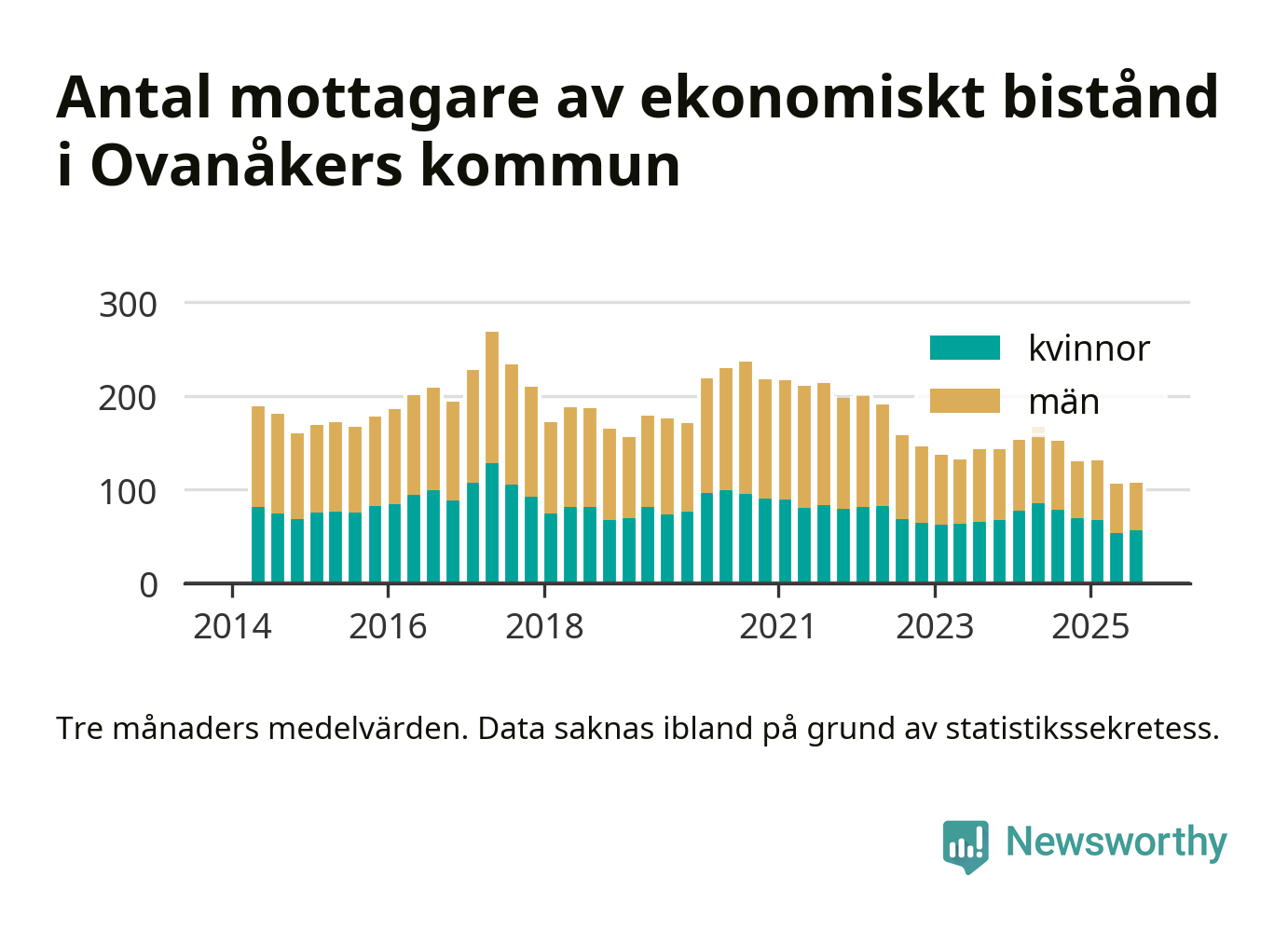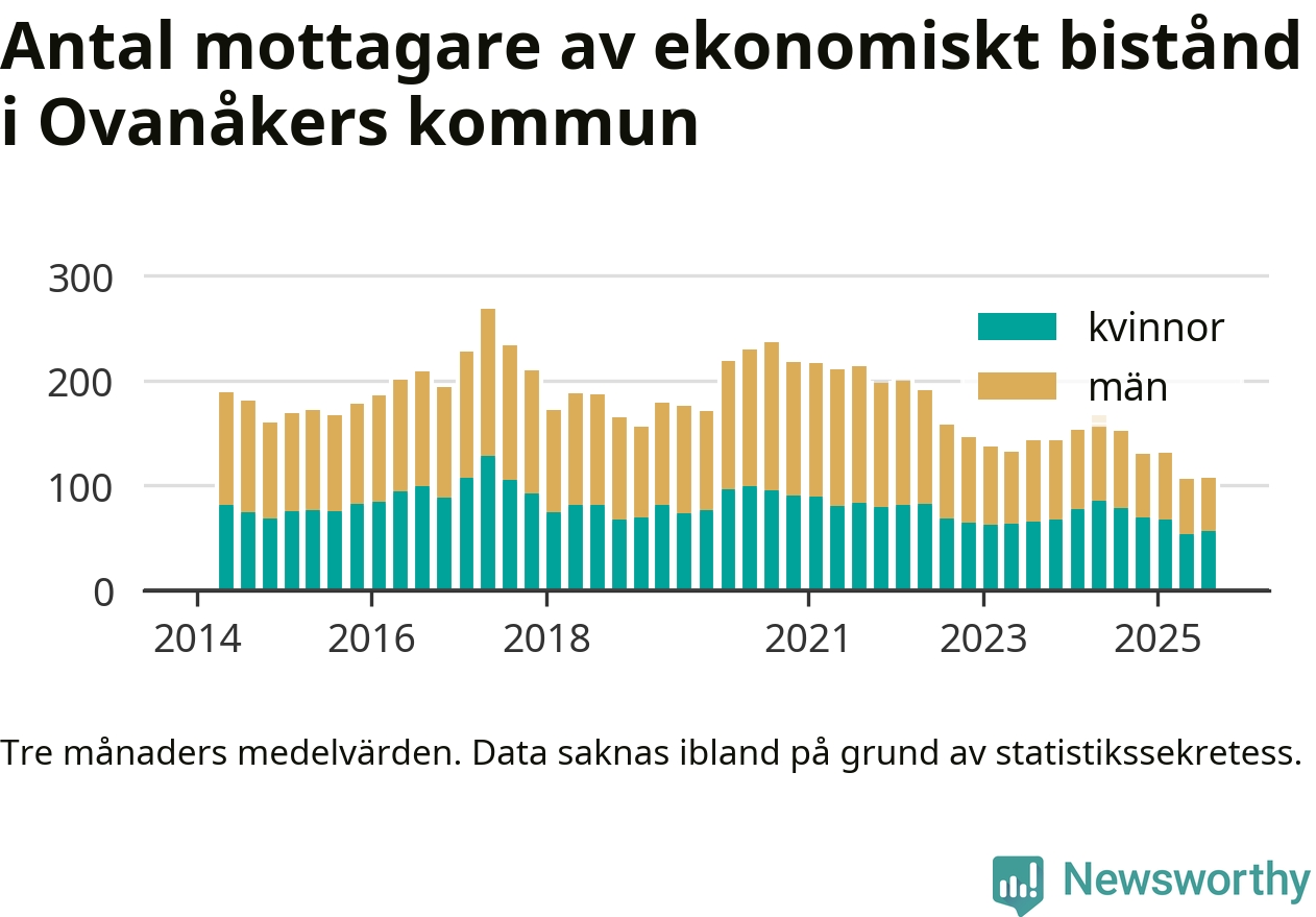 Andelen invånare med ekonomiskt bistånd i Ovanåkers kommun var lägre under sommaren jämfört med motsvarande period året innan. Det visar den senaste, preliminära statistiken från Socialstyrelsen.