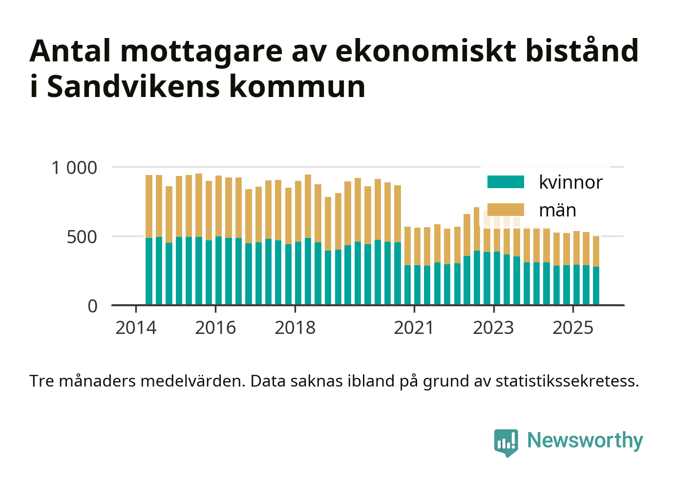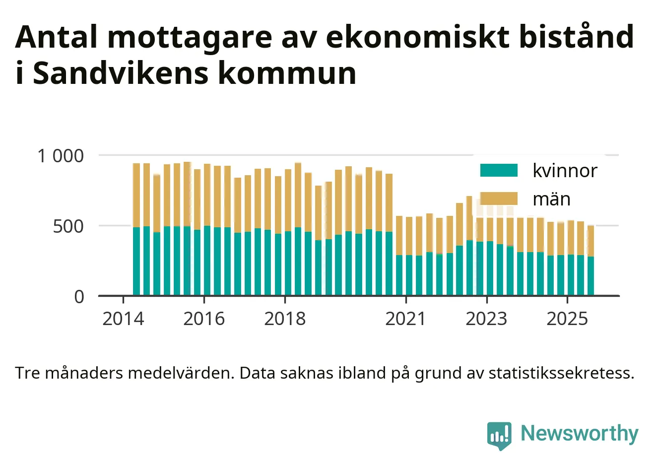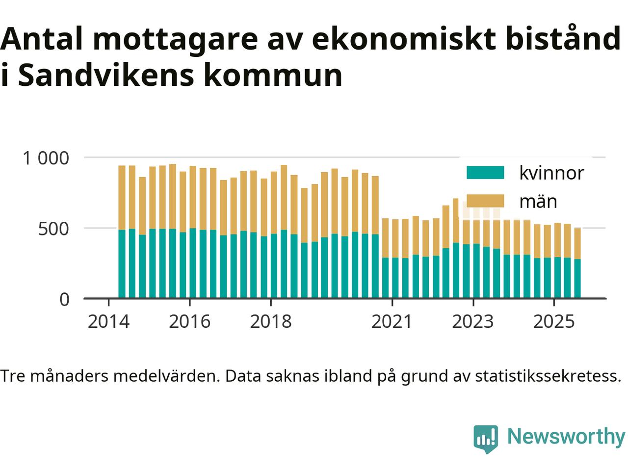 Andelen invånare med ekonomiskt bistånd i Sandvikens kommun var under sommaren den lägsta sedan åtminstone 2014. Det visar den senaste, preliminära statistiken från Socialstyrelsen.