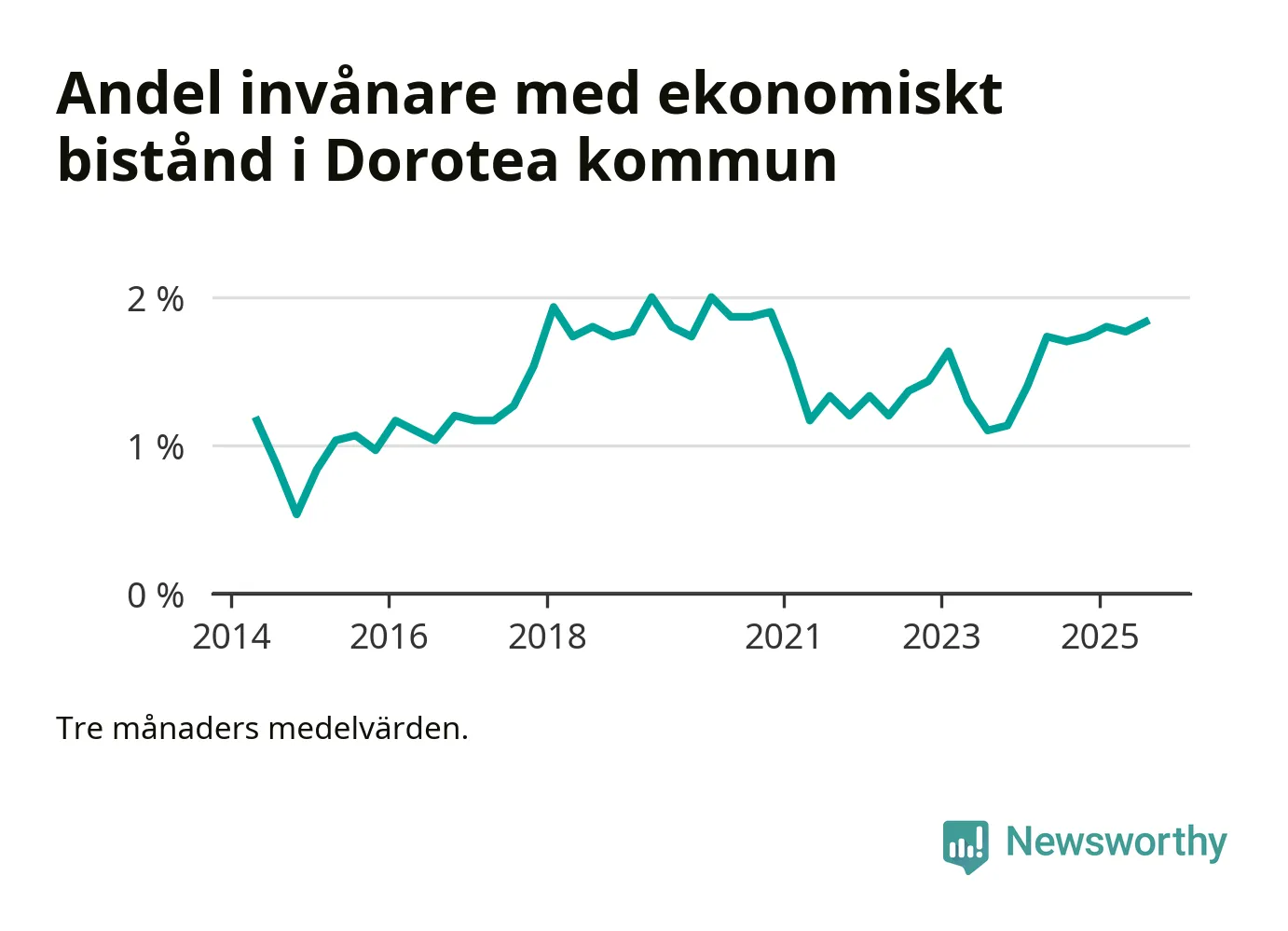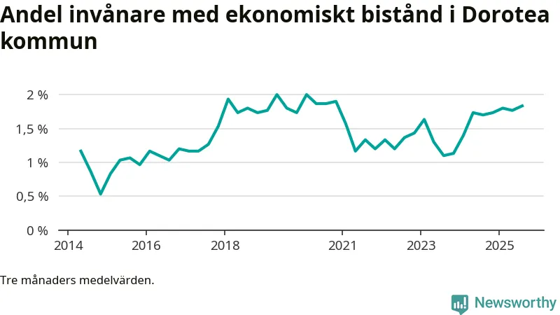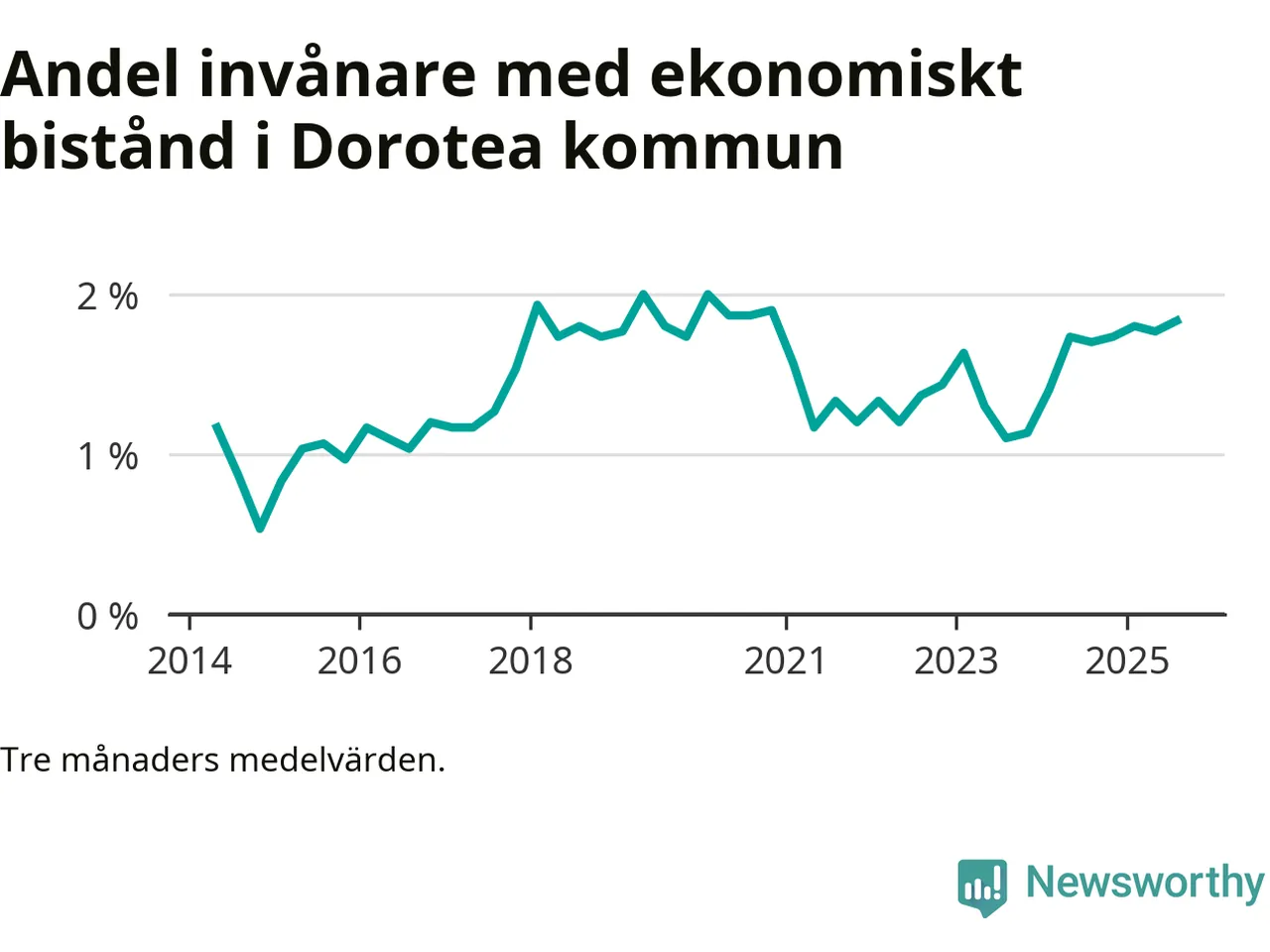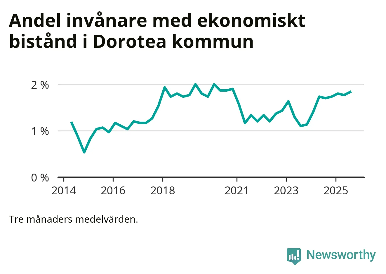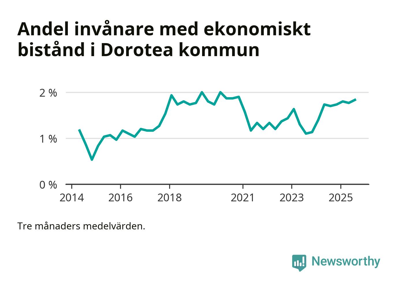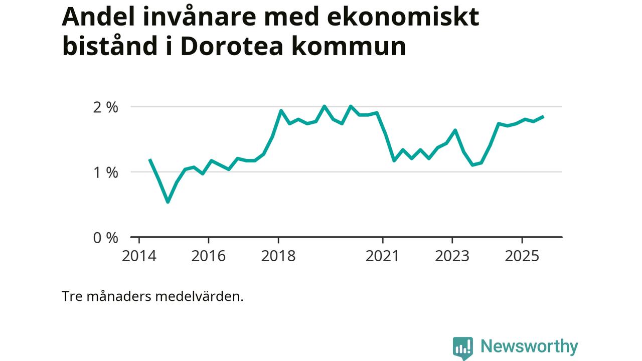 Andelen invånare med ekonomiskt bistånd i Dorotea kommun var högre under sommaren jämfört med motsvarande period året innan. Det visar den senaste, preliminära statistiken från Socialstyrelsen.
