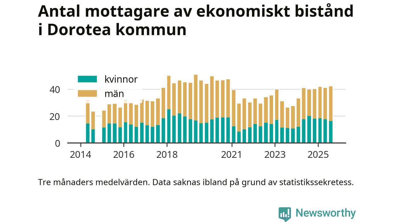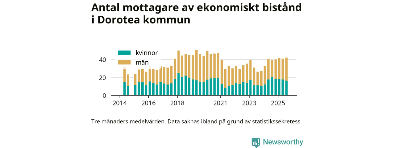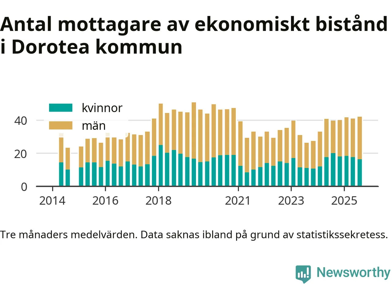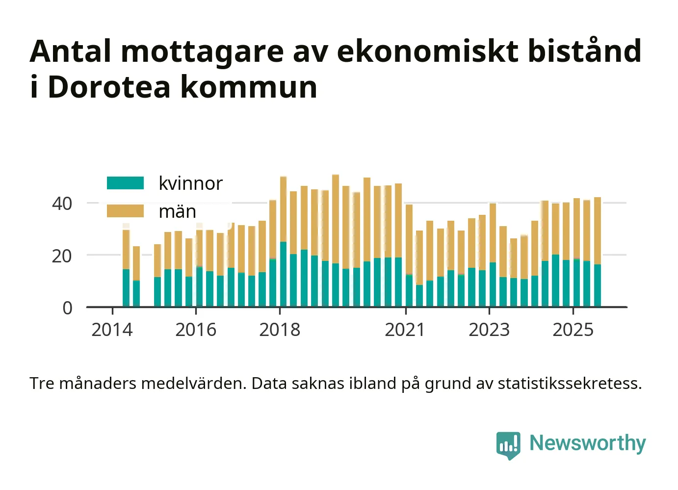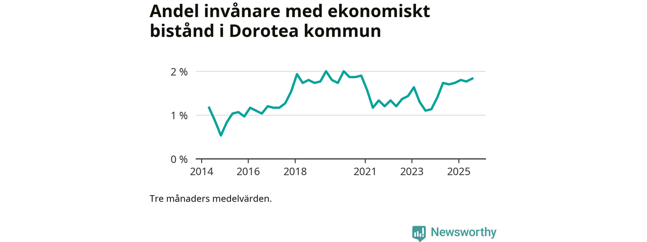 Andelen invånare med ekonomiskt bistånd i Dorotea kommun var högre under sommaren jämfört med motsvarande period året innan. Det visar den senaste, preliminära statistiken från Socialstyrelsen.