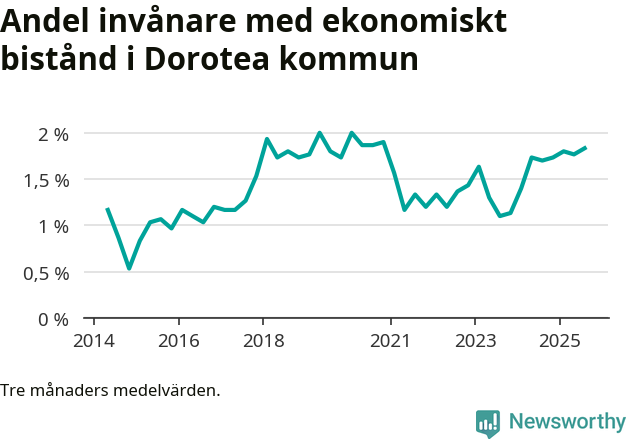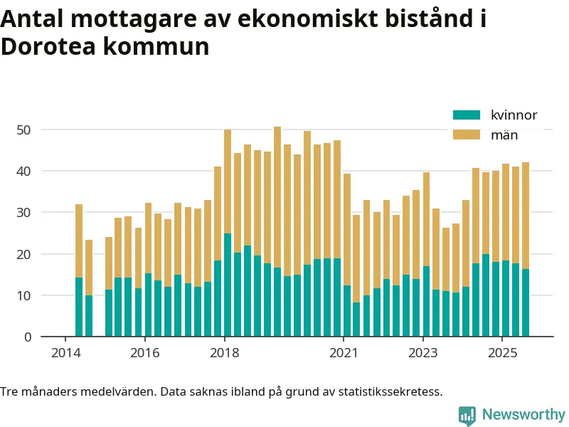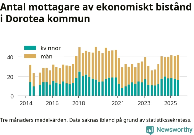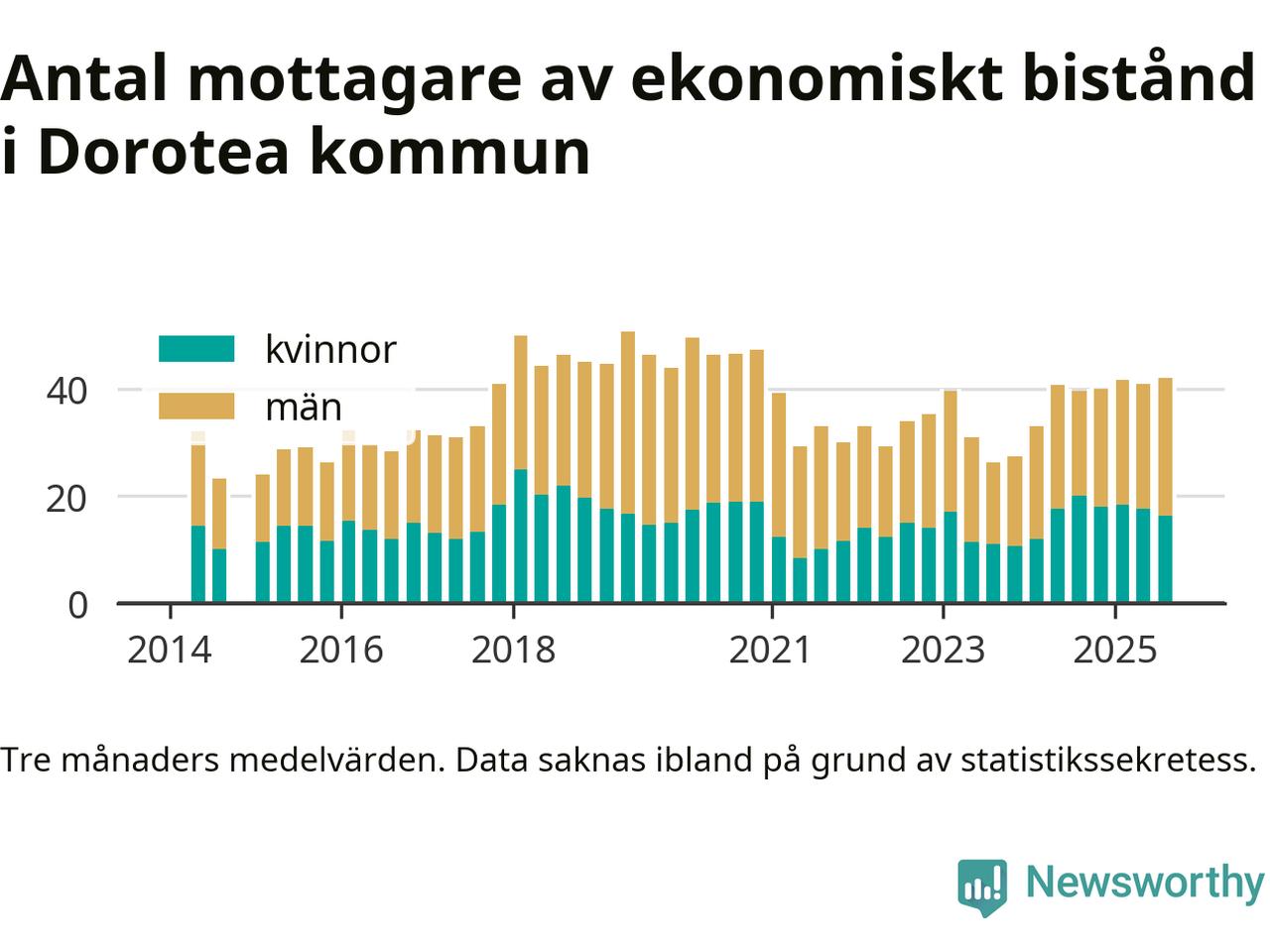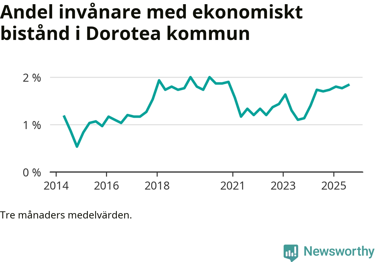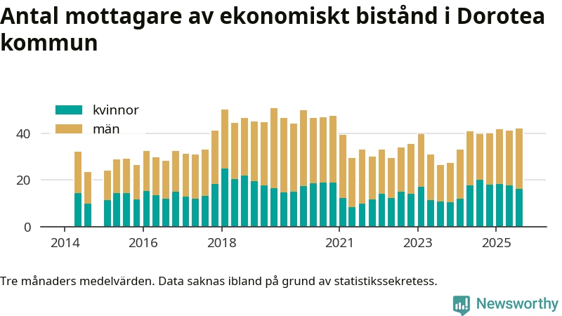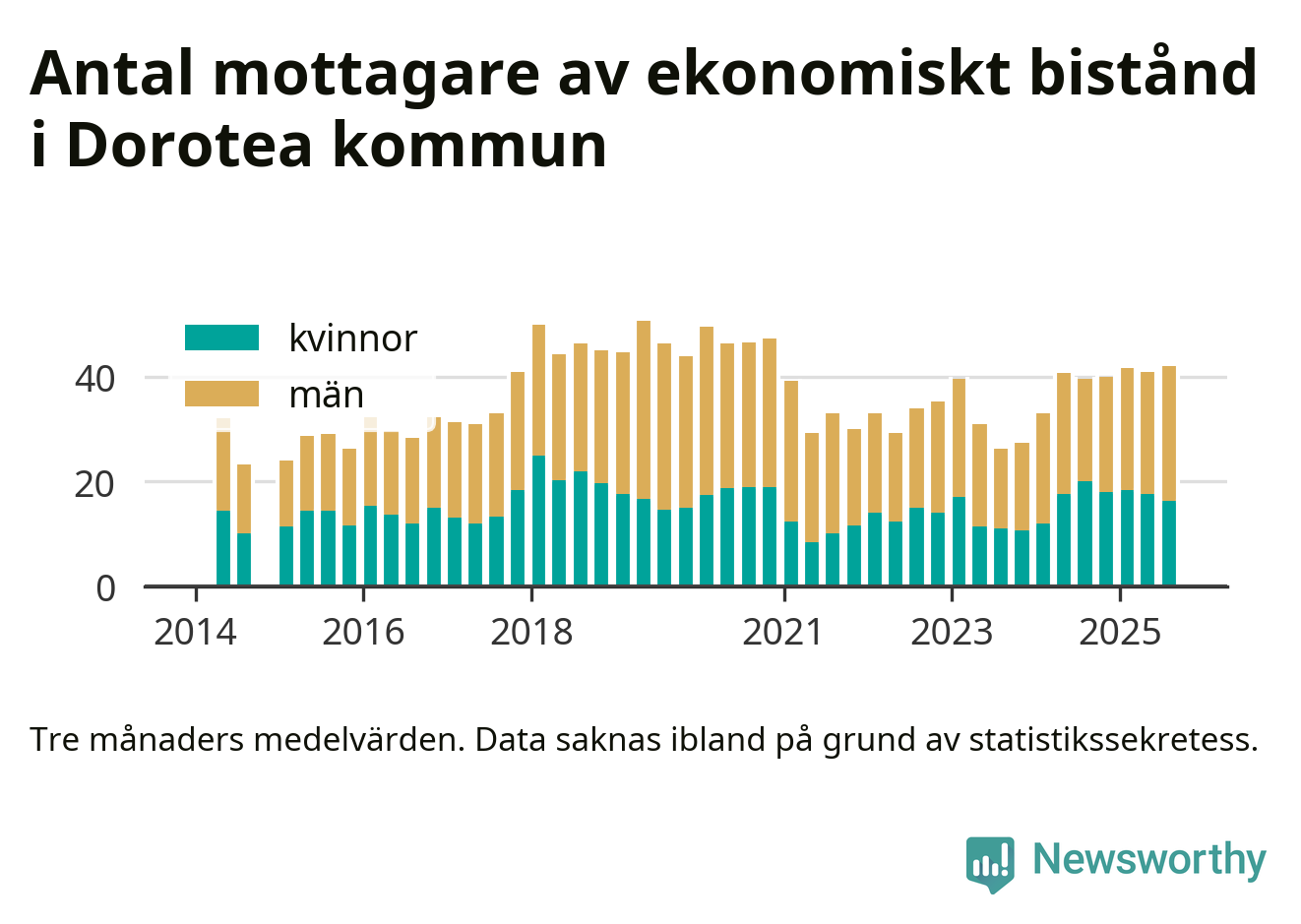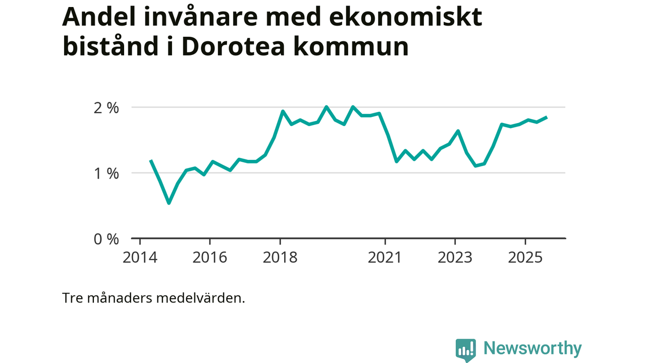 Andelen invånare med ekonomiskt bistånd i Dorotea kommun var högre under sommaren jämfört med motsvarande period året innan. Det visar den senaste, preliminära statistiken från Socialstyrelsen.