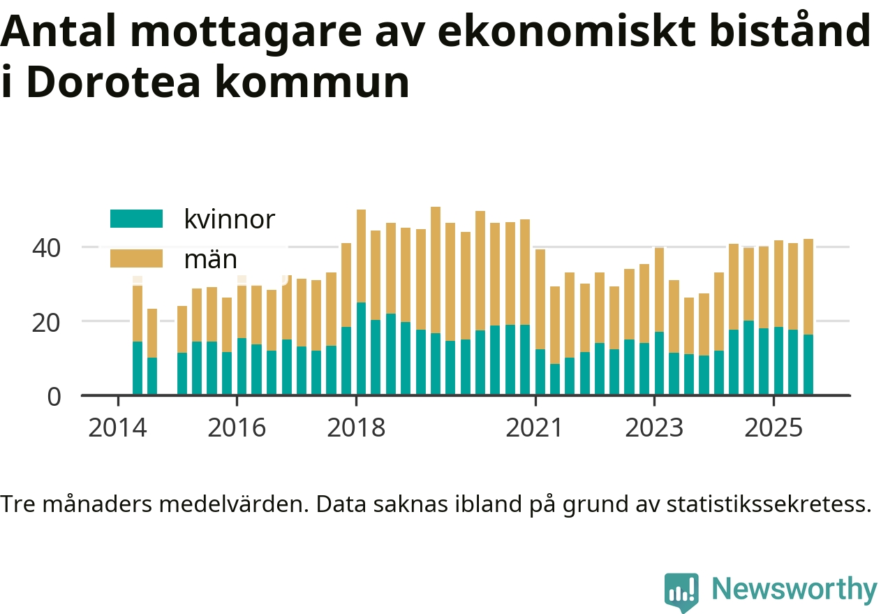 En majoritet av biståndstagarna var män: I genomsnitt 26 män och 16 kvinnor fick ekonomiskt bistånd varje månad under sommaren.