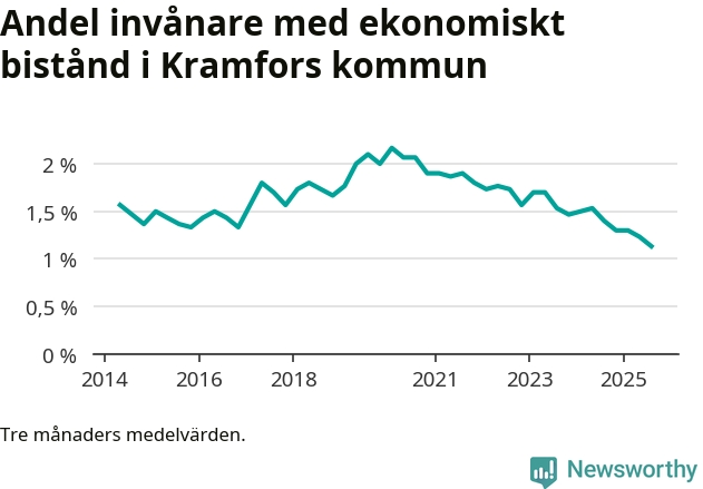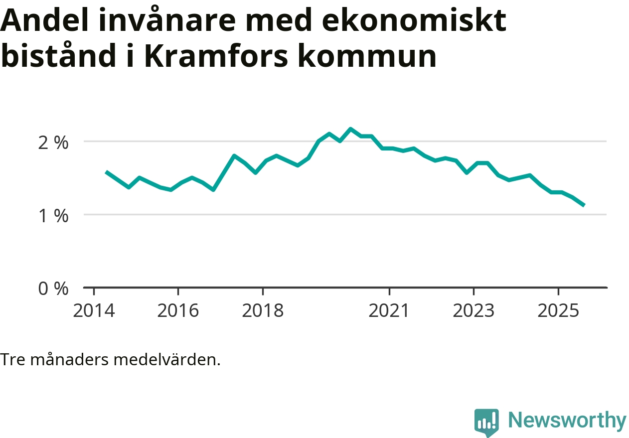Andelen invånare med ekonomiskt bistånd i Kramfors kommun