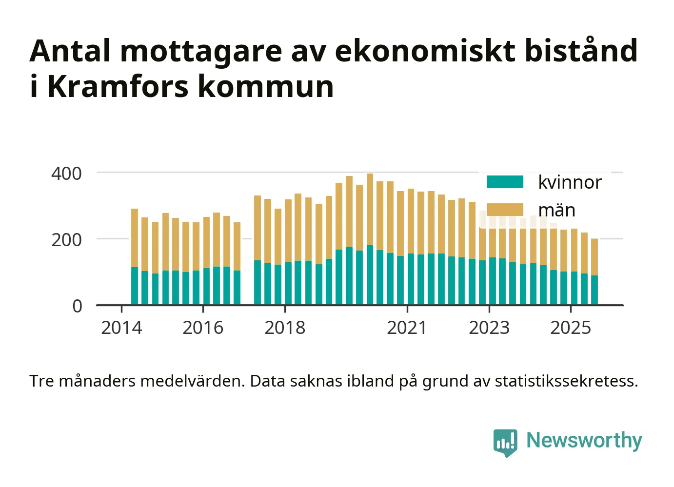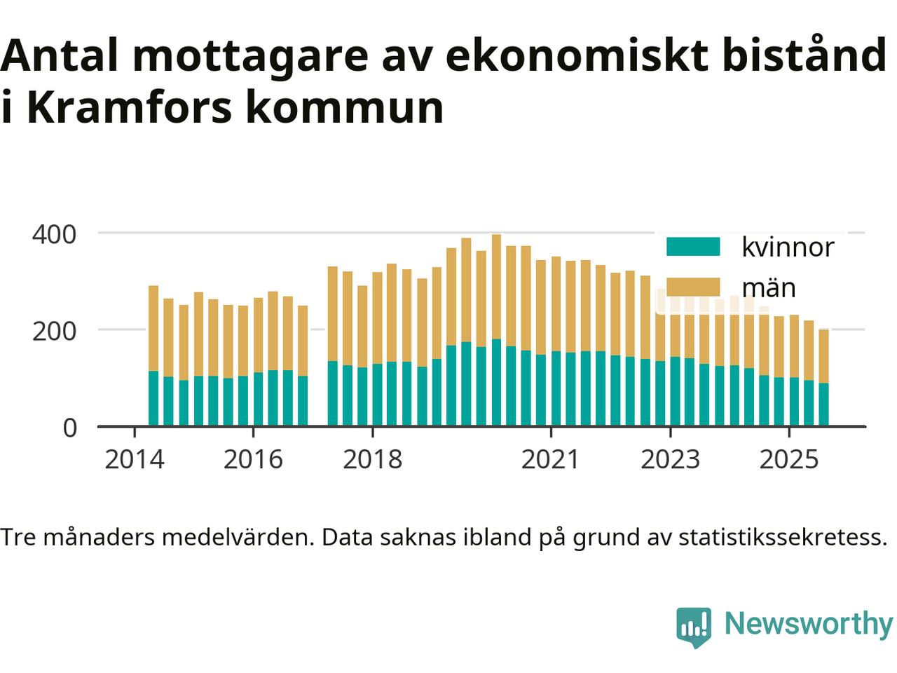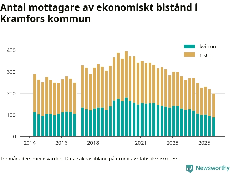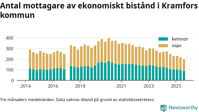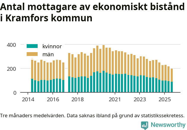 I genomsnitt 199 personer per månad fick ekonomiskt bistånd i Kramfors kommun