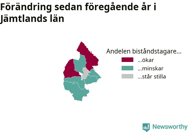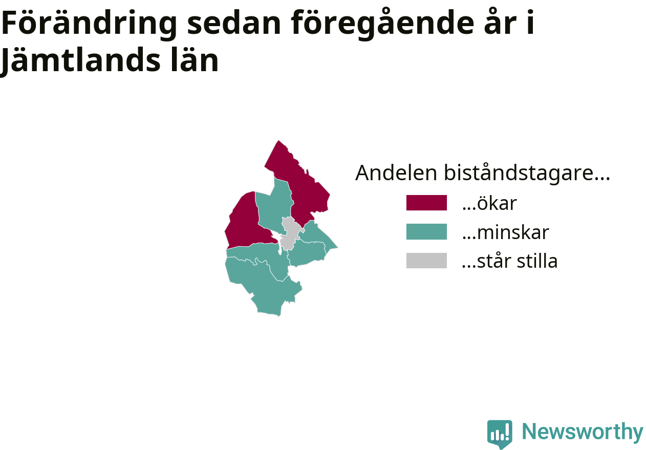 I Jämtland som helhet var andelen biståndstagare 0,9 procent, vilket är ungefär samma nivå som månaden innan.